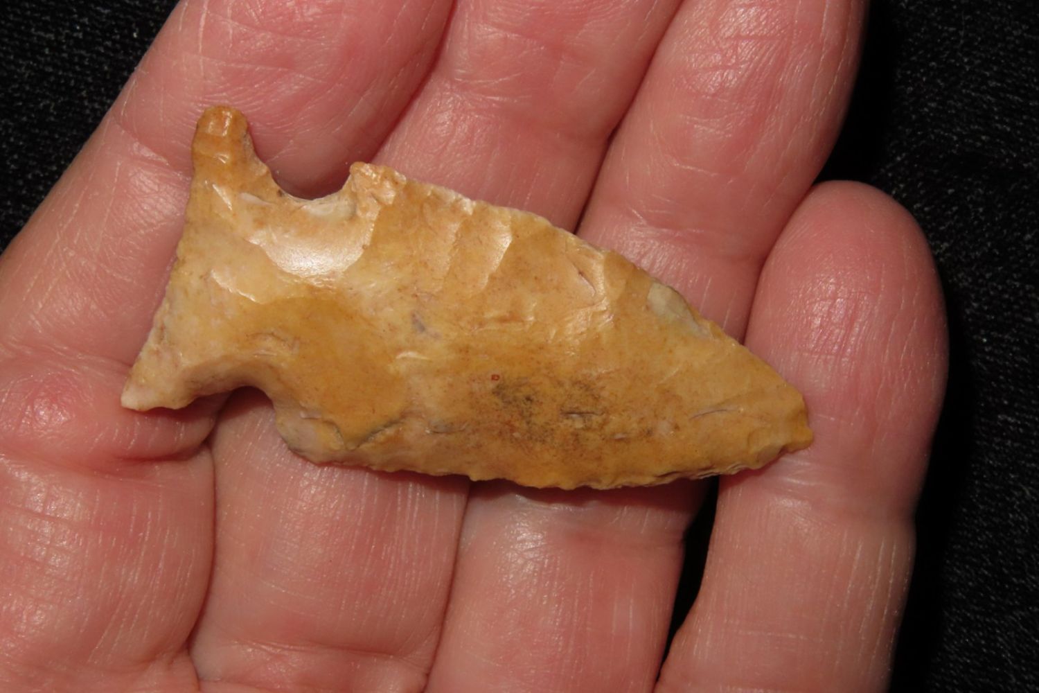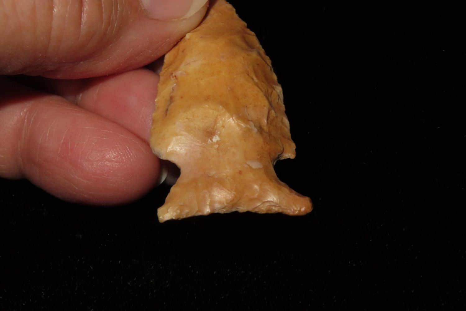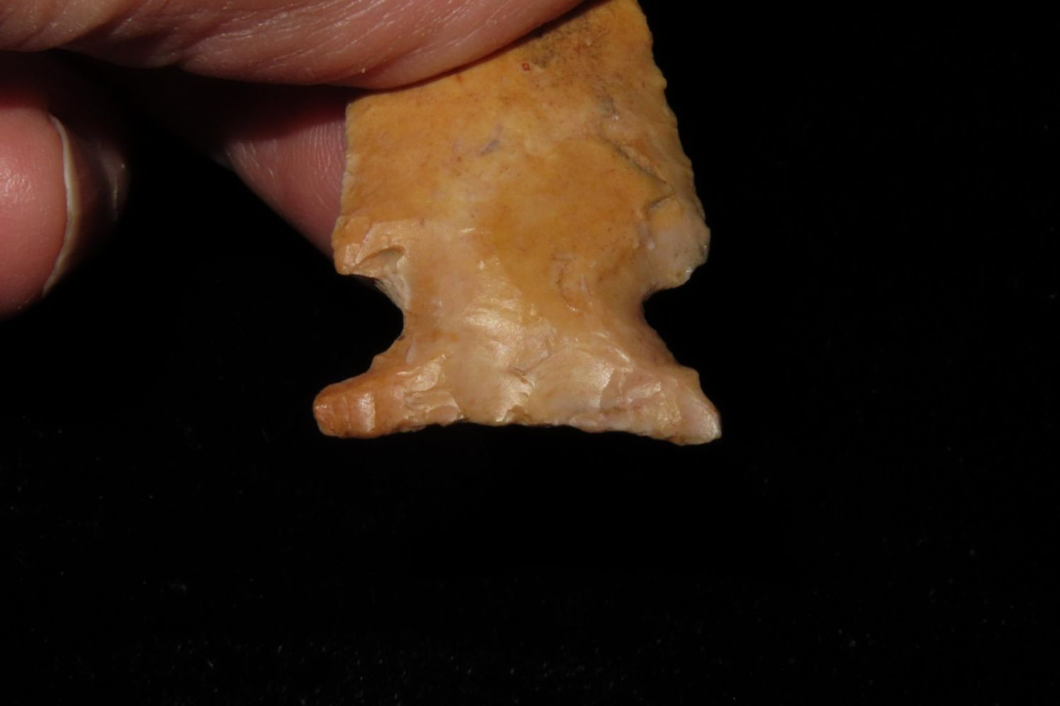 1 3/4" Kings Corner Notch with beautiful river stain. From the James and Joe George Collection. Joe George was an avid collector and finder of Native American artifacts in the greater St Louis Missouri area. Joe collected his entire life. Upon his passing he turned his collection over to his son James. James was also a very avid collector. He enjoyed walking various waterways and attending artifact shows. James is looking forward to passing down his collection to the relic community for caretaking.