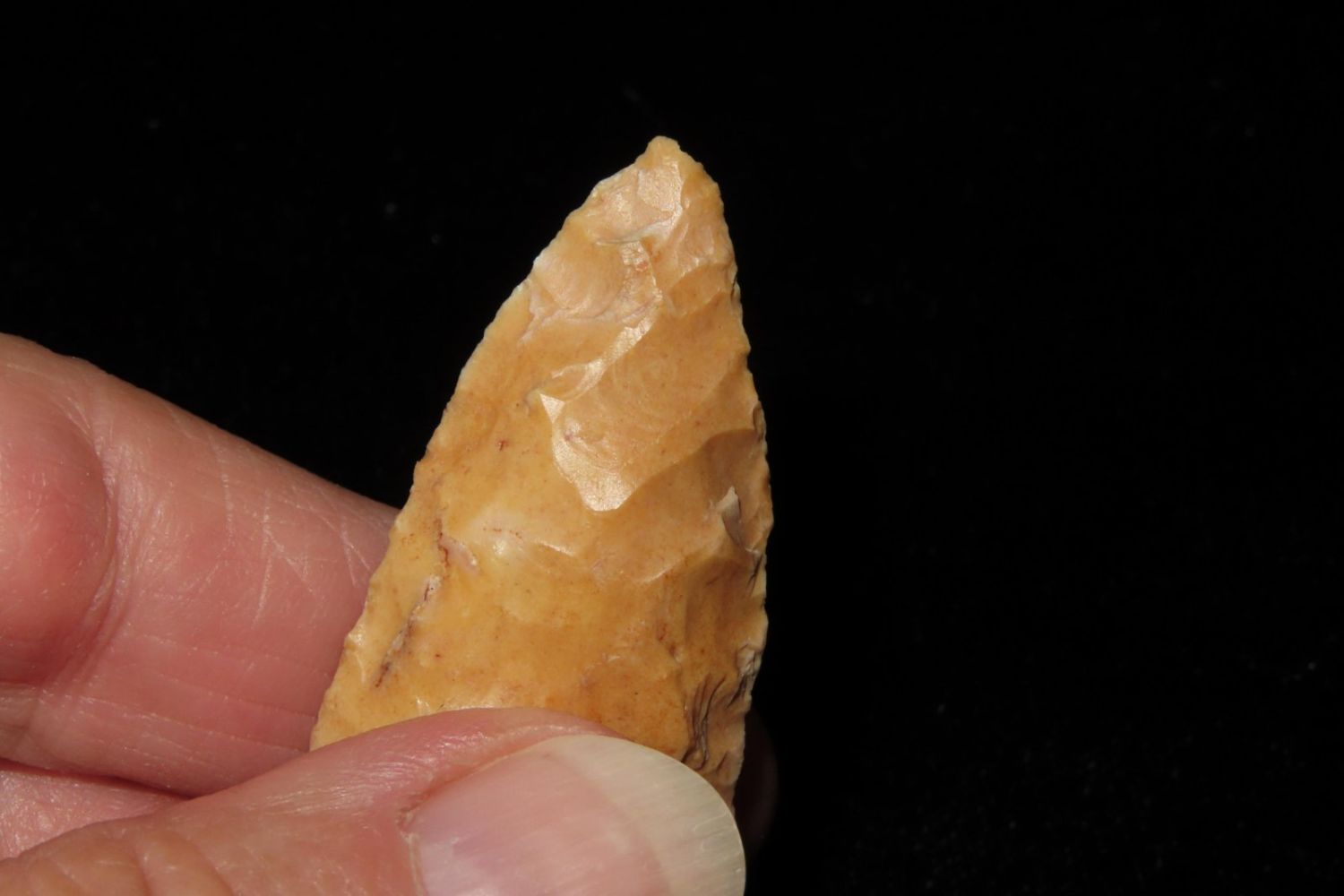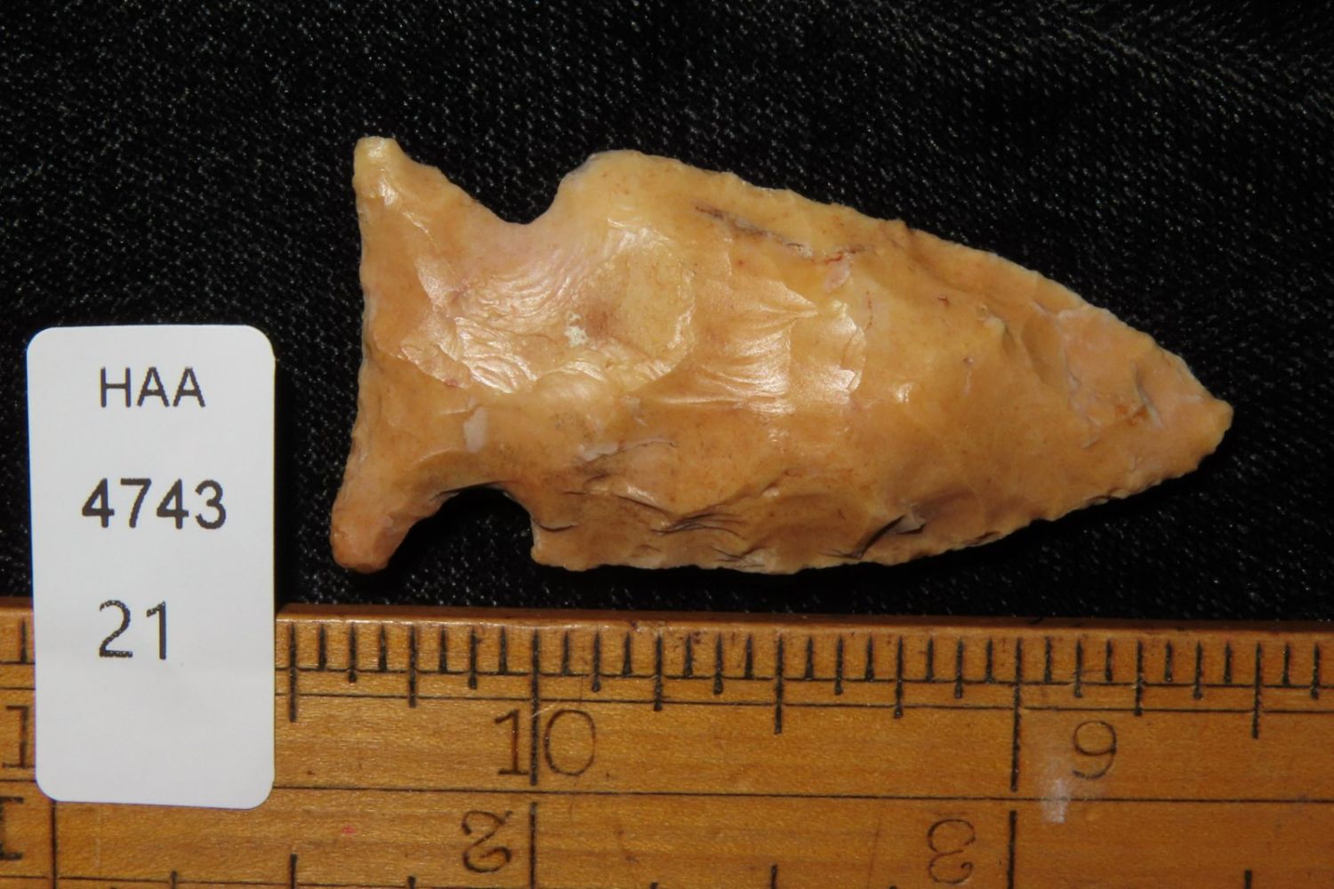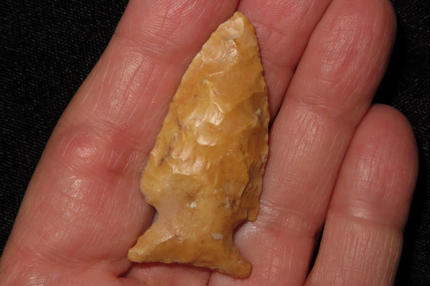 1 3/4" Kings Corner Notch with beautiful river stain. From the James and Joe George Collection. Joe George was an avid collector and finder of Native American artifacts in the greater St Louis Missouri area. Joe collected his entire life. Upon his passing he turned his collection over to his son James. James was also a very avid collector. He enjoyed walking various waterways and attending artifact shows. James is looking forward to passing down his collection to the relic community for caretaking.