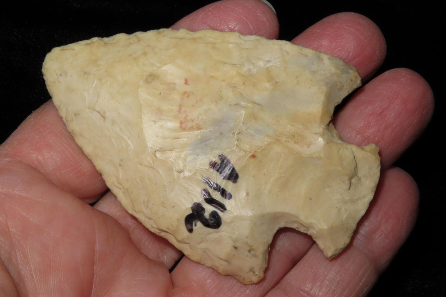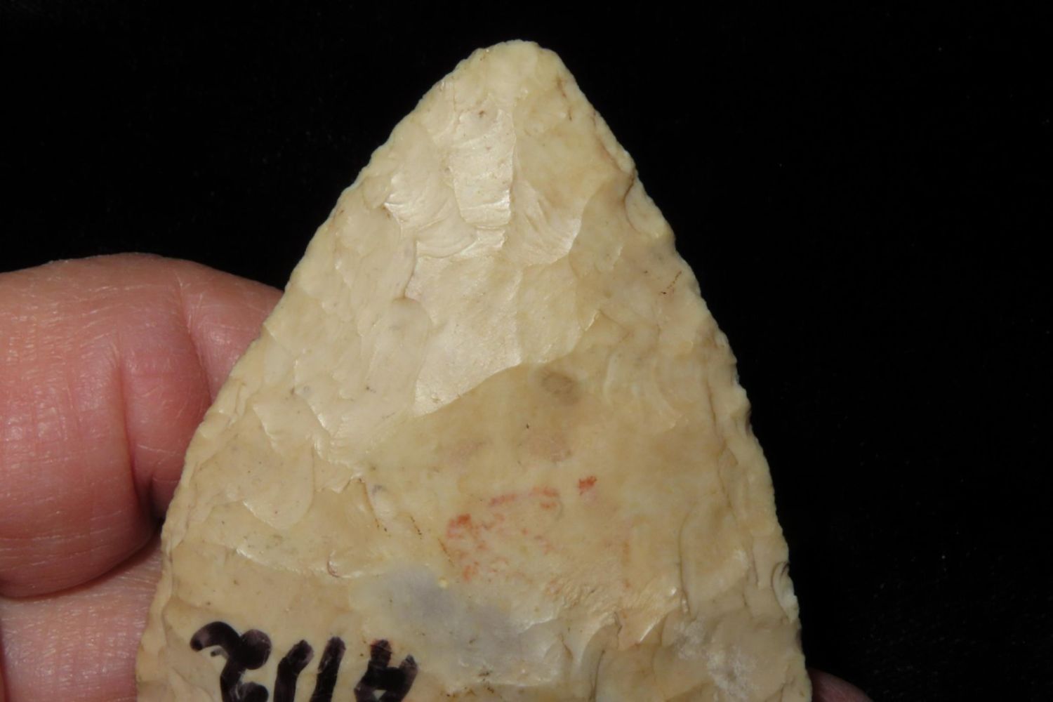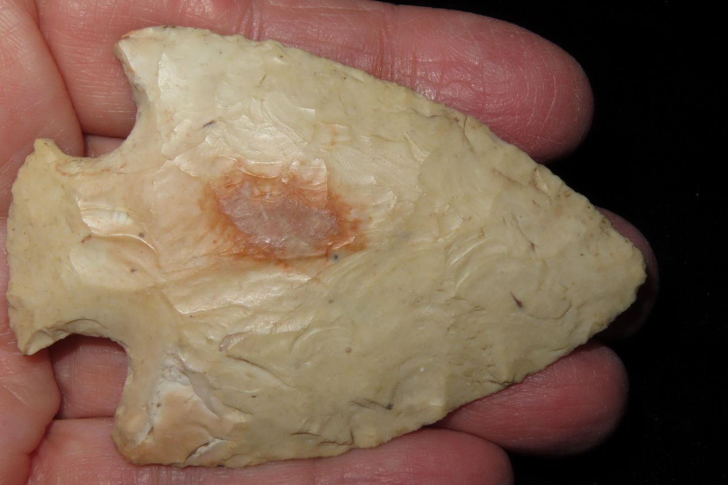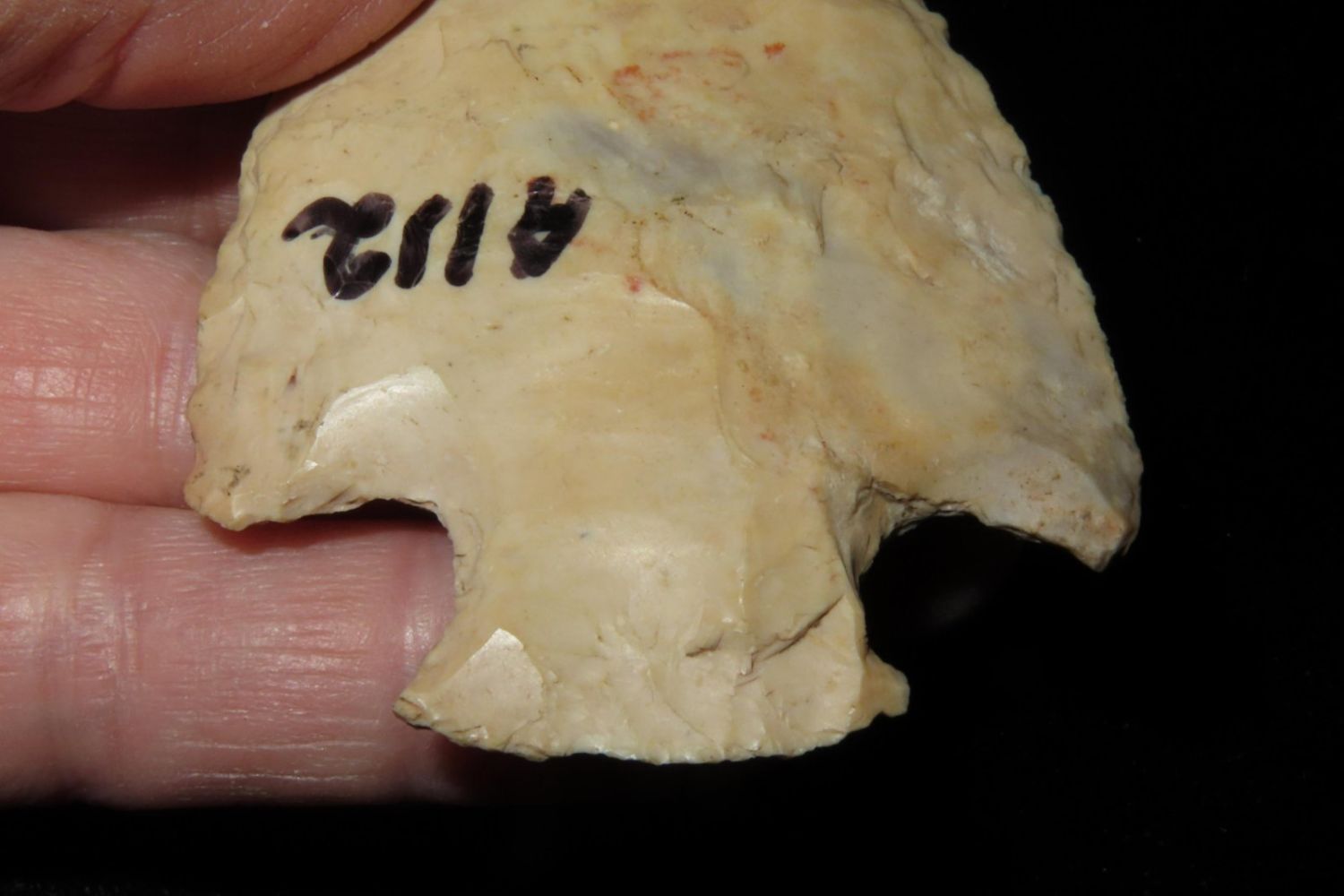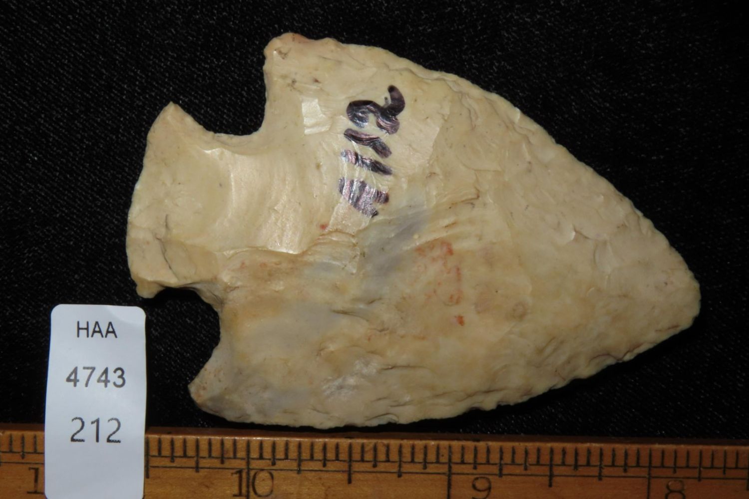 2 3/4" Snyders. Nice body, marked A112. From the James and Joe George Collection. Joe George was an avid collector and finder of Native American artifacts in the greater St Louis Missouri area. Joe collected his entire life. Upon his passing he turned his collection over to his son James. James was also a very avid collector. He enjoyed walking various waterways and attending artifact shows. James is looking forward to passing down his collection to the relic community for caretaking.