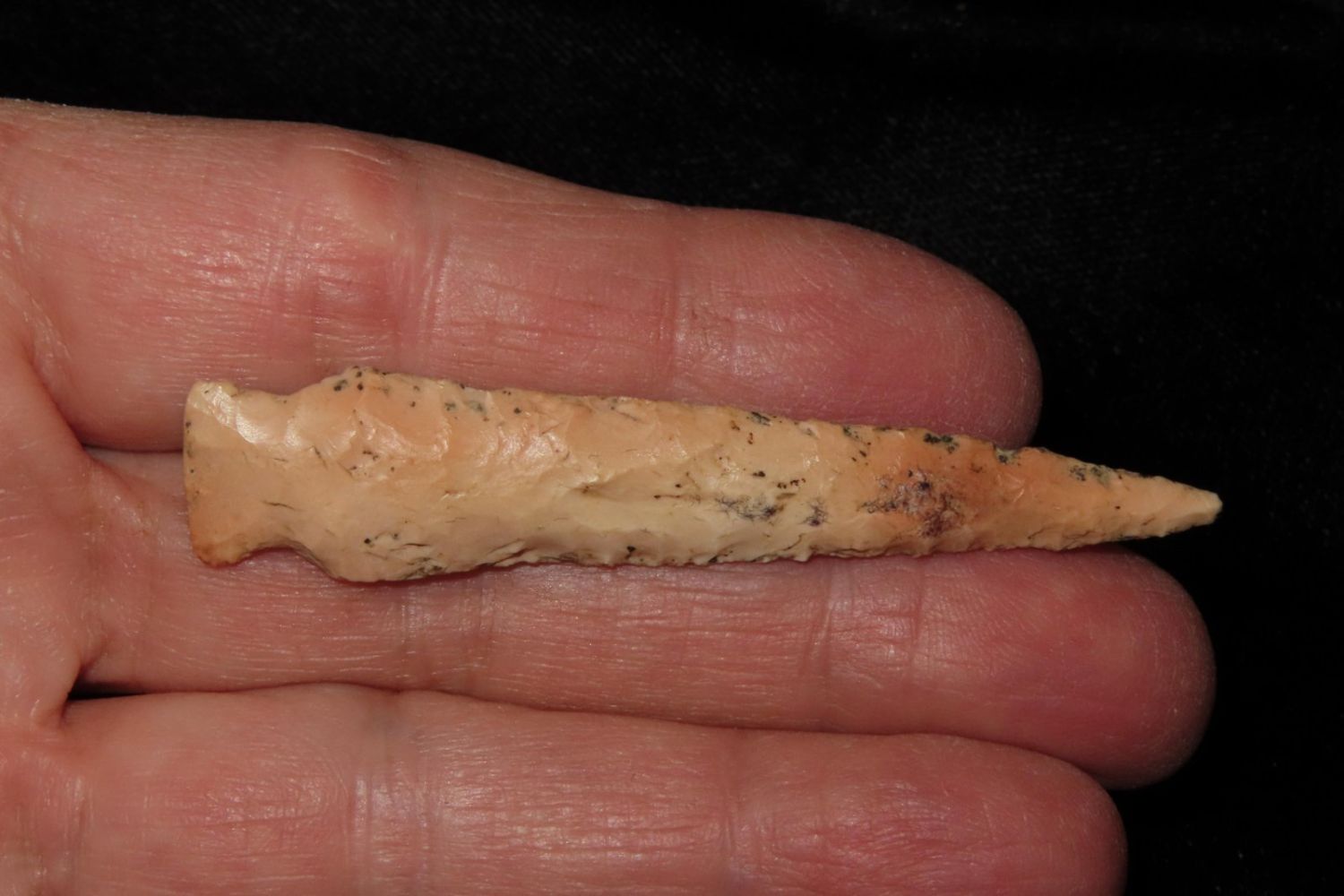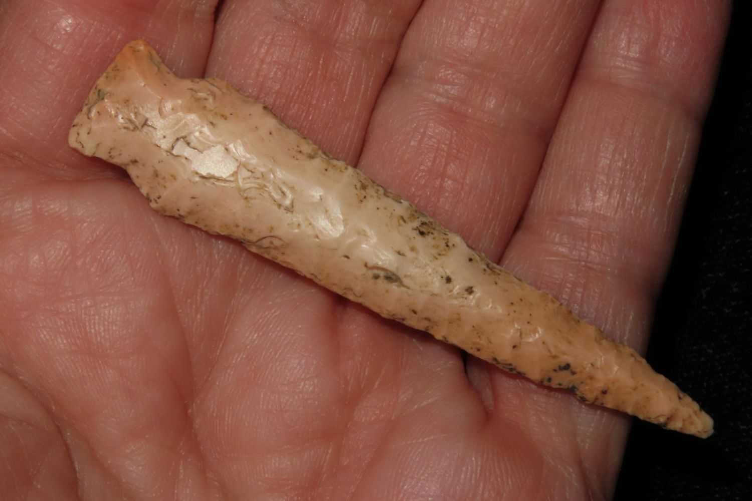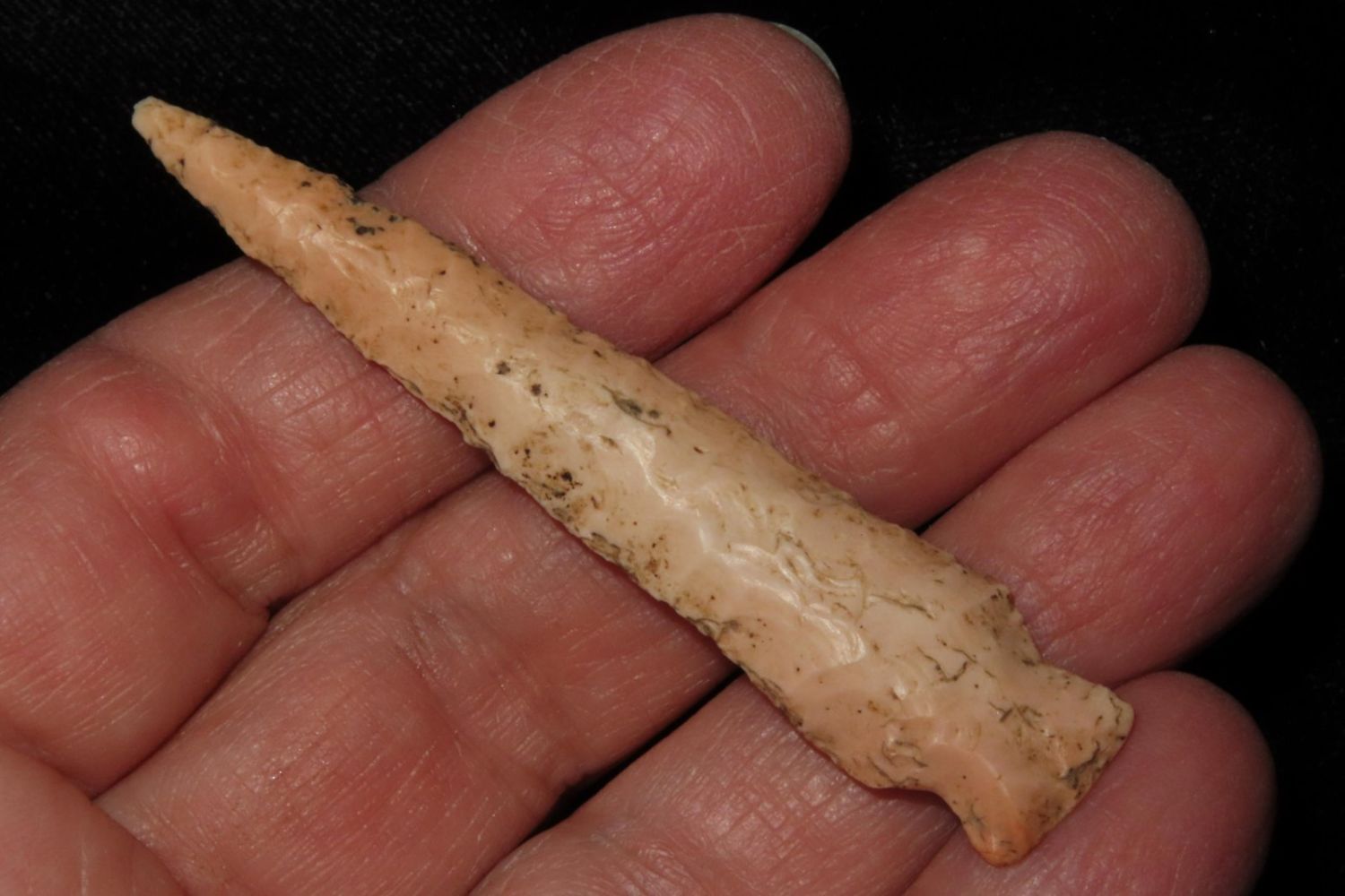 2 1/2" Epps Drill. From the James and Joe George Collection. Joe George was an avid collector and finder of Native American artifacts in the greater St Louis Missouri area. Joe collected his entire life. Upon his passing he turned his collection over to his son James. James was also a very avid collector. He enjoyed walking various waterways and attending artifact shows. James is looking forward to passing down his collection to the relic community for caretaking.