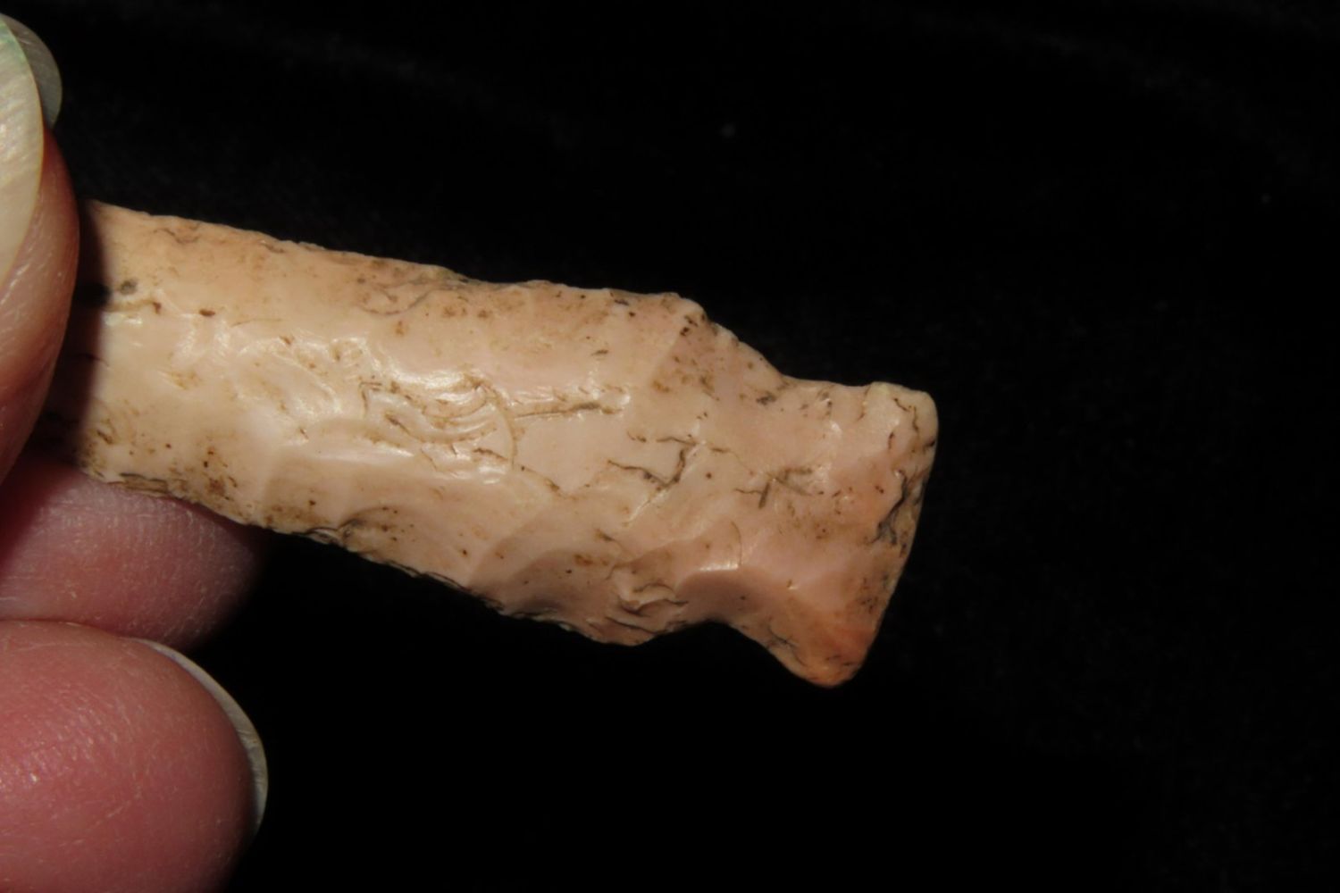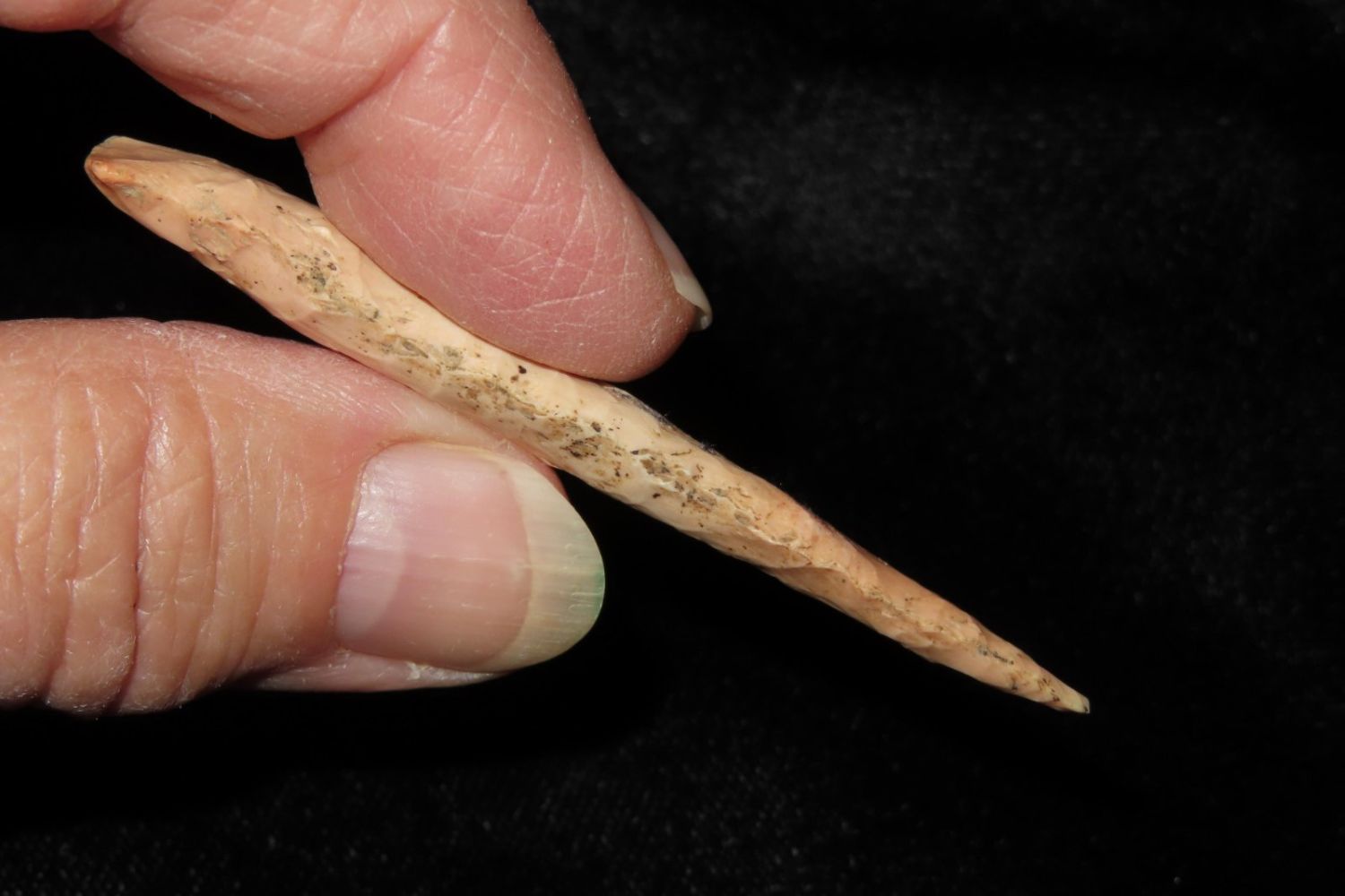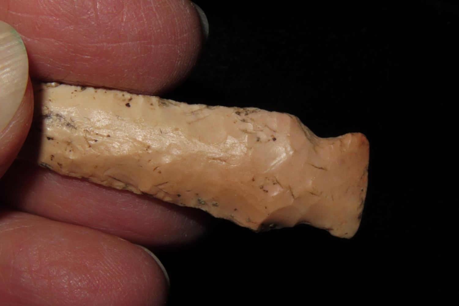 2 1/2" Epps Drill. From the James and Joe George Collection. Joe George was an avid collector and finder of Native American artifacts in the greater St Louis Missouri area. Joe collected his entire life. Upon his passing he turned his collection over to his son James. James was also a very avid collector. He enjoyed walking various waterways and attending artifact shows. James is looking forward to passing down his collection to the relic community for caretaking.