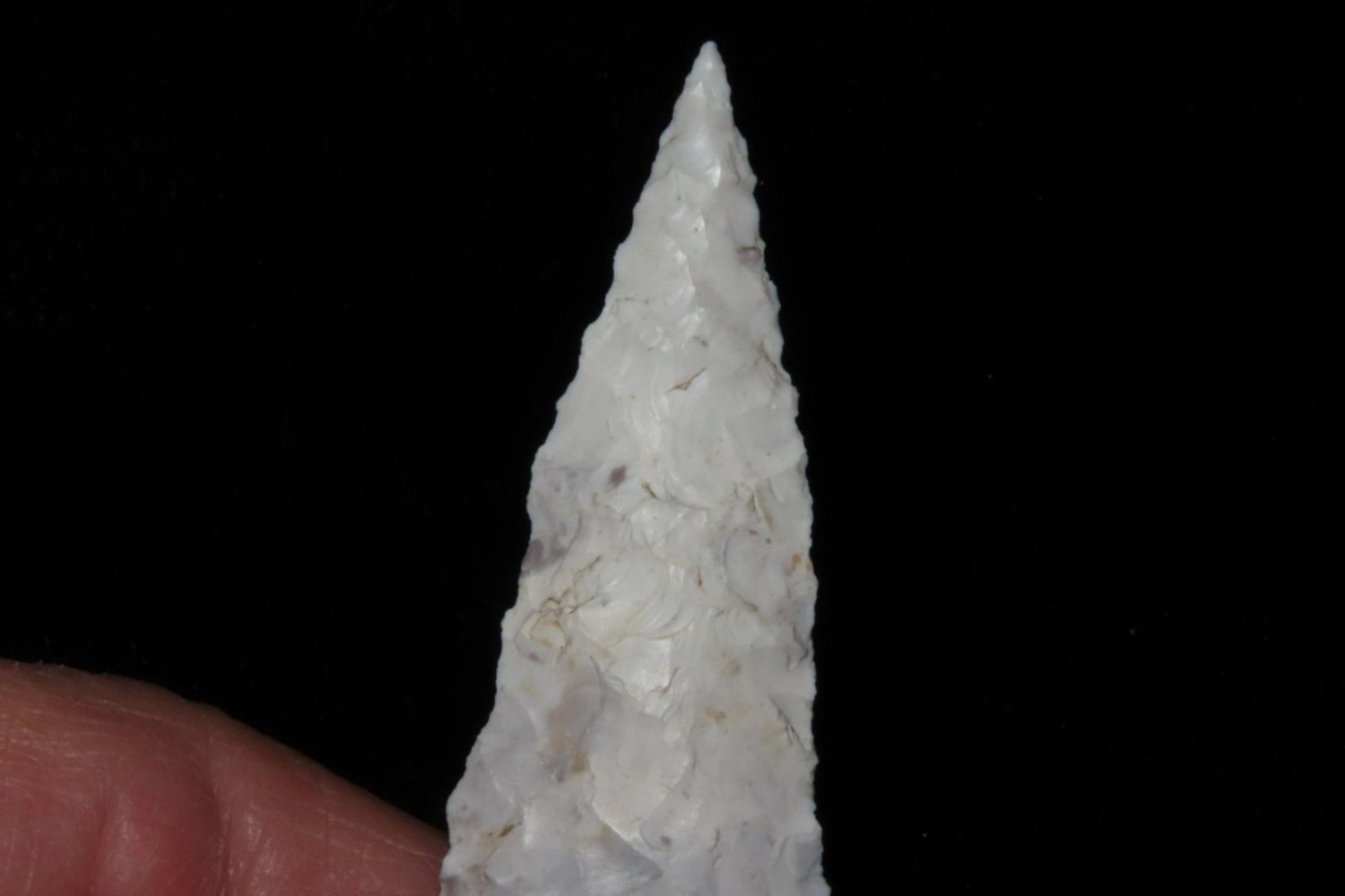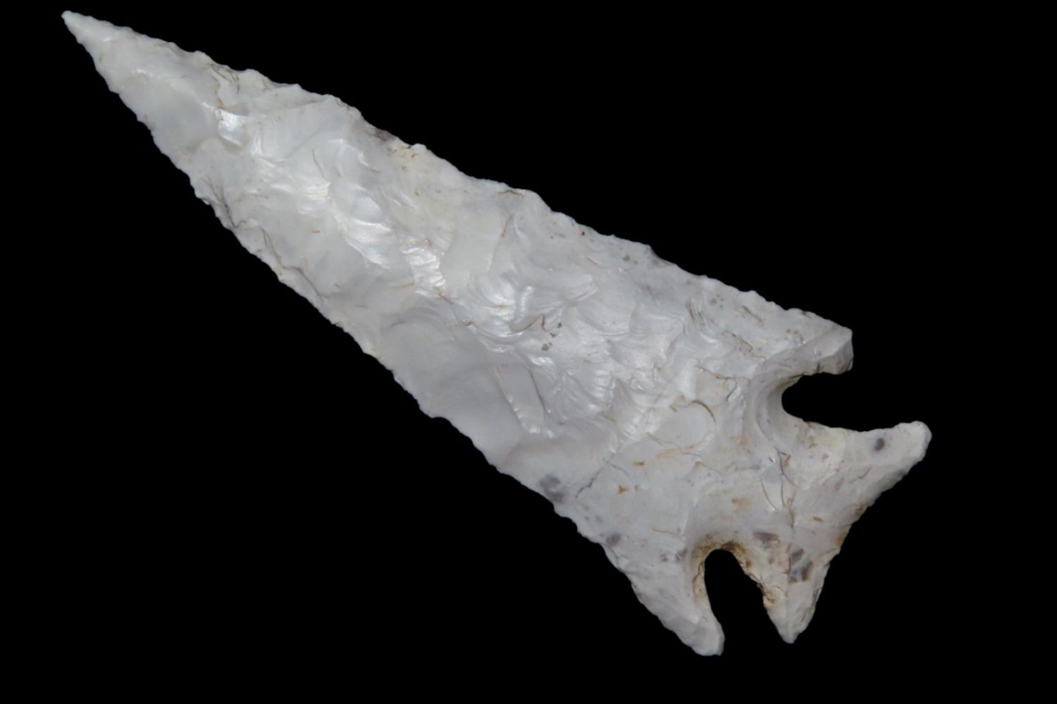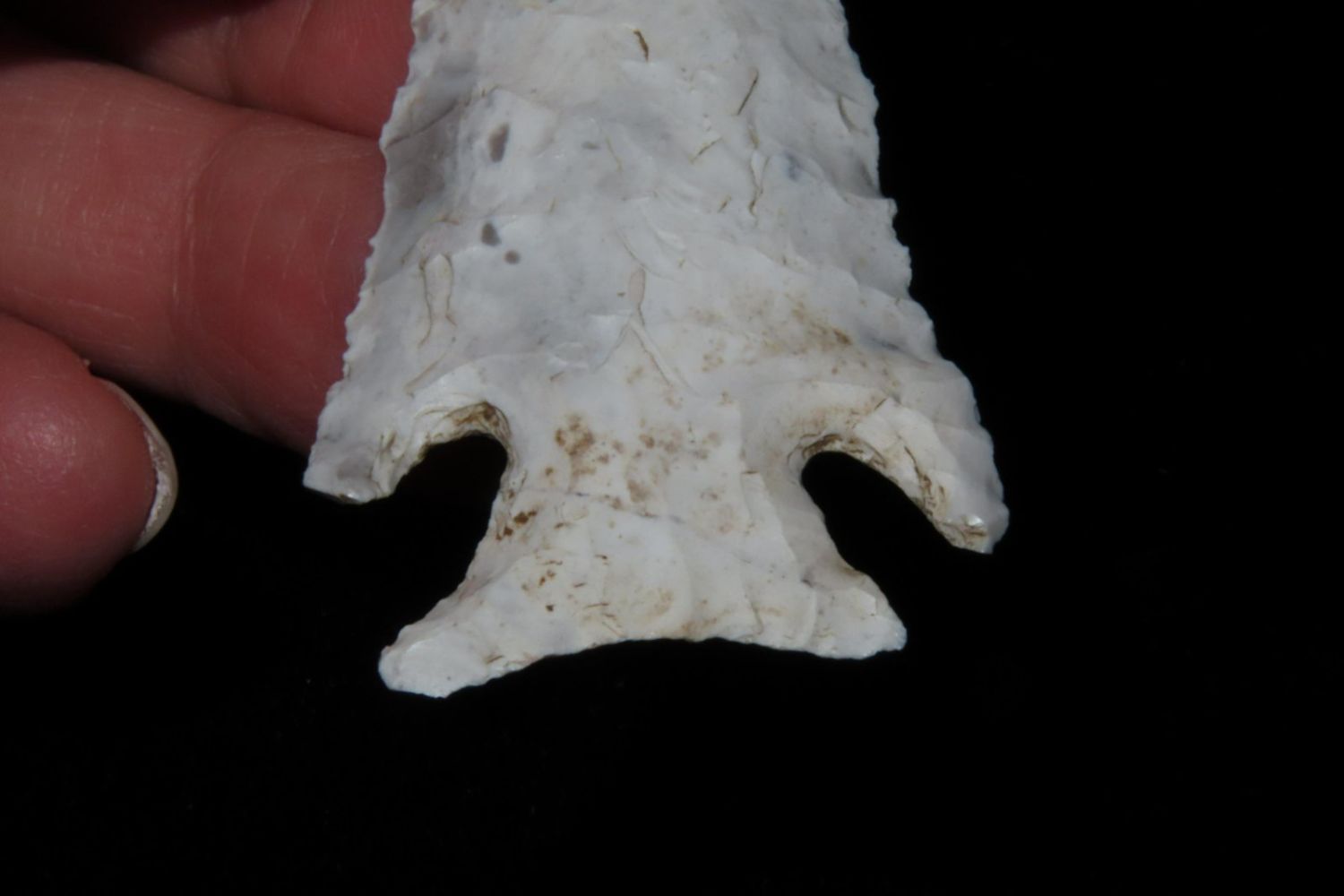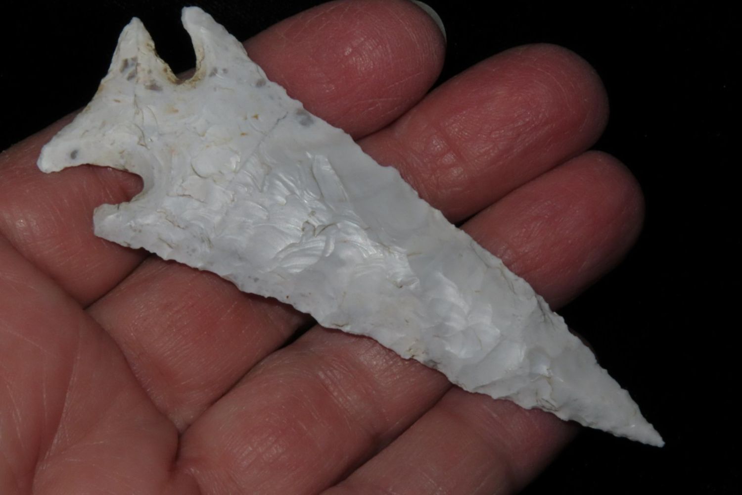 3 1/4" Kings Corner Notch found by Richard Whittle in Miller County, MO. From the James and Joe George Collection. Joe George was an avid collector and finder of Native American artifacts in the greater St Louis Missouri area. Joe collected his entire life. Upon his passing he turned his collection over to his son James. James was also a very avid collector. He enjoyed walking various waterways and attending artifact shows. James is looking forward to passing down his collection to the relic community for caretaking.