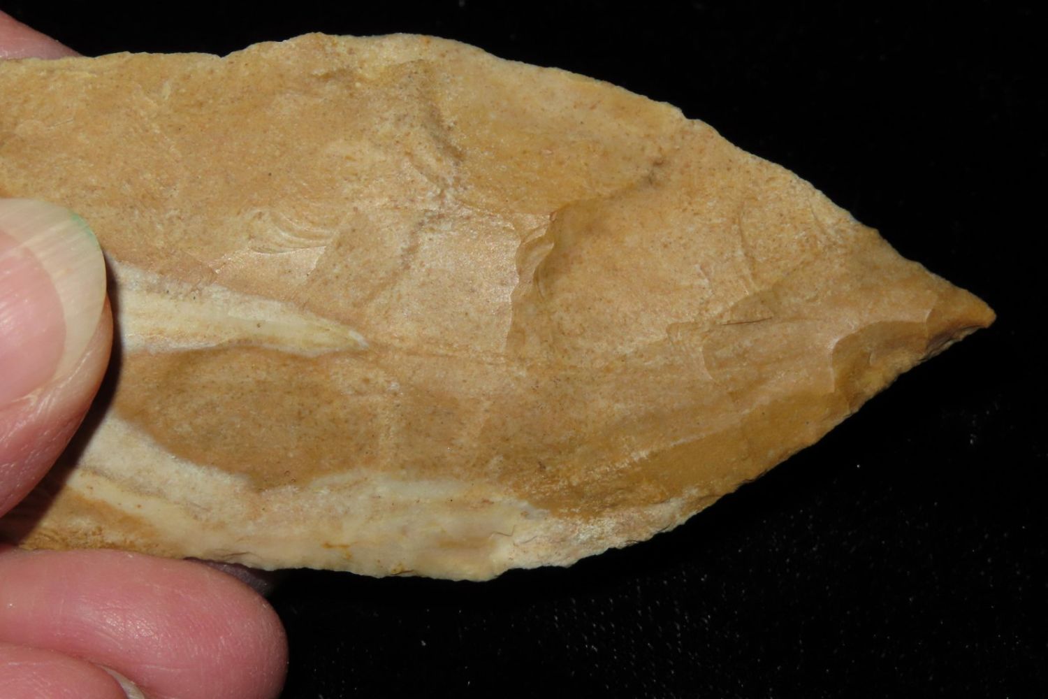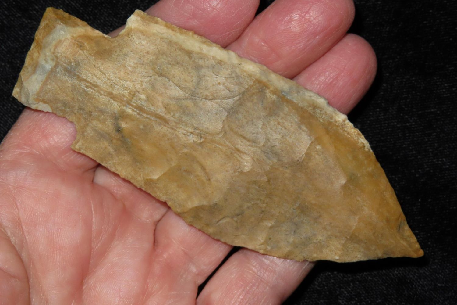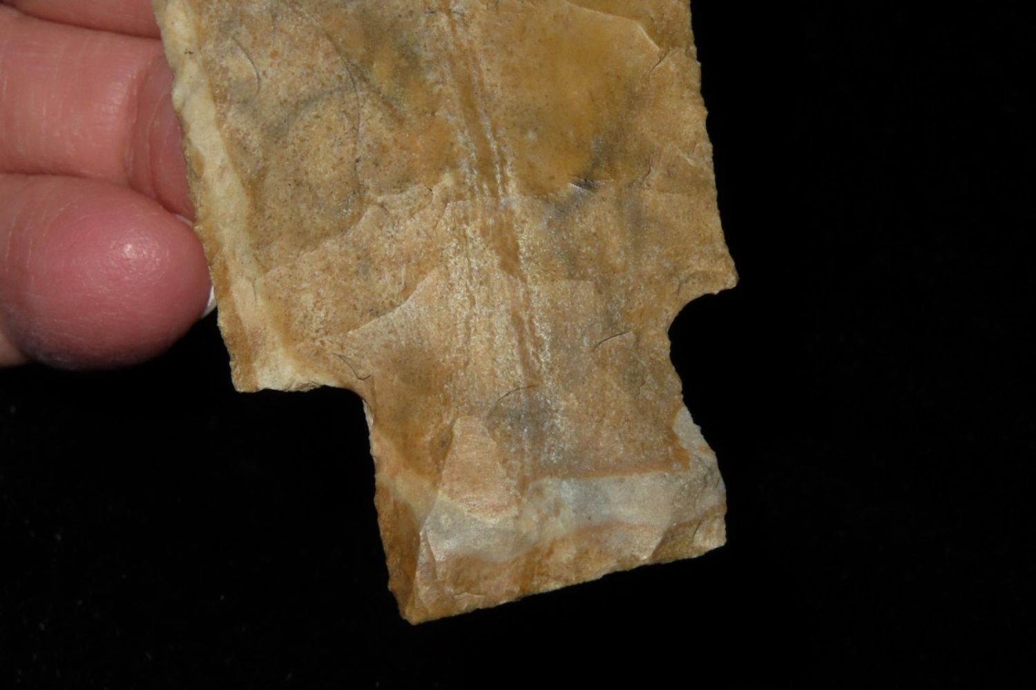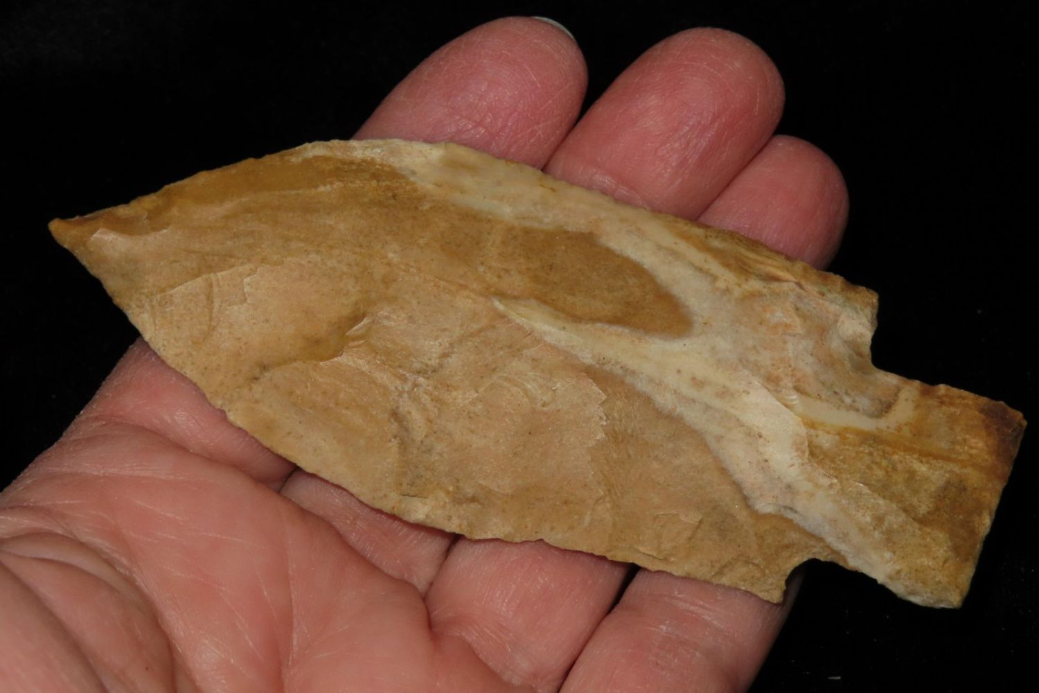 4" Etley made of Bowling Green Brown. From the James and Joe George Collection. Joe George was an avid collector and finder of Native American artifacts in the greater St Louis Missouri area. Joe collected his entire life. Upon his passing he turned his collection over to his son James. James was also a very avid collector. He enjoyed walking various waterways and attending artifact shows. James is looking forward to passing down his collection to the relic community for caretaking.