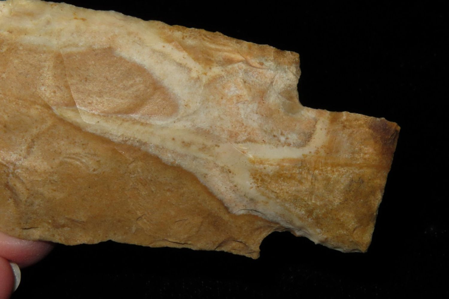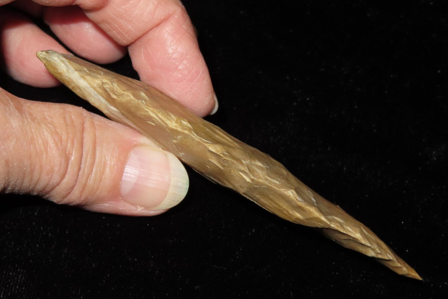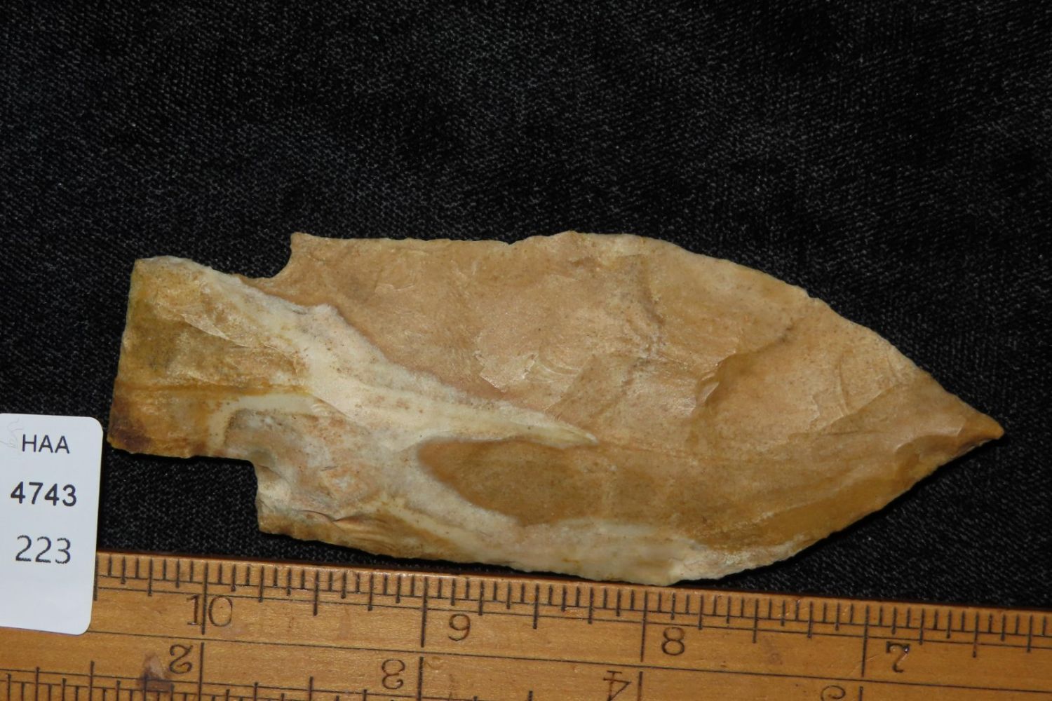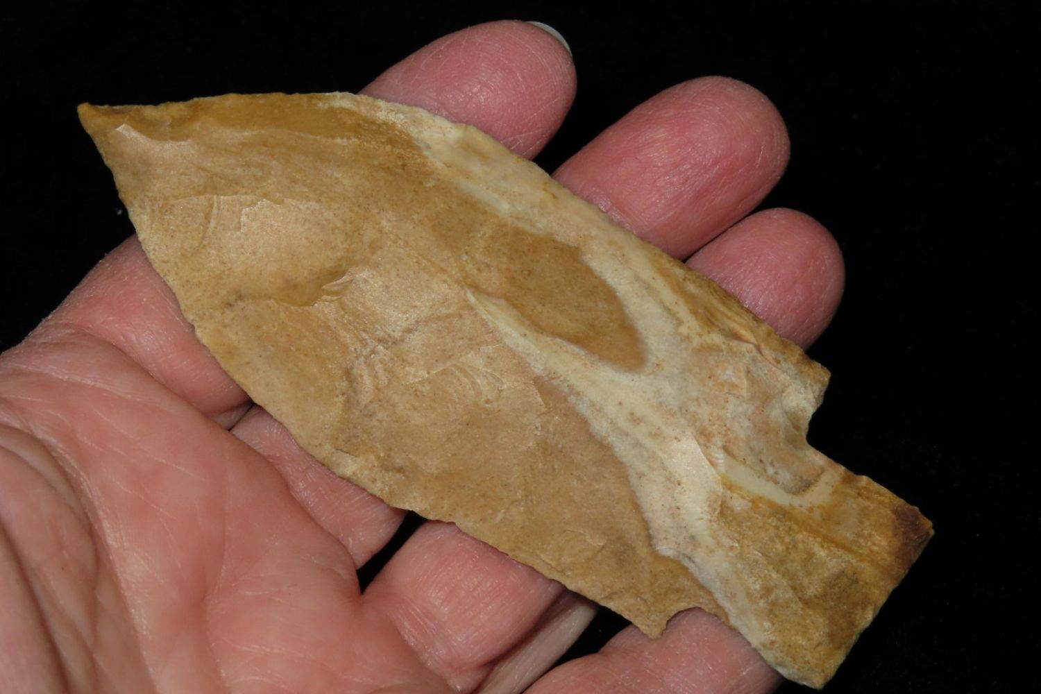 4" Etley made of Bowling Green Brown. From the James and Joe George Collection. Joe George was an avid collector and finder of Native American artifacts in the greater St Louis Missouri area. Joe collected his entire life. Upon his passing he turned his collection over to his son James. James was also a very avid collector. He enjoyed walking various waterways and attending artifact shows. James is looking forward to passing down his collection to the relic community for caretaking.