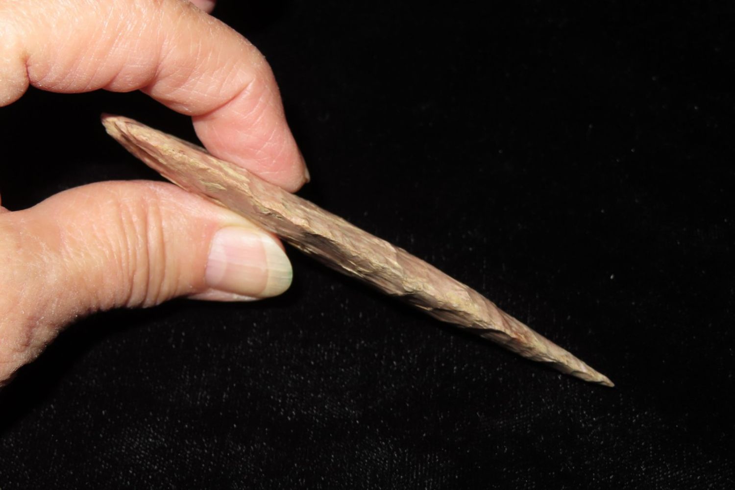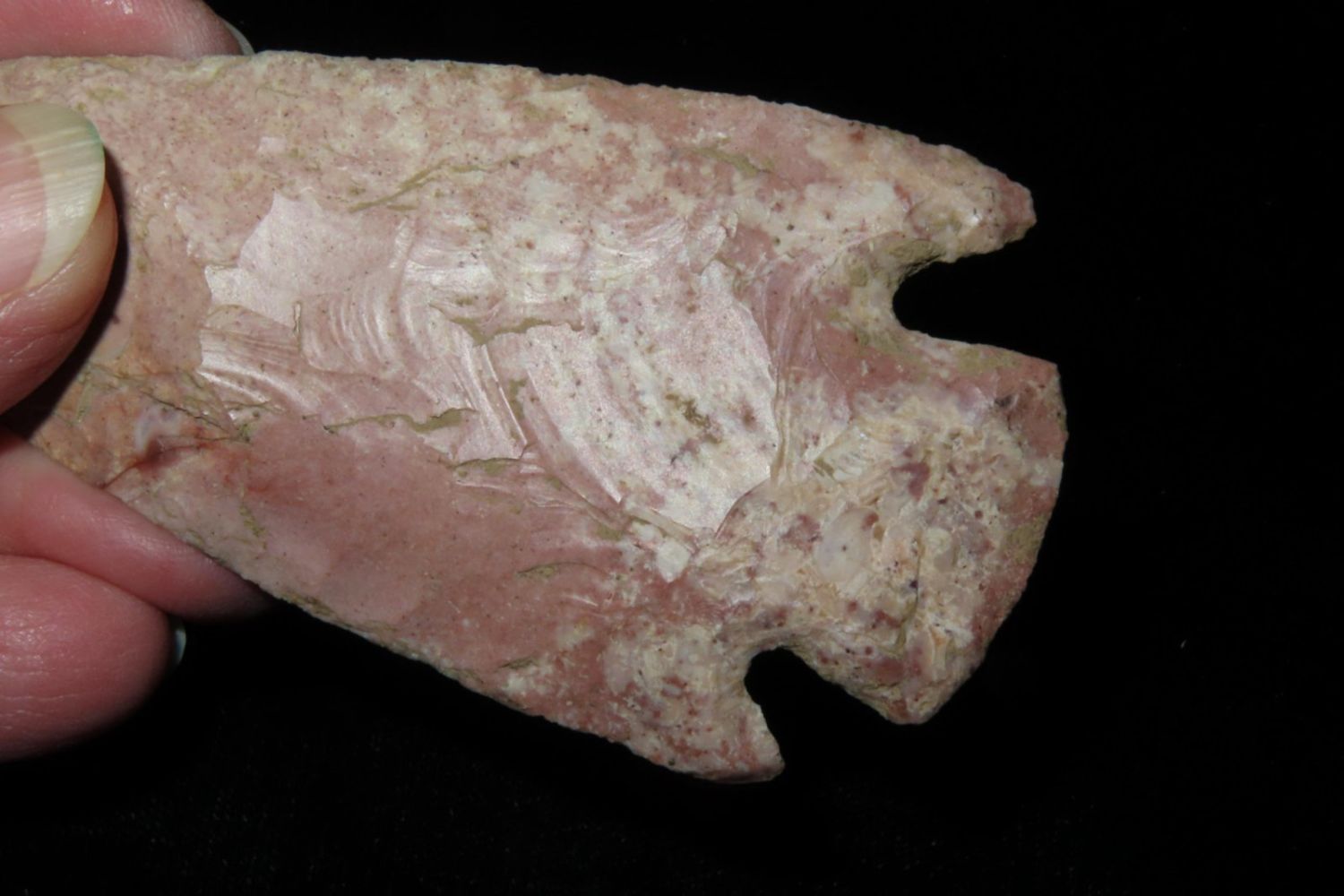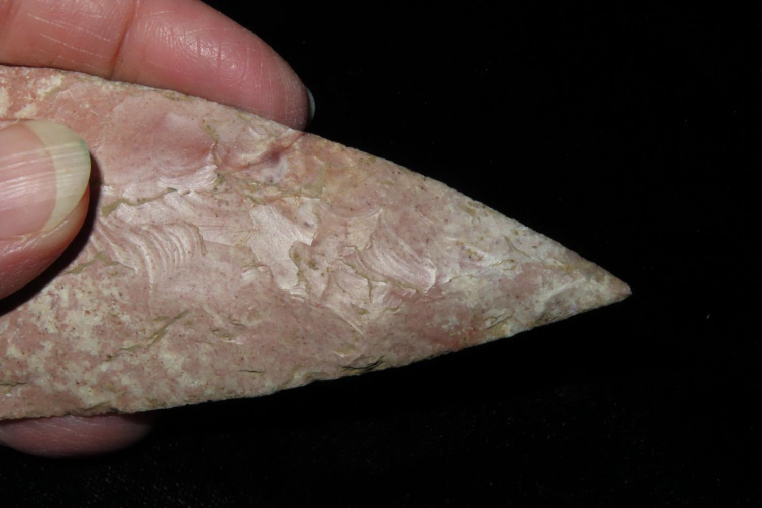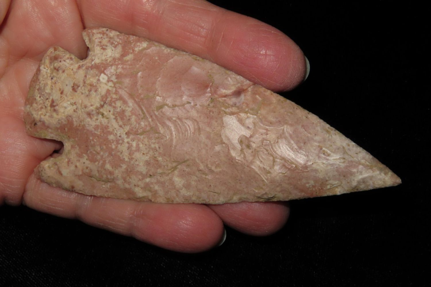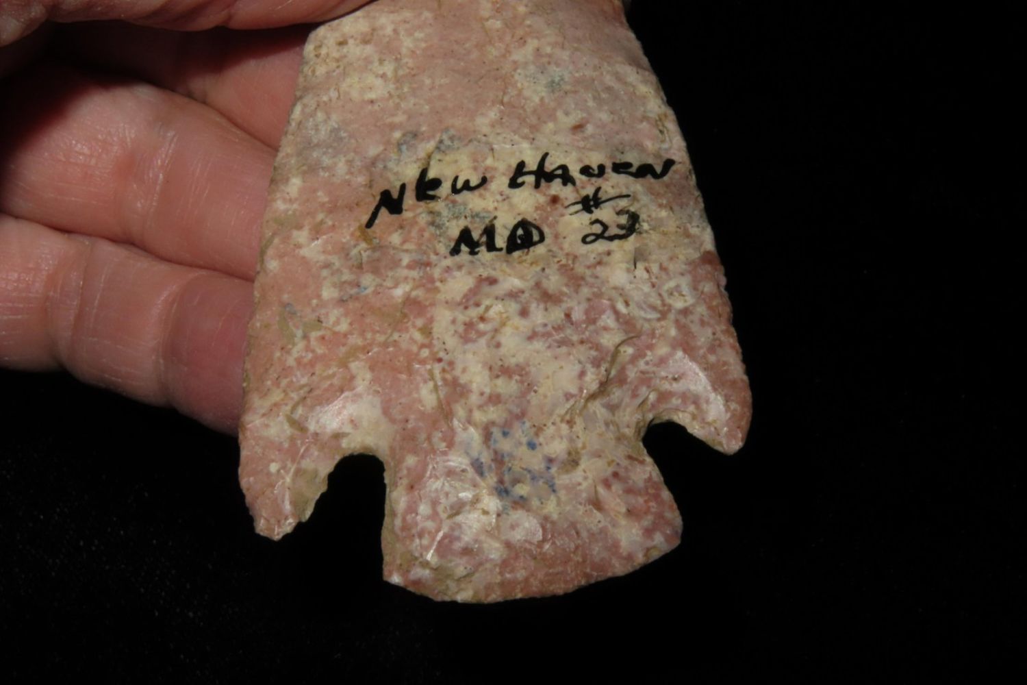 4 1/16" Ferry/Apple Creek. 2x COA: Dickey and Rogers. Found in New Haven, MO. From the James and Joe George Collection. Joe George was an avid collector and finder of Native American artifacts in the greater St Louis Missouri area. Joe collected his entire life. Upon his passing he turned his collection over to his son James. James was also a very avid collector. He enjoyed walking various waterways and attending artifact shows. James is looking forward to passing down his collection to the relic community for caretaking.