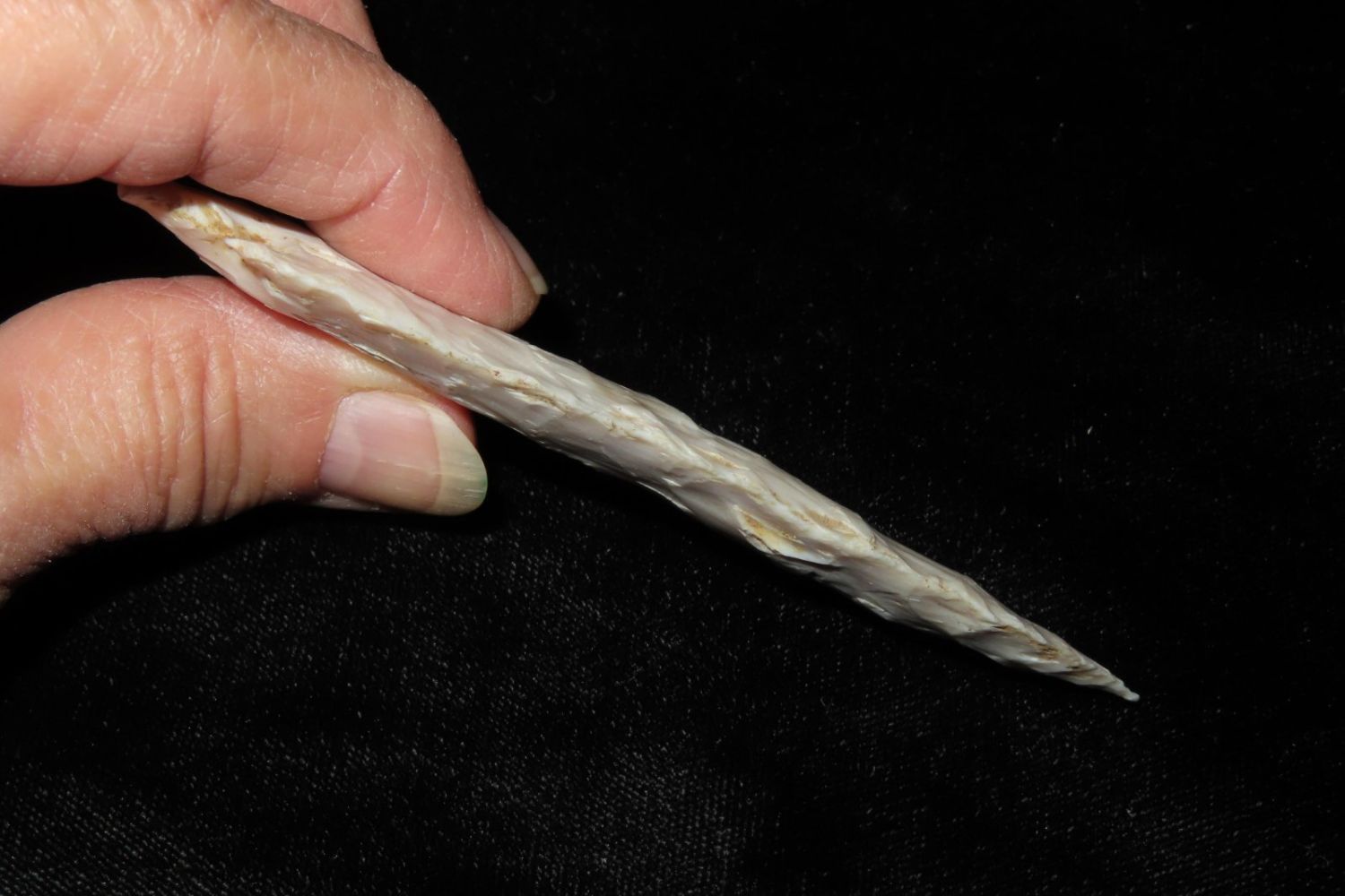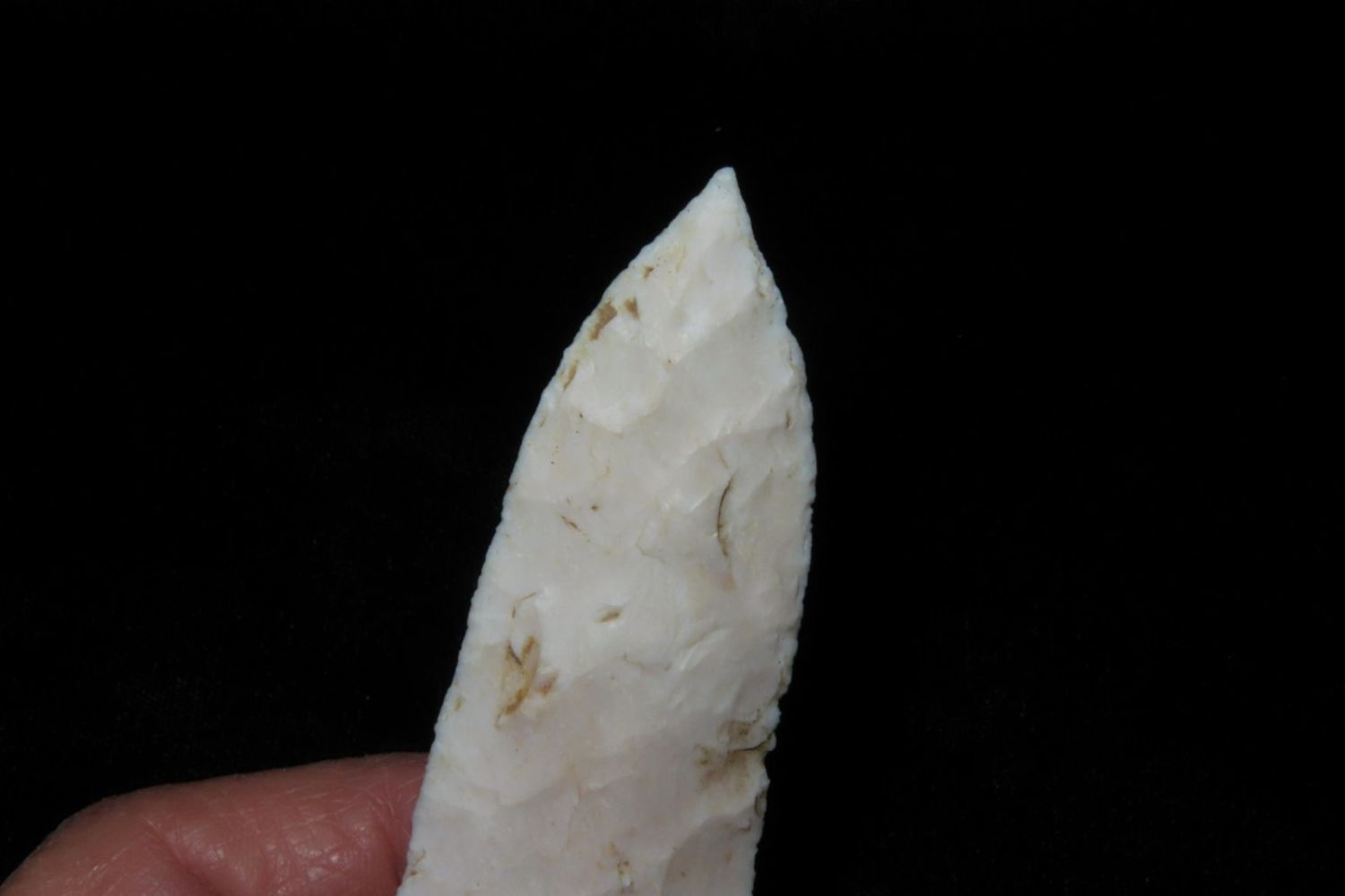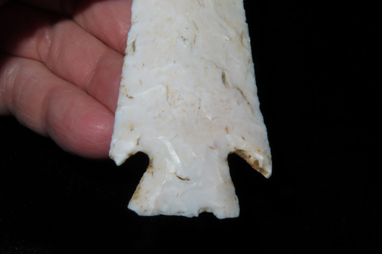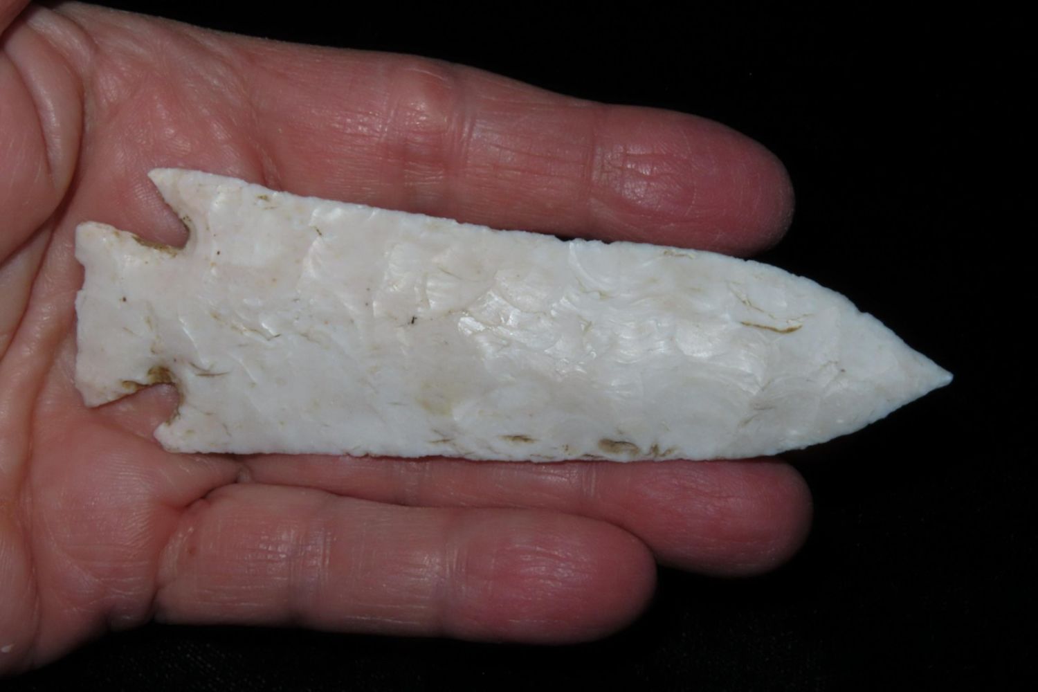 4 1/16" Afton. Dickey COA. Found in Macoupin County, IL by Kevin Calvin. From the James and Joe George Collection. Joe George was an avid collector and finder of Native American artifacts in the greater St Louis Missouri area. Joe collected his entire life. Upon his passing he turned his collection over to his son James. James was also a very avid collector. He enjoyed walking various waterways and attending artifact shows. James is looking forward to passing down his collection to the relic community for caretaking.