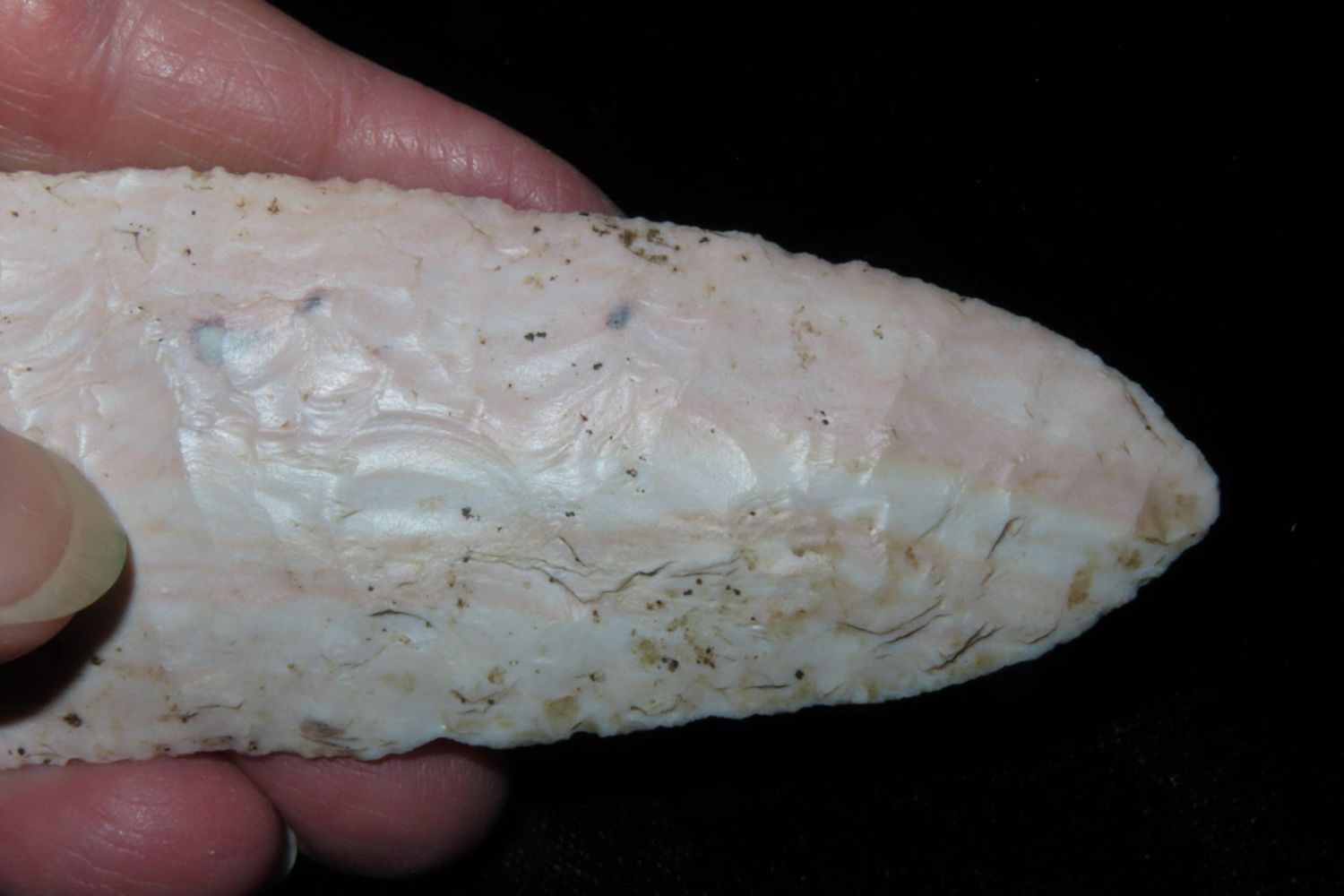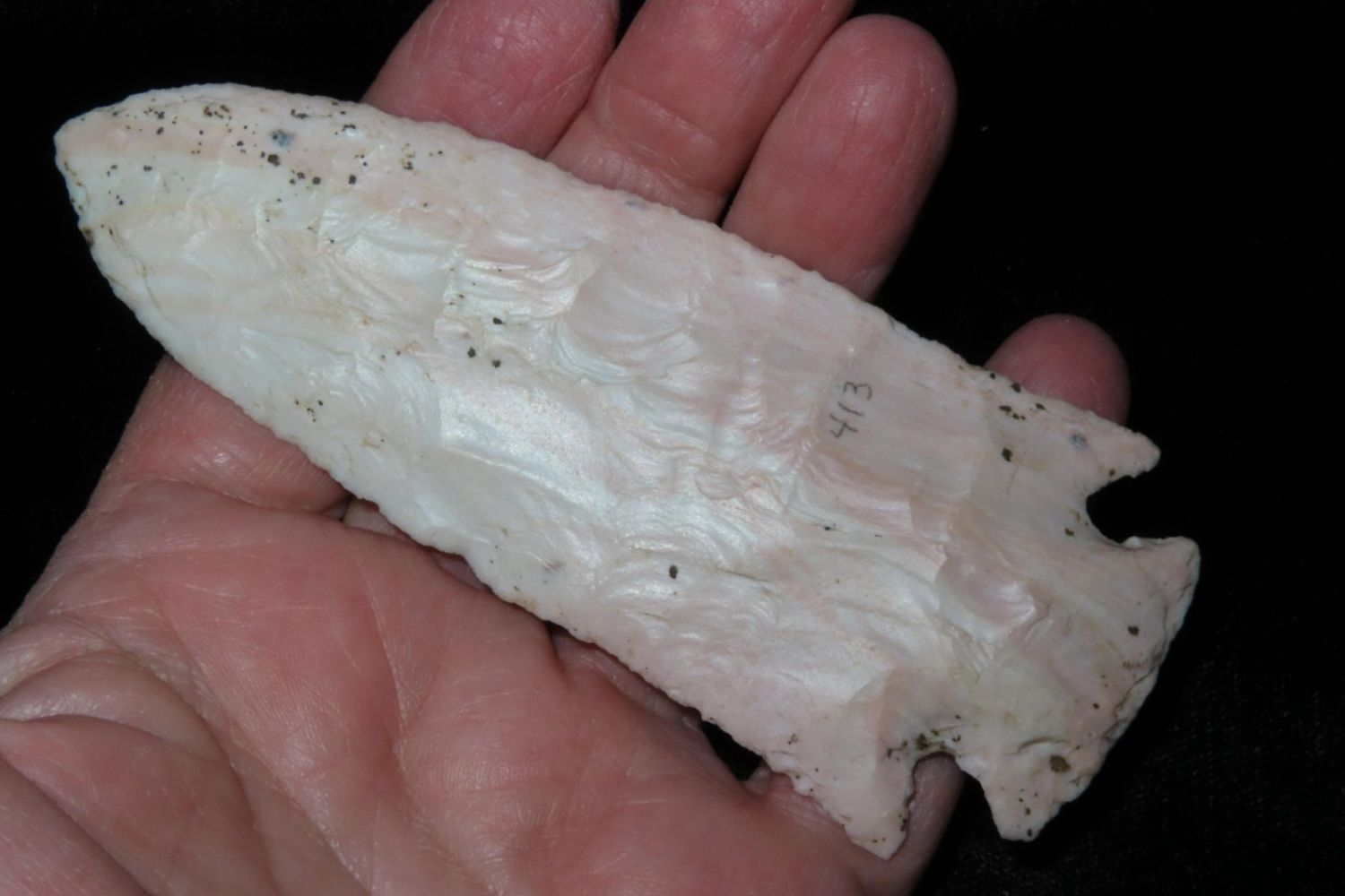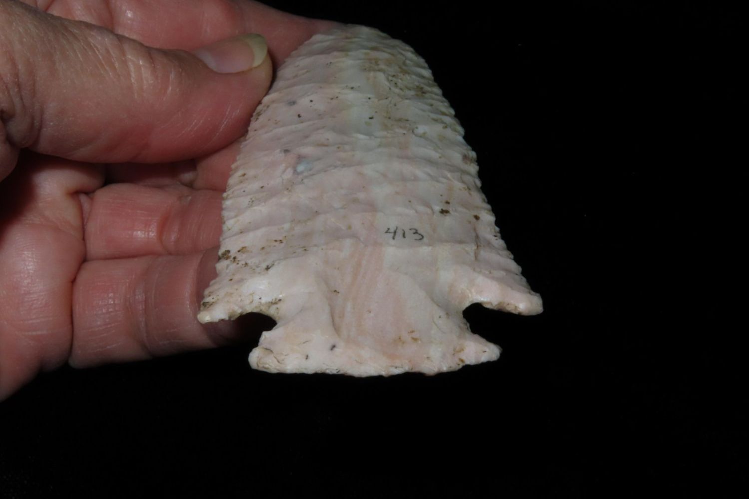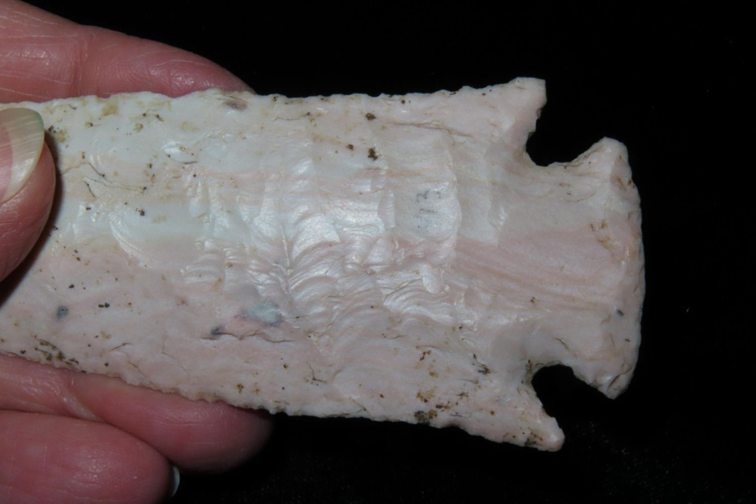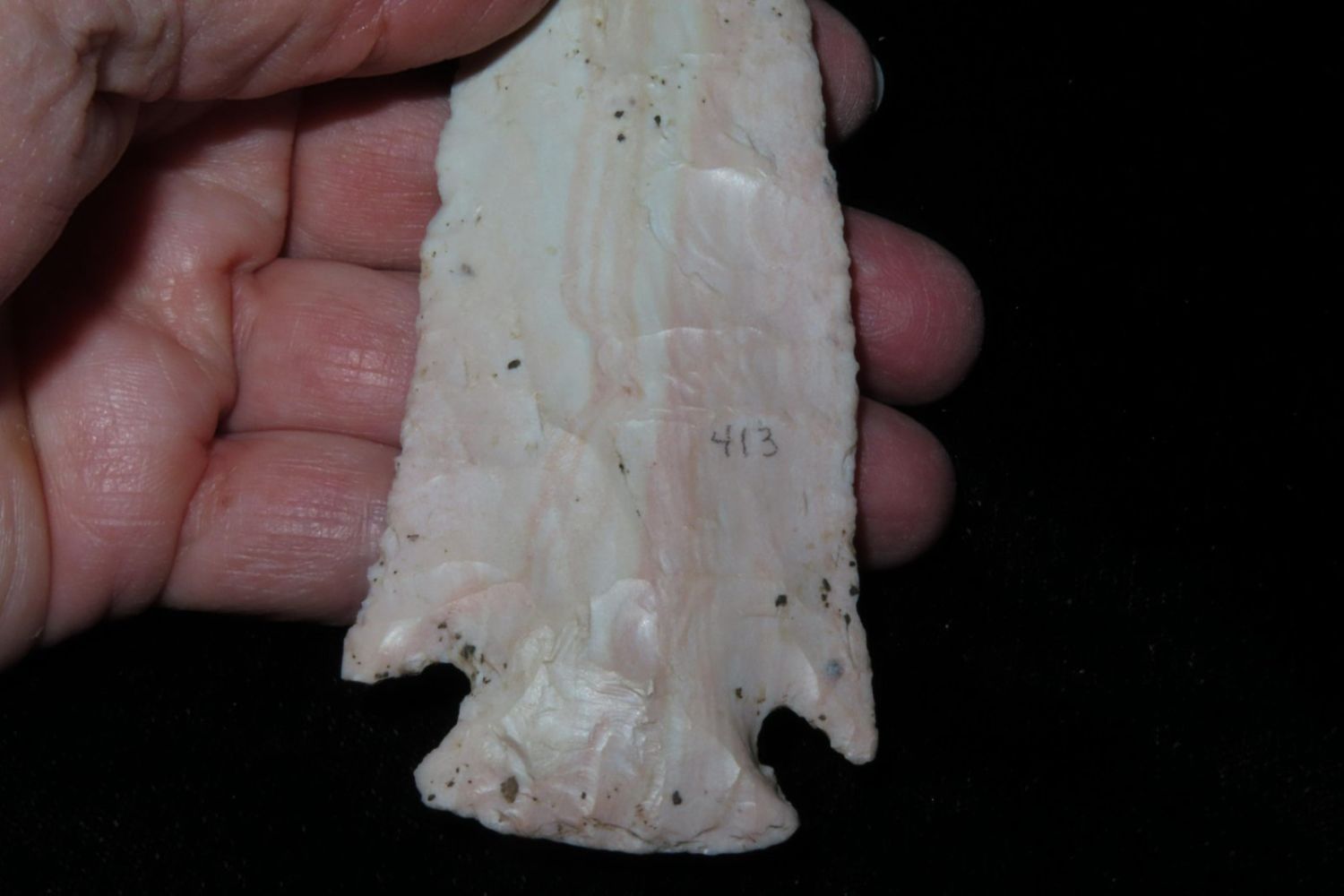4 1/4" Ocala/Hardove. 3x COA: Meadows, Rogers and Perino. Ex Jim Sortor. Well made and colorful with nice patina. From the James and Joe George Collection. Joe George was an avid collector and finder of Native American artifacts in the greater St Louis Missouri area. Joe collected his entire life. Upon his passing he turned his collection over to his son James. James was also a very avid collector. He enjoyed walking various waterways and attending artifact shows. James is looking forward to passing down his collection to the relic community for caretaking.