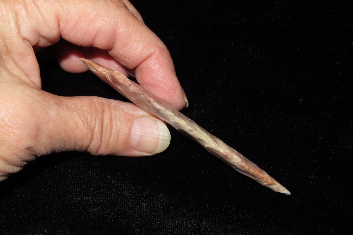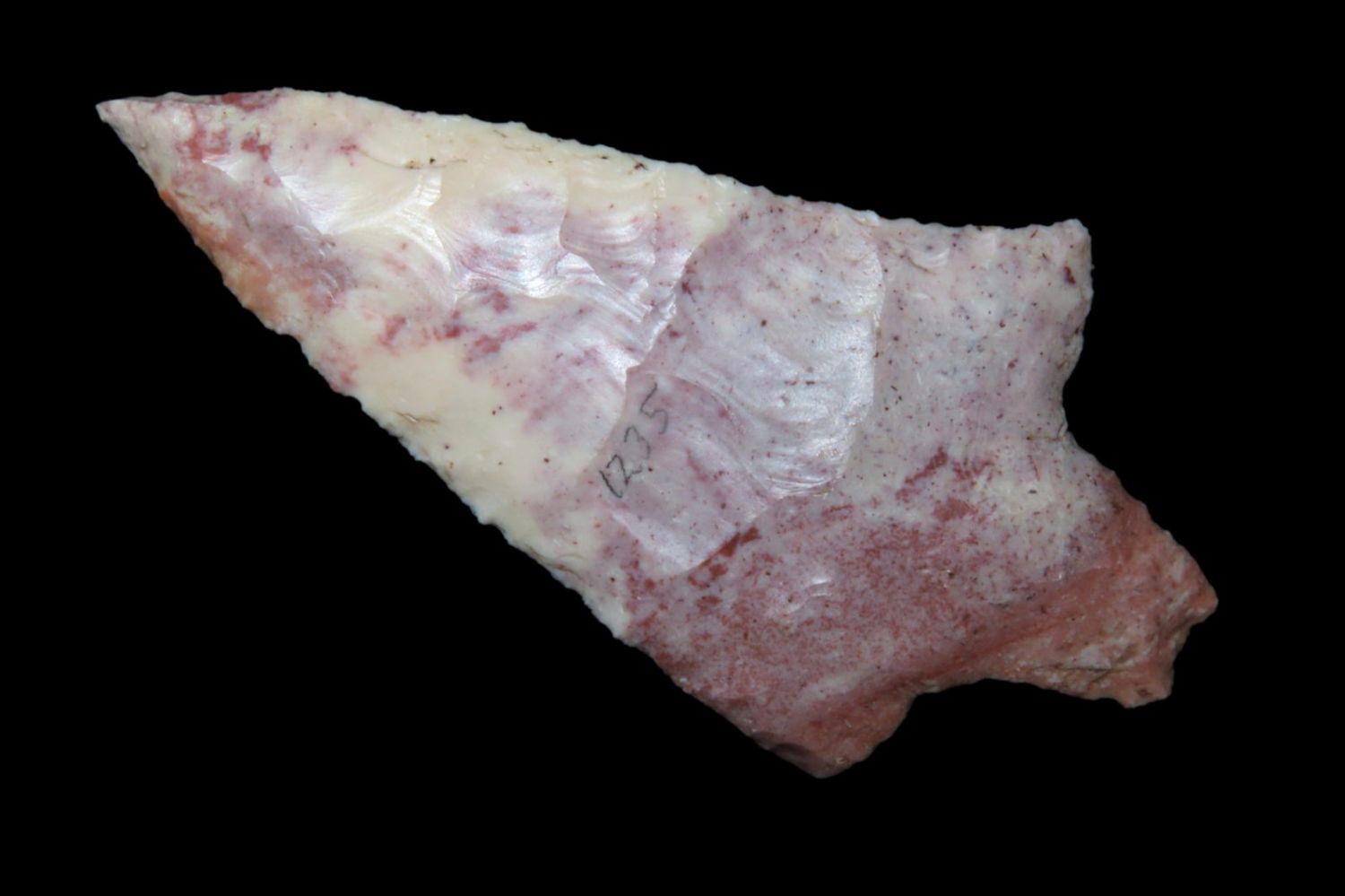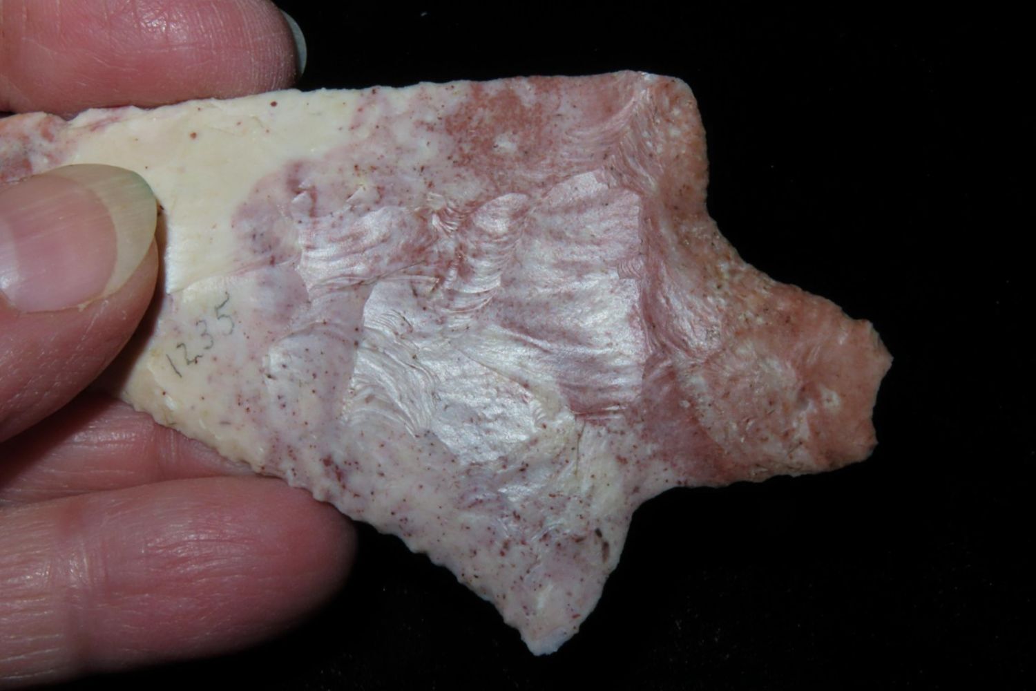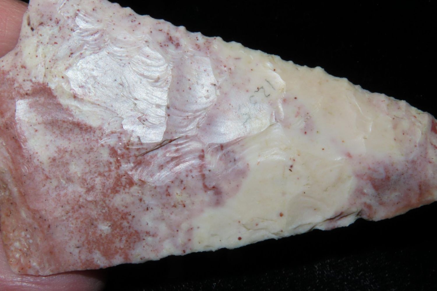 3 3/4" Dickson. 3x COA: Rogers, Meadows and Perino. Found by Jim Cooksey in Jefferson County, MO. Pictured in Spring 2007 Off line Magazine. From the James and Joe George Collection. Joe George was an avid collector and finder of Native American artifacts in the greater St Louis Missouri area. Joe collected his entire life. Upon his passing he turned his collection over to his son James. James was also a very avid collector. He enjoyed walking various waterways and attending artifact shows. James is looking forward to passing down his collection to the relic community for caretaking.