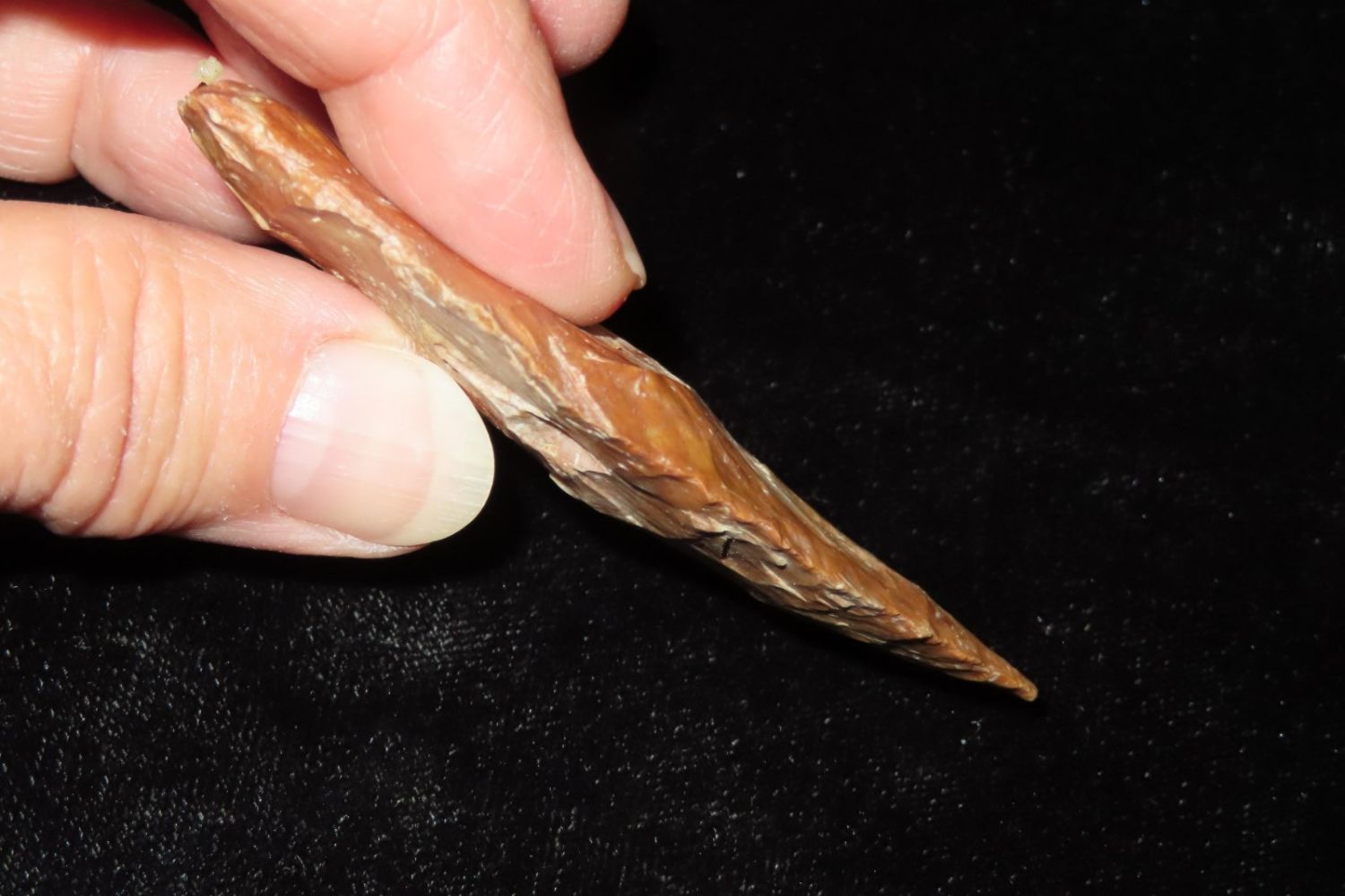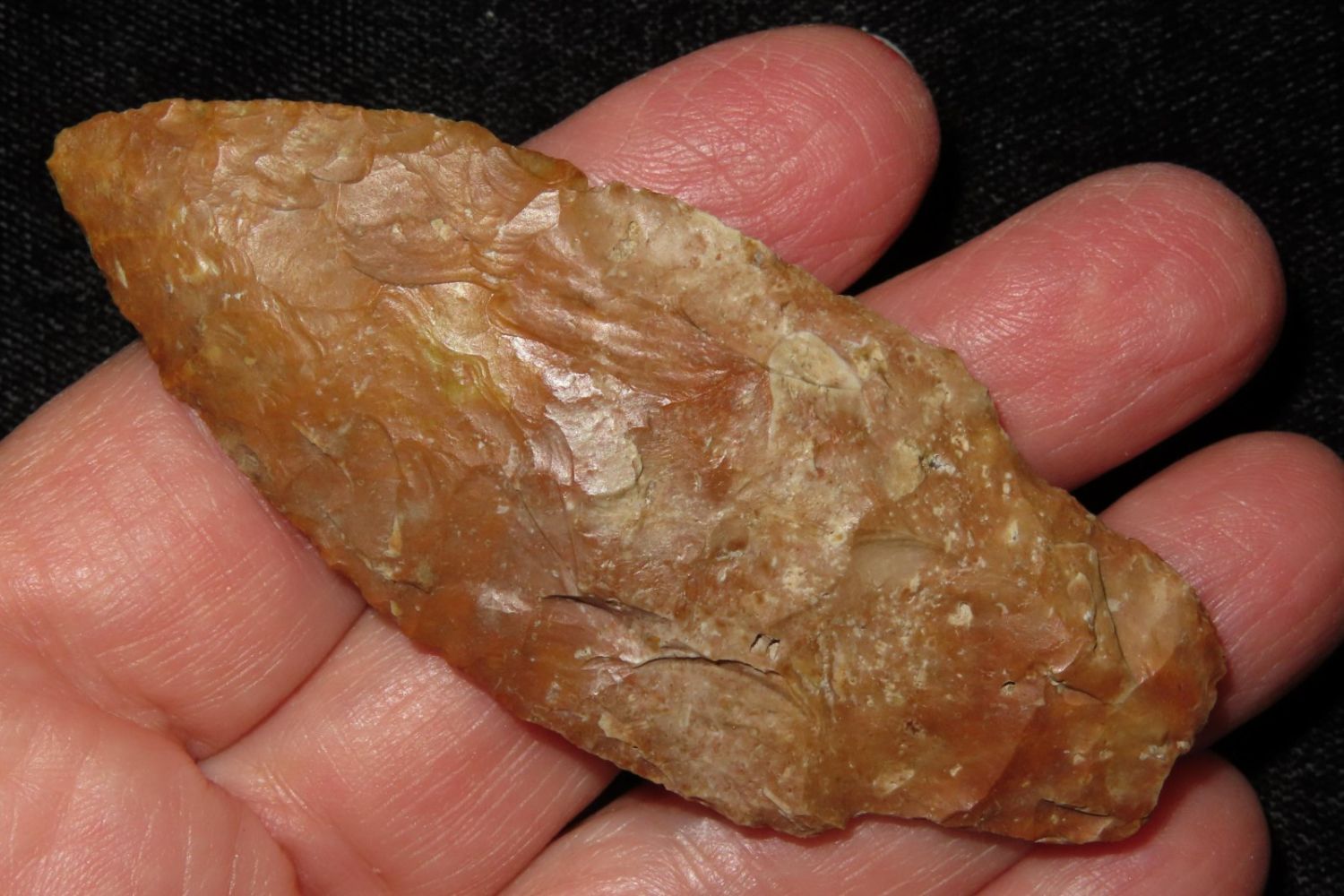 2 7/8" Adena. Heavily creek patinated. From the James and Joe George Collection. Joe George was an avid collector and finder of Native American artifacts in the greater St Louis Missouri area. Joe collected his entire life. Upon his passing he turned his collection over to his son James. James was also a very avid collector. He enjoyed walking various waterways and attending artifact shows. James is looking forward to passing down his collection to the relic community for caretaking.