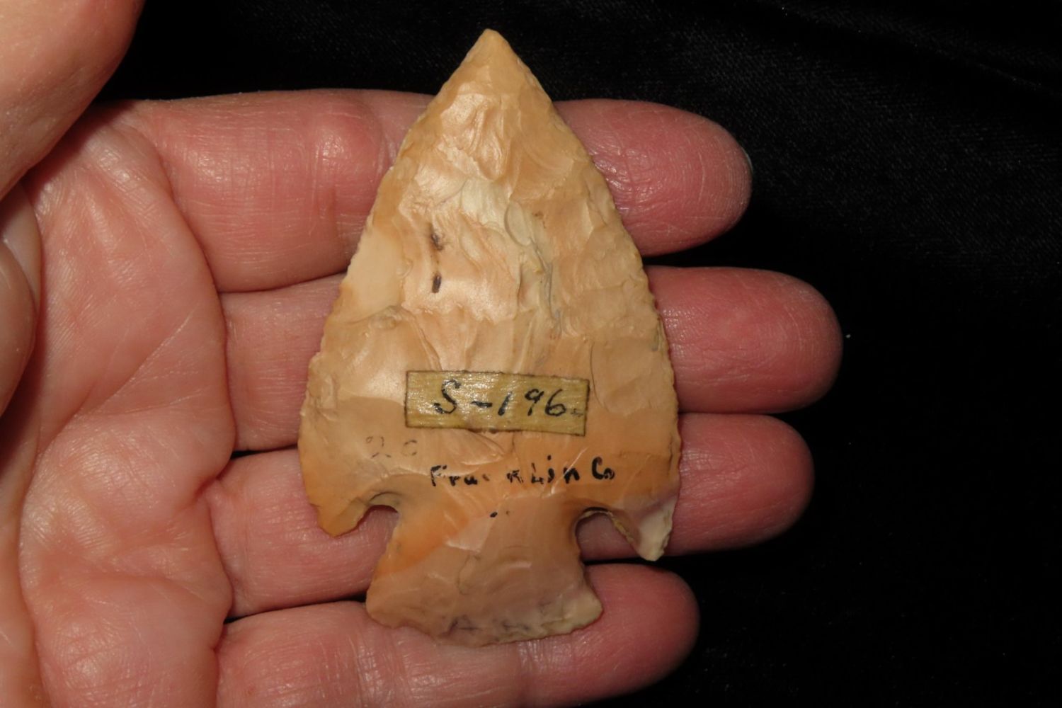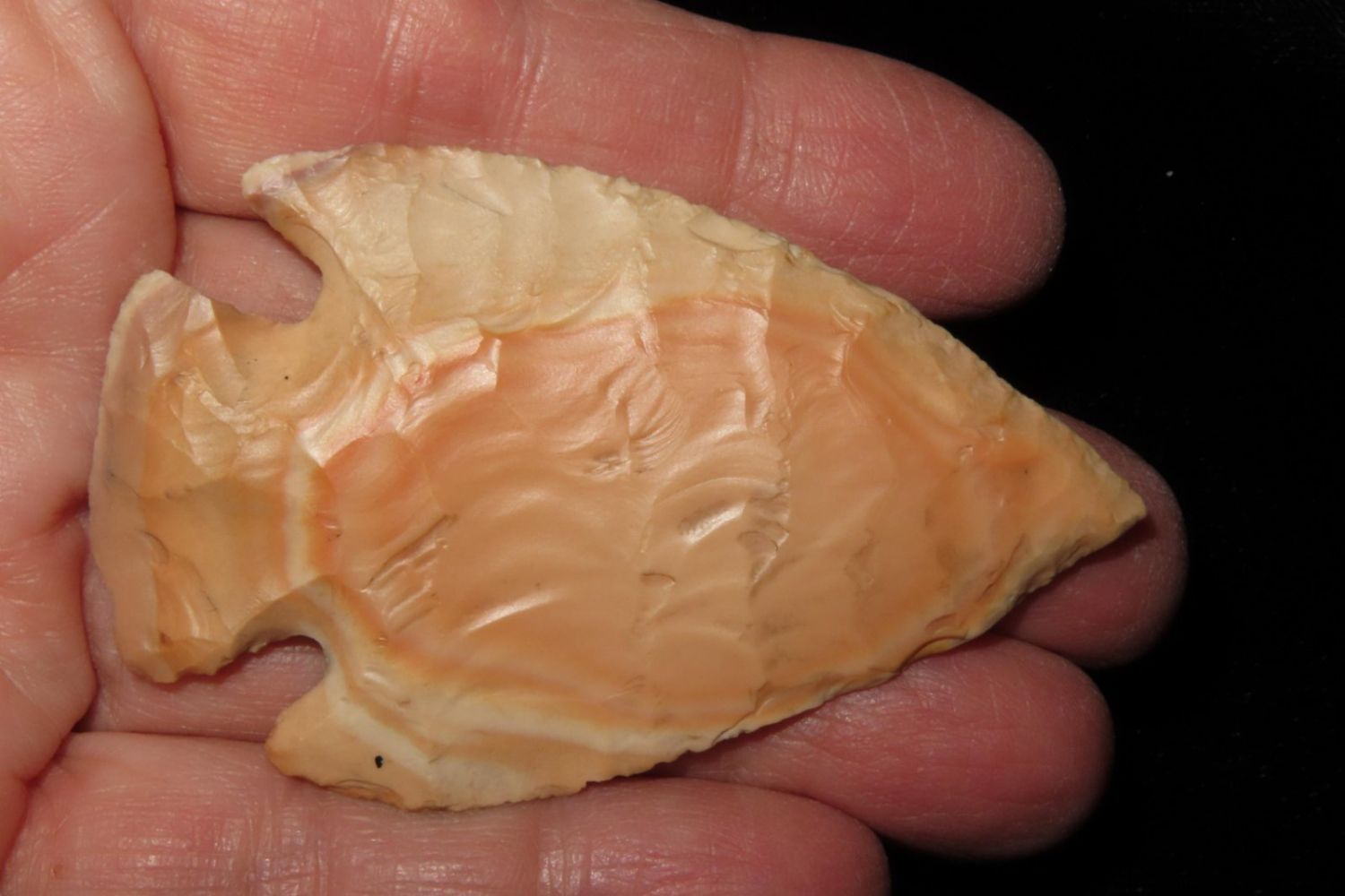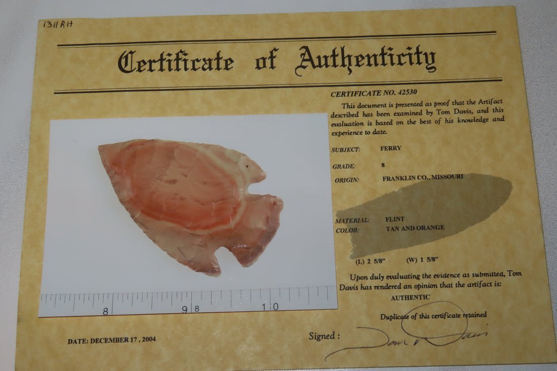 2 5/8" Ferry with amazing bullseye. Found in Franklin County, MO. From the James and Joe George Collection. Joe George was an avid collector and finder of Native American artifacts in the greater St Louis Missouri area. Joe collected his entire life. Upon his passing he turned his collection over to his son James. James was also a very avid collector. He enjoyed walking various waterways and attending artifact shows. James is looking forward to passing down his collection to the relic community for caretaking.
