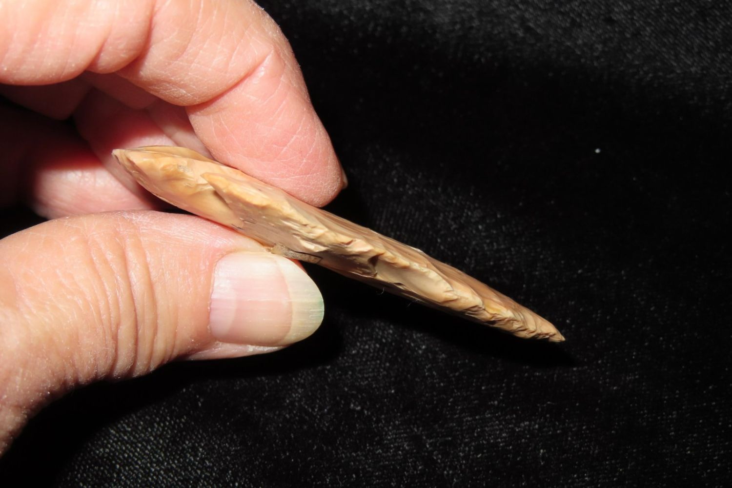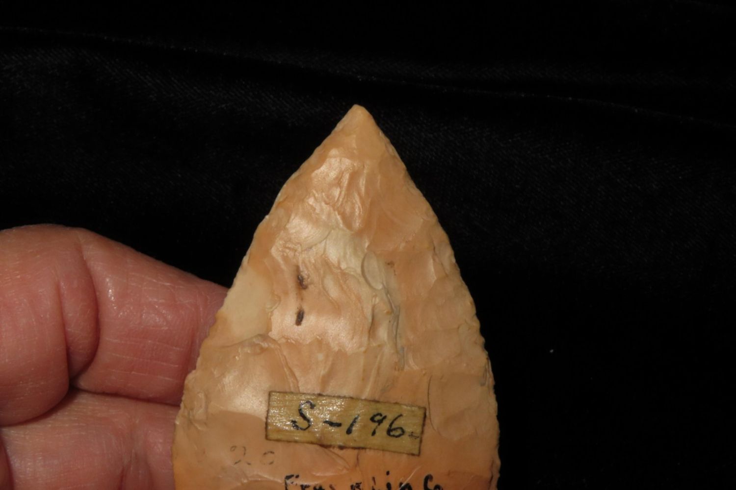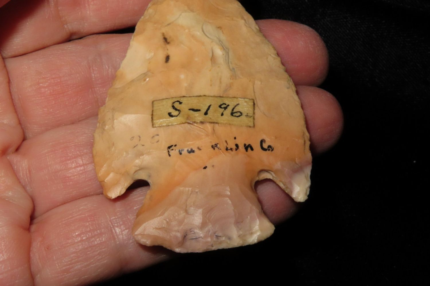 2 5/8" Ferry with amazing bullseye. Found in Franklin County, MO. From the James and Joe George Collection. Joe George was an avid collector and finder of Native American artifacts in the greater St Louis Missouri area. Joe collected his entire life. Upon his passing he turned his collection over to his son James. James was also a very avid collector. He enjoyed walking various waterways and attending artifact shows. James is looking forward to passing down his collection to the relic community for caretaking.