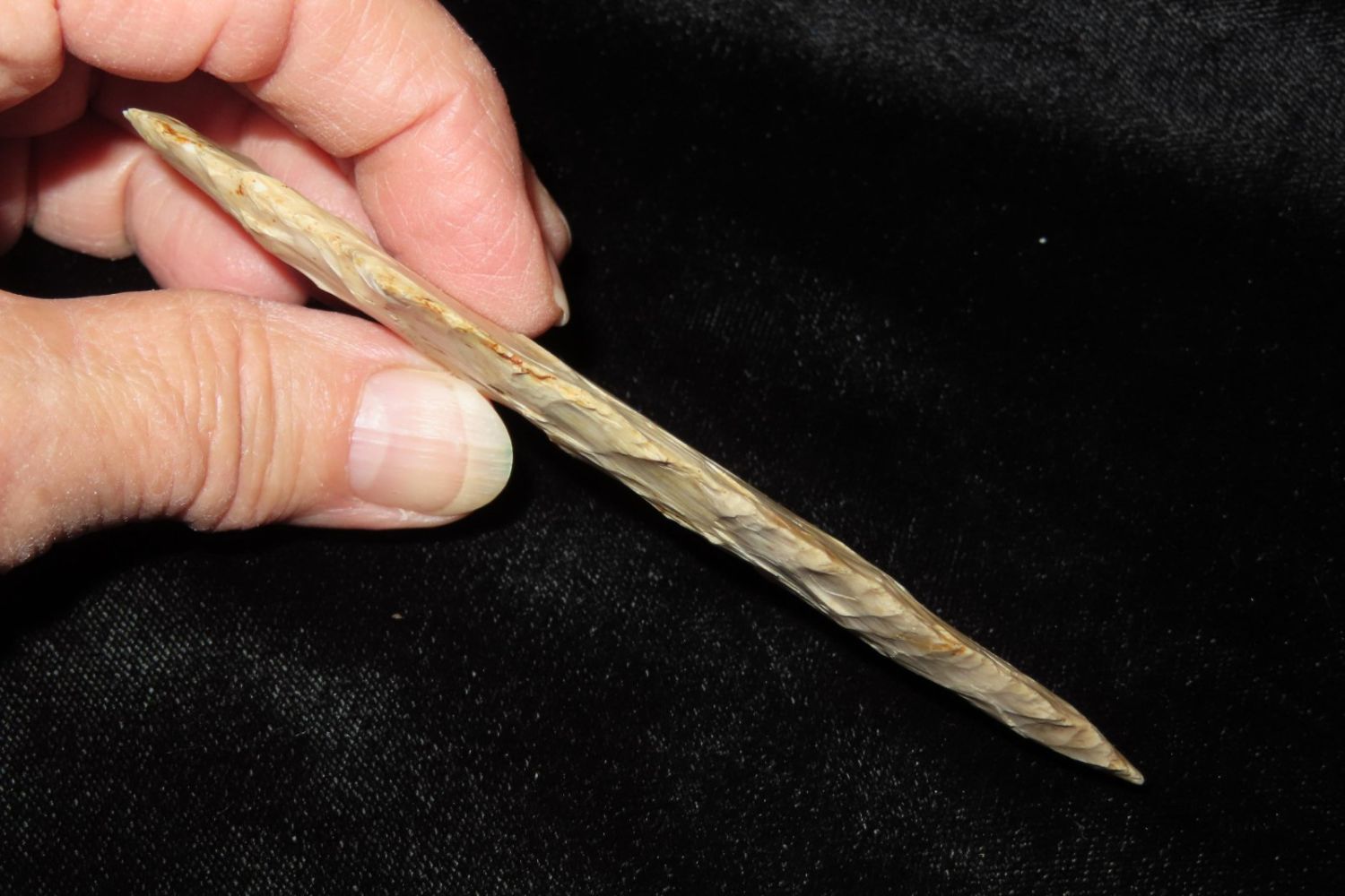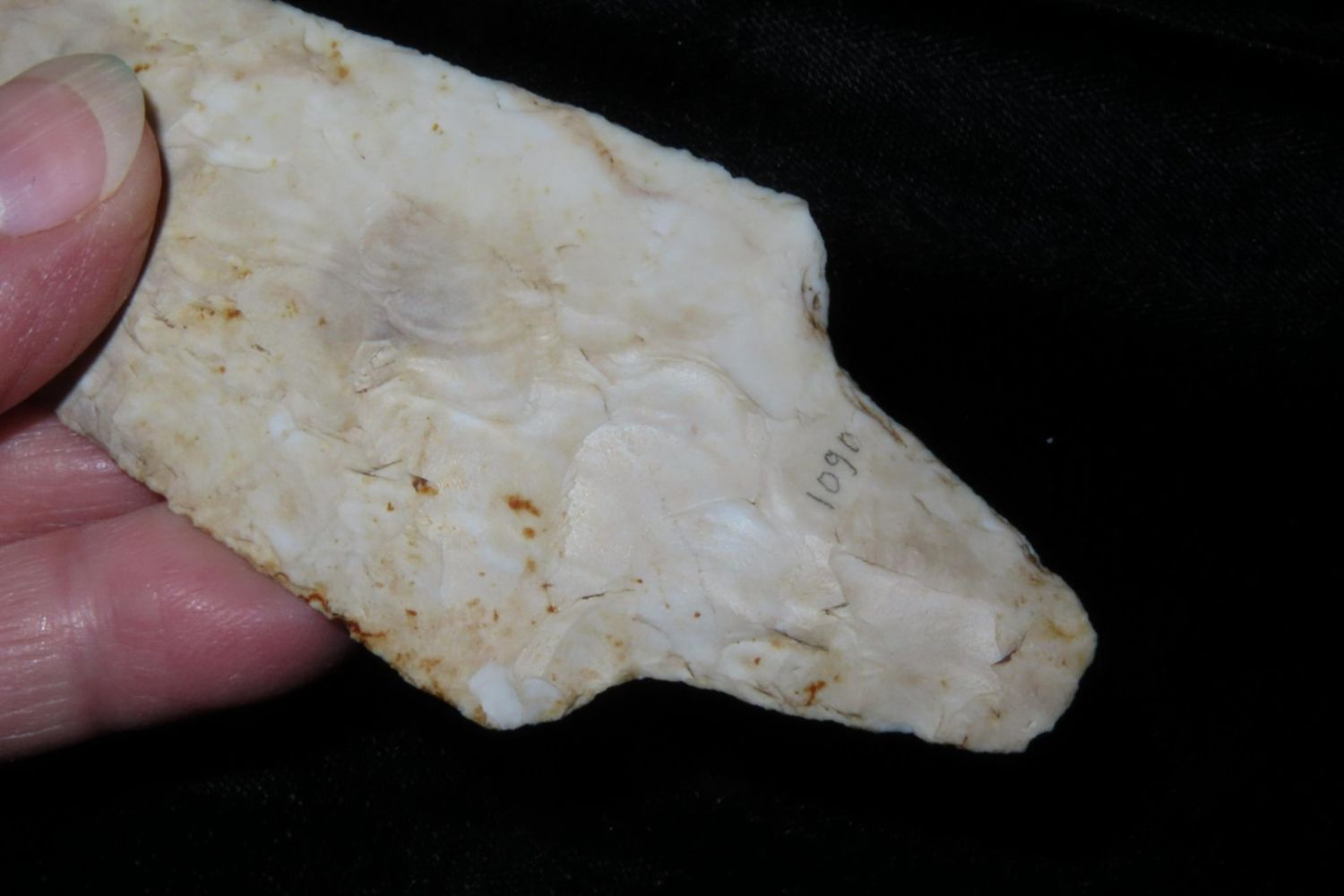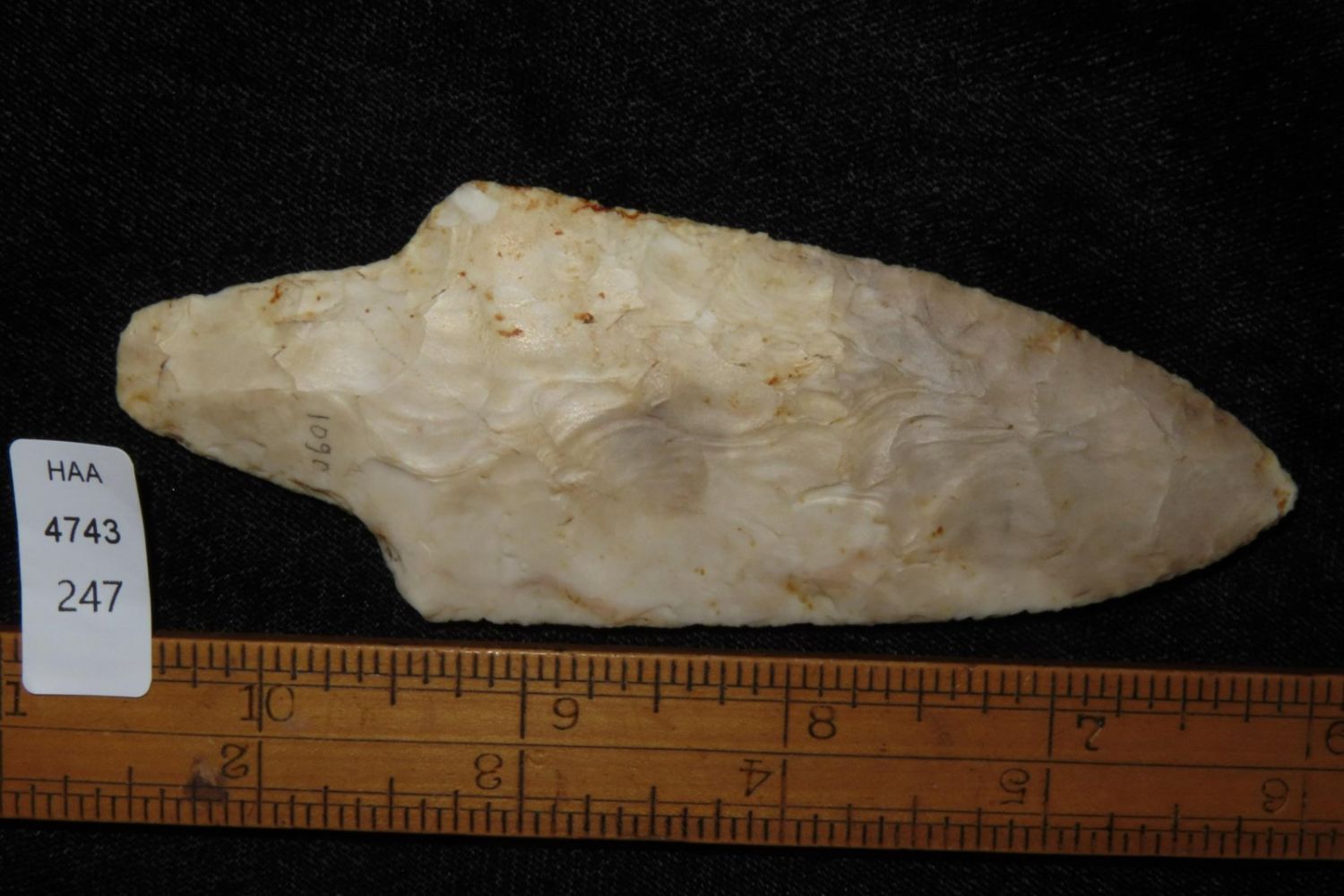 4 1/2" Dickson. 4x COA: Rogers, Perino, Meadows and Motley. Found in Franklin County, MO. From the James and Joe George Collection. Joe George was an avid collector and finder of Native American artifacts in the greater St Louis Missouri area. Joe collected his entire life. Upon his passing he turned his collection over to his son James. James was also a very avid collector. He enjoyed walking various waterways and attending artifact shows. James is looking forward to passing down his collection to the relic community for caretaking.