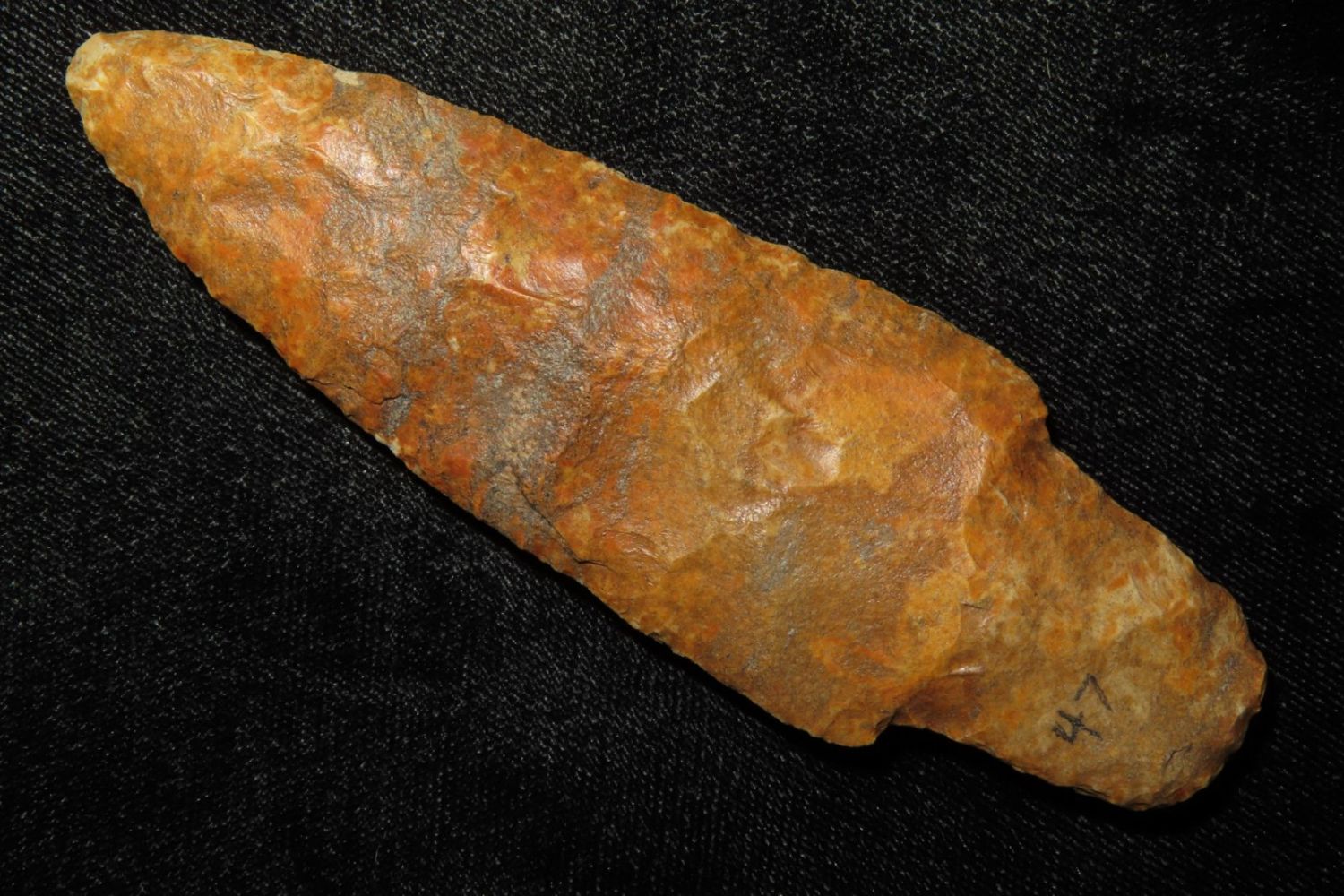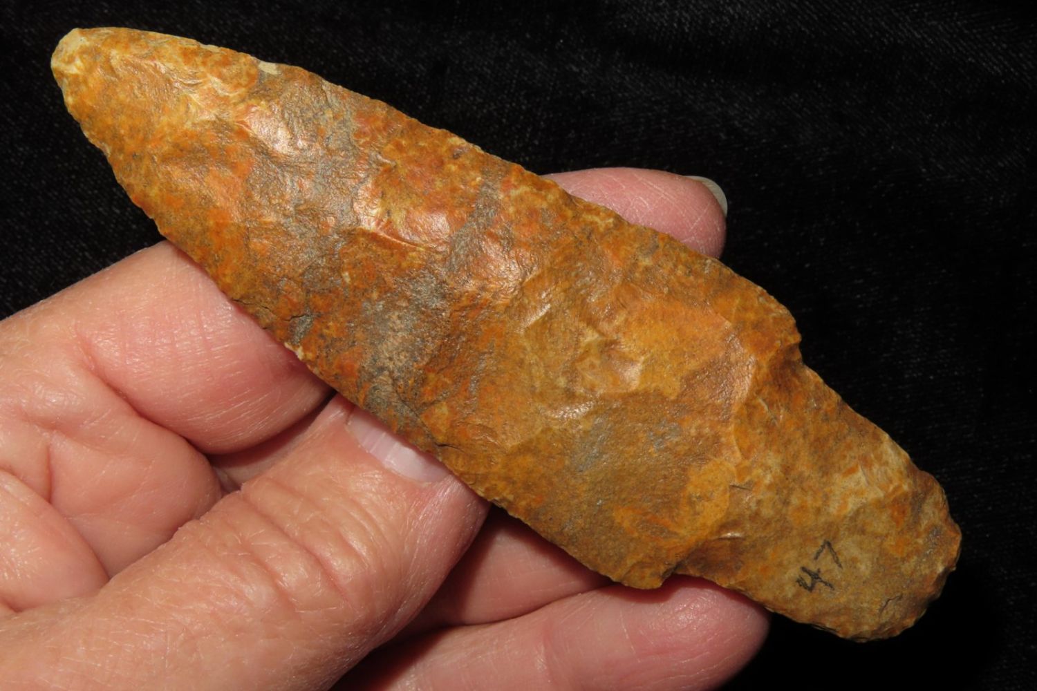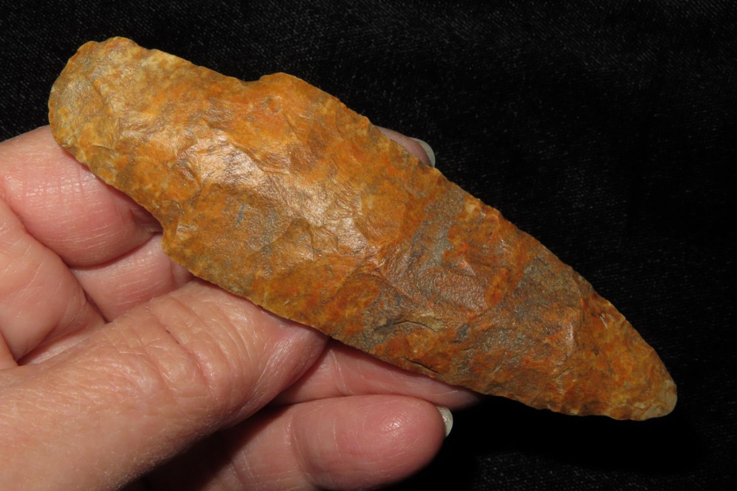 3 15/16" Adena. Rogers COA. Found by Tim Hoskins in Florrisant, MO. Ex Jim Sortor. From the James and Joe George Collection. Joe George was an avid collector and finder of Native American artifacts in the greater St Louis Missouri area. Joe collected his entire life. Upon his passing he turned his collection over to his son James. James was also a very avid collector. He enjoyed walking various waterways and attending artifact shows. James is looking forward to passing down his collection to the relic community for caretaking.