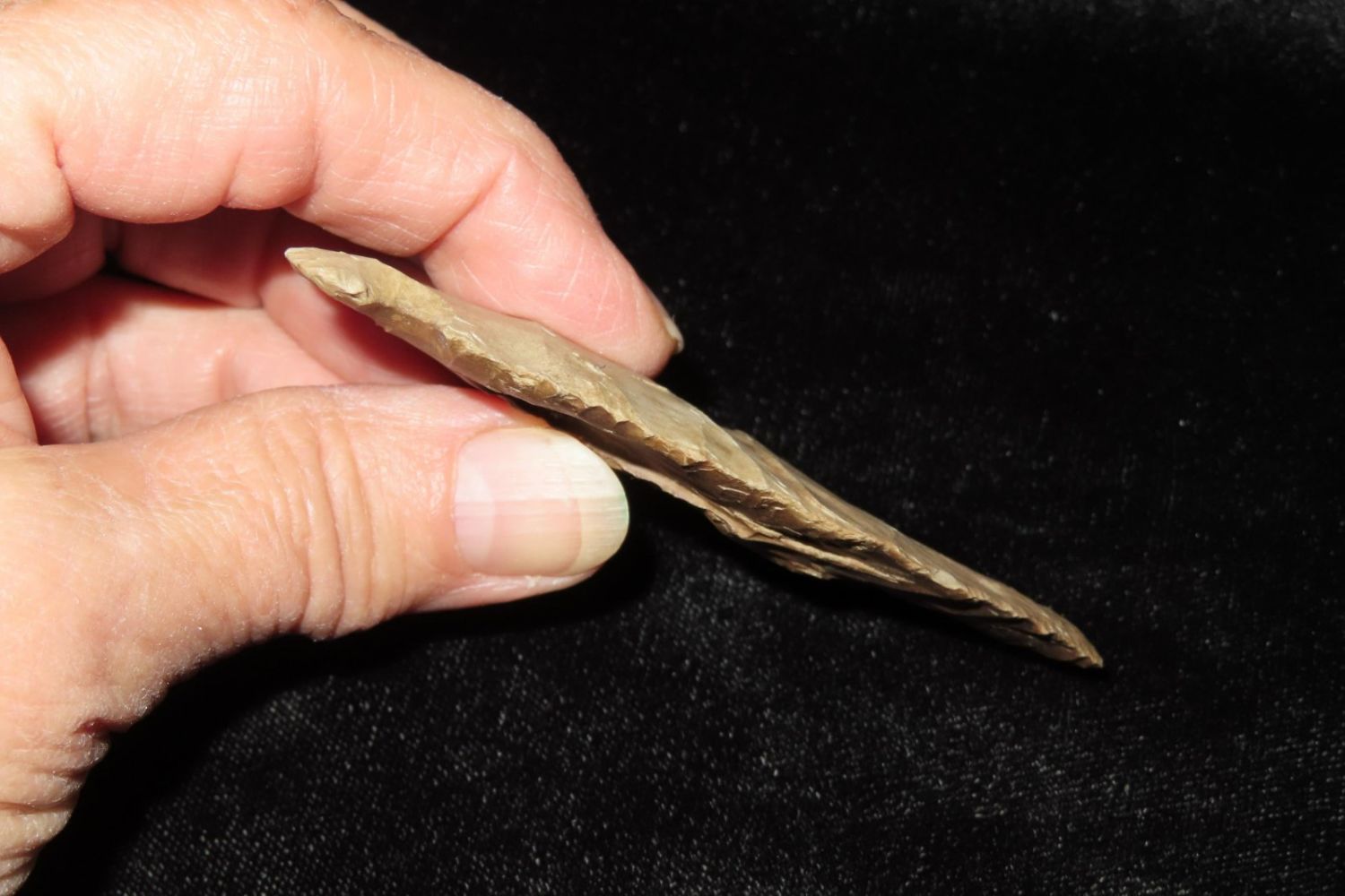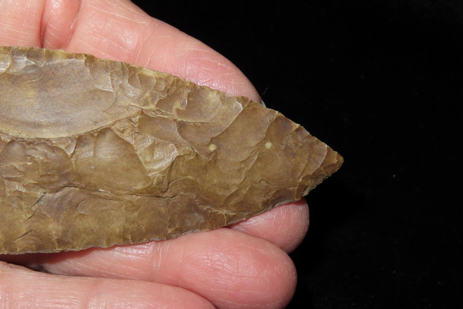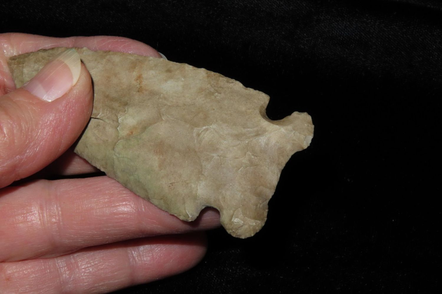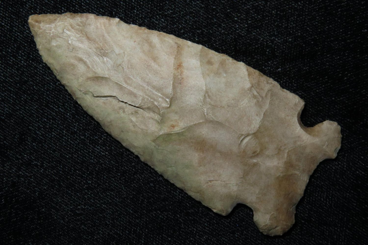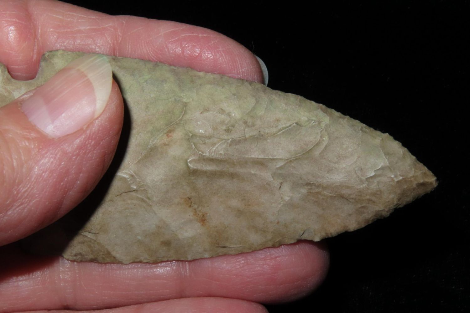 3 1/4" Hemphill. From the James and Joe George Collection. Joe George was an avid collector and finder of Native American artifacts in the greater St Louis Missouri area. Joe collected his entire life. Upon his passing he turned his collection over to his son James. James was also a very avid collector. He enjoyed walking various waterways and attending artifact shows. James is looking forward to passing down his collection to the relic community for caretaking.