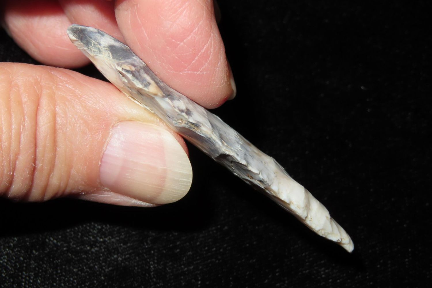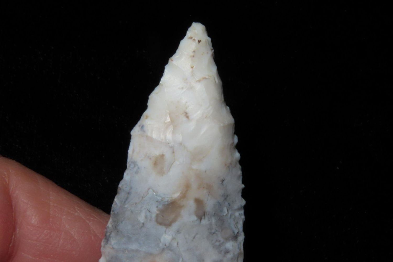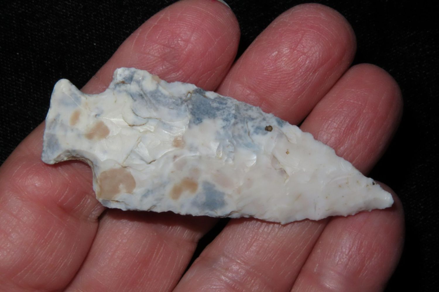 2 3/8" Tablerock/Bottleneck with wild two toned material. From the James and Joe George Collection. Joe George was an avid collector and finder of Native American artifacts in the greater St Louis Missouri area. Joe collected his entire life. Upon his passing he turned his collection over to his son James. James was also a very avid collector. He enjoyed walking various waterways and attending artifact shows. James is looking forward to passing down his collection to the relic community for caretaking.