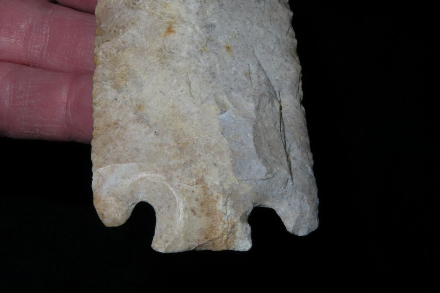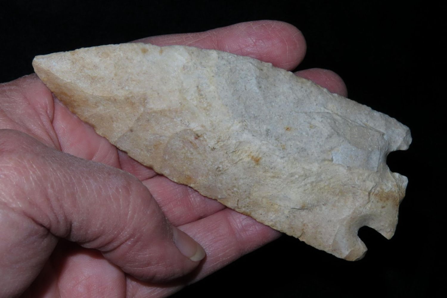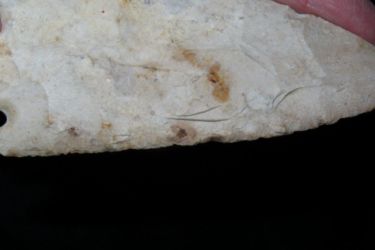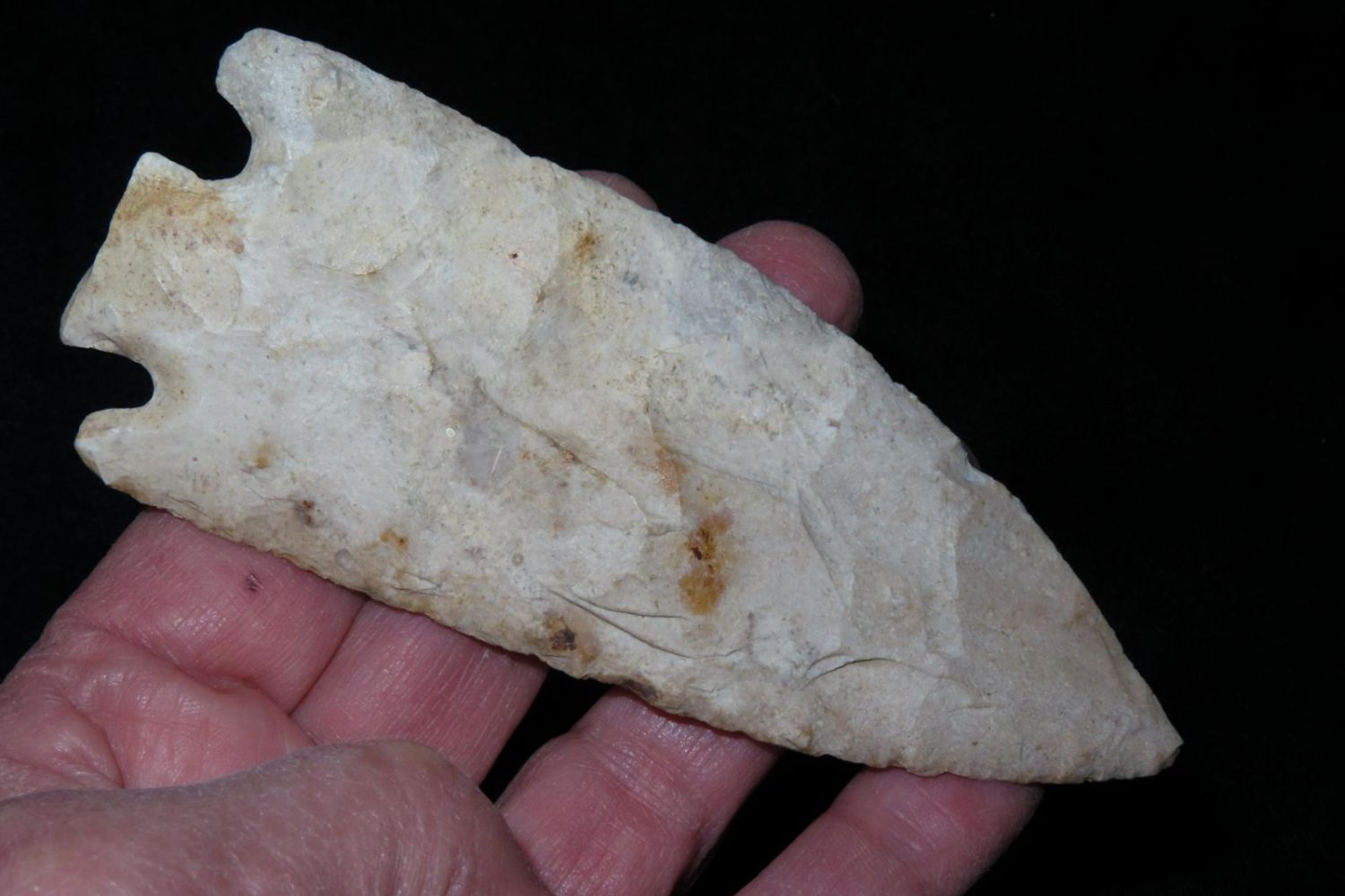 4 7/16" Smith. Motley COA. Found in St. Louis County, MO. From the James and Joe George Collection. Joe George was an avid collector and finder of Native American artifacts in the greater St Louis Missouri area. Joe collected his entire life. Upon his passing he turned his collection over to his son James. James was also a very avid collector. He enjoyed walking various waterways and attending artifact shows. James is looking forward to passing down his collection to the relic community for caretaking.