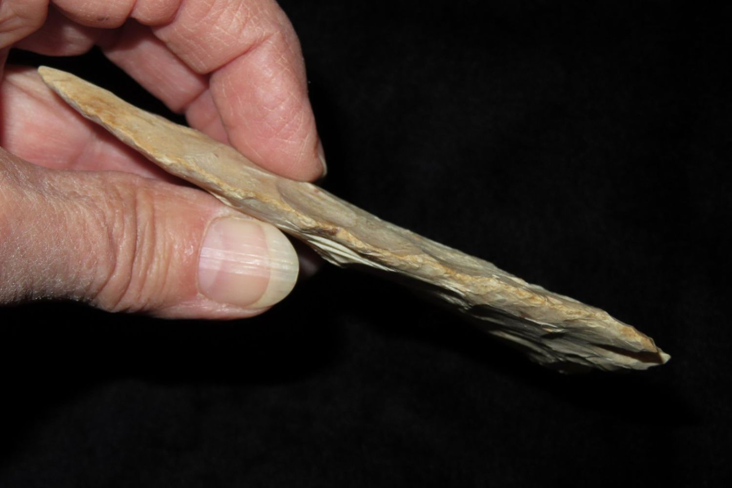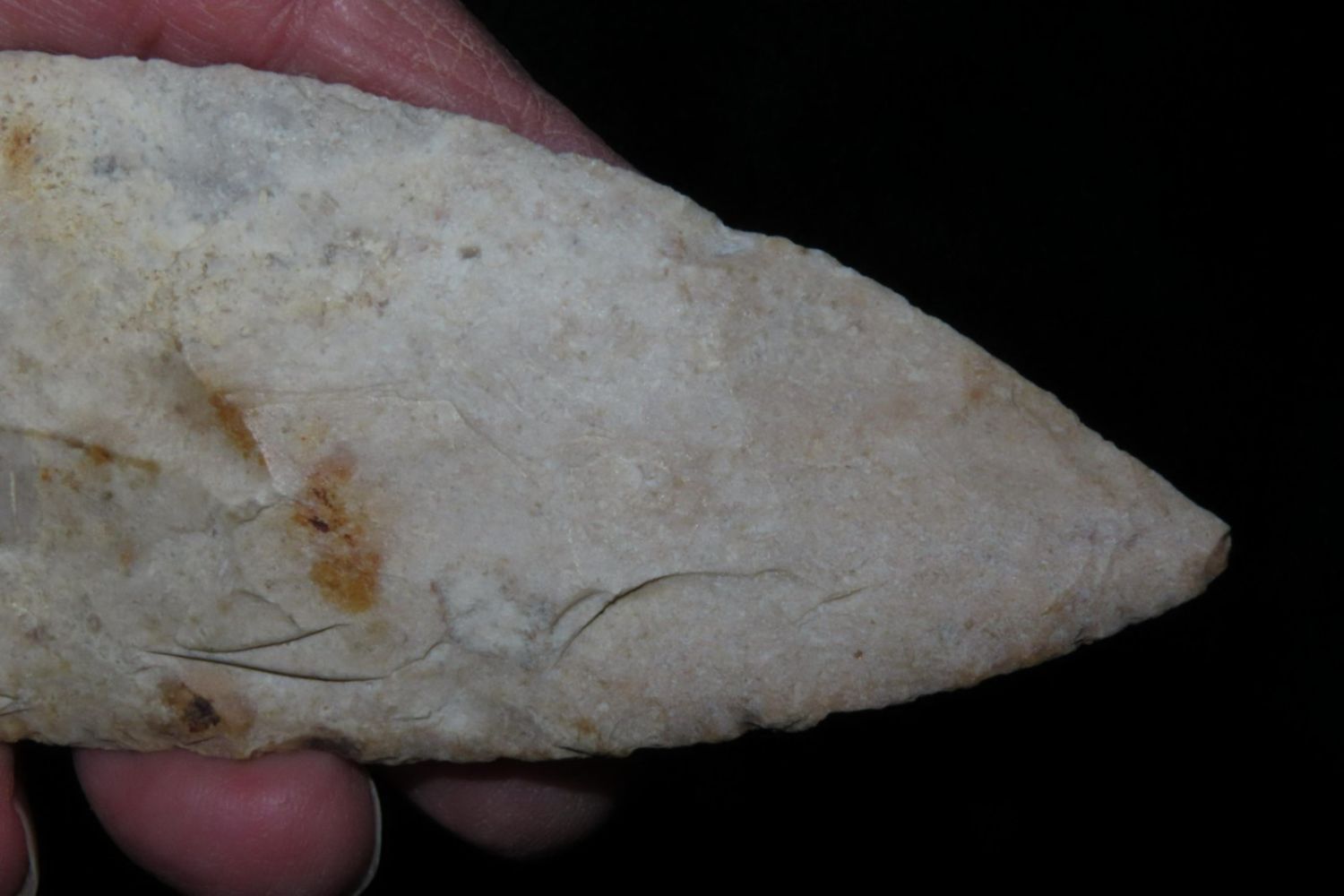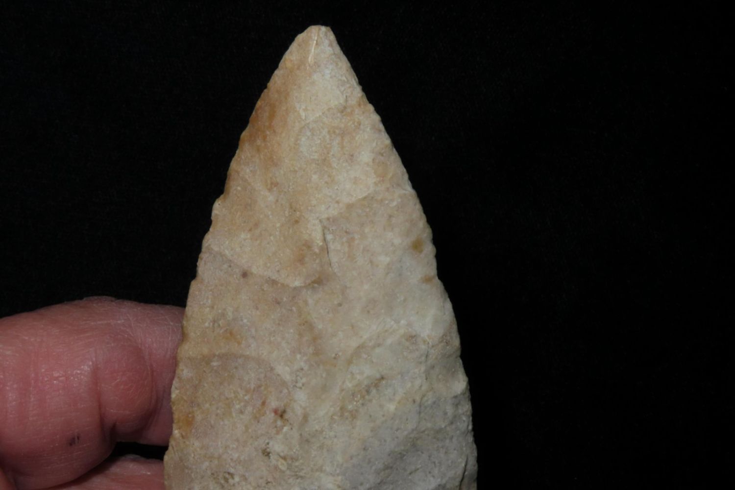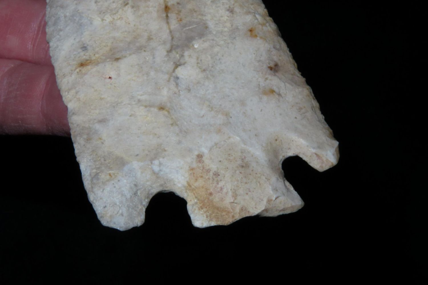 4 7/16" Smith. Motley COA. Found in St. Louis County, MO. From the James and Joe George Collection. Joe George was an avid collector and finder of Native American artifacts in the greater St Louis Missouri area. Joe collected his entire life. Upon his passing he turned his collection over to his son James. James was also a very avid collector. He enjoyed walking various waterways and attending artifact shows. James is looking forward to passing down his collection to the relic community for caretaking.