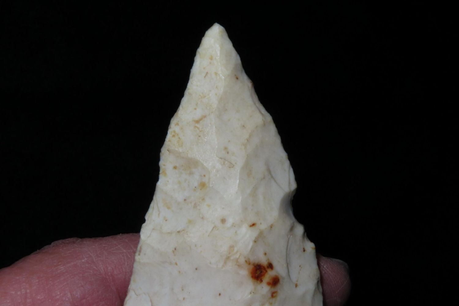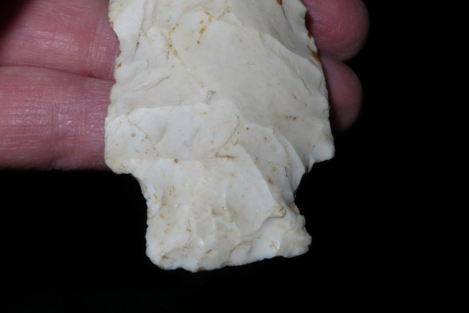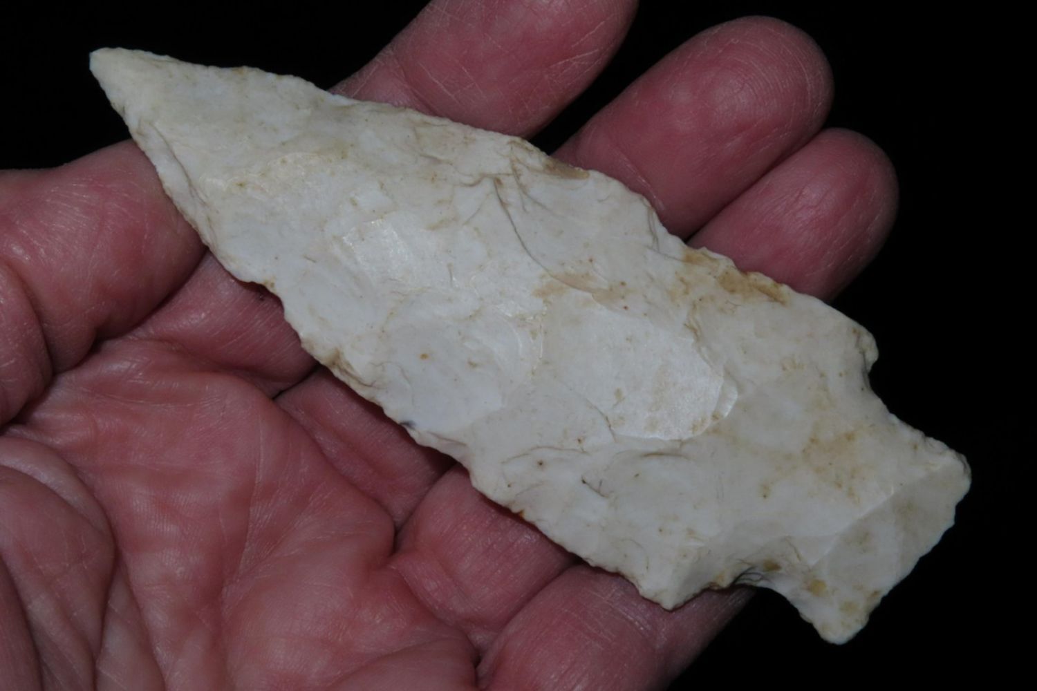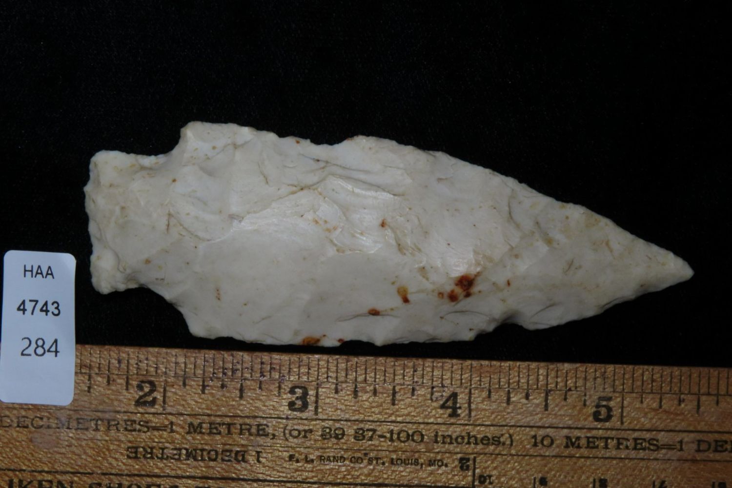 3 7/8" Etley. From the James and Joe George Collection. Joe George was an avid collector and finder of Native American artifacts in the greater St Louis Missouri area. Joe collected his entire life. Upon his passing he turned his collection over to his son James. James was also a very avid collector. He enjoyed walking various waterways and attending artifact shows. James is looking forward to passing down his collection to the relic community for caretaking.