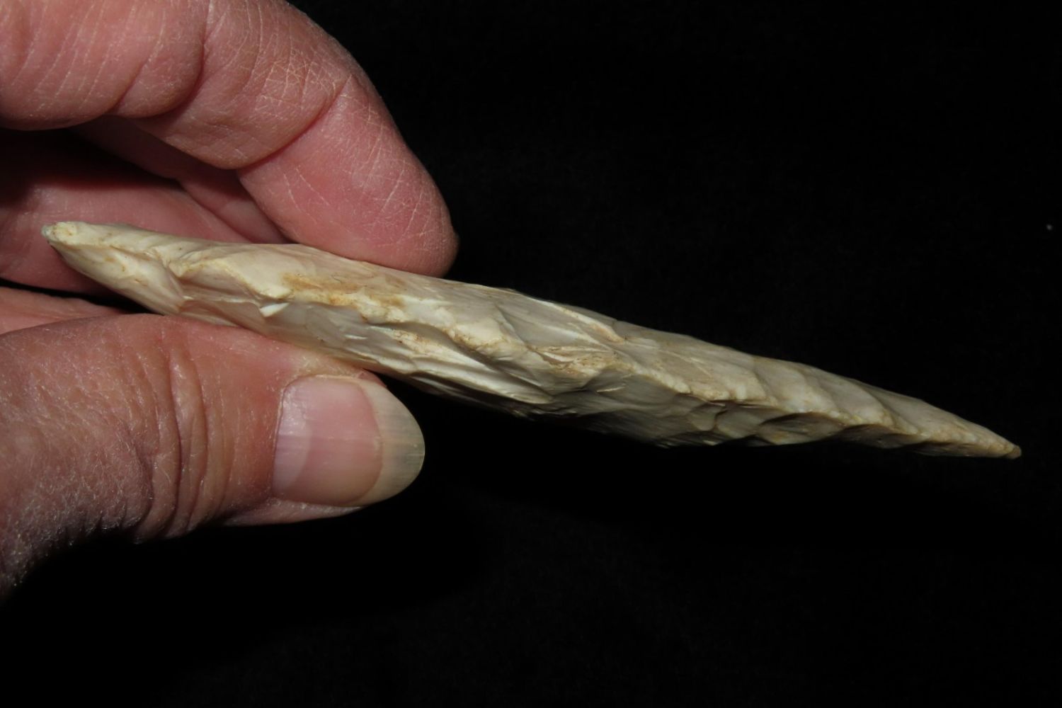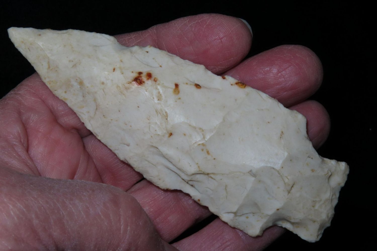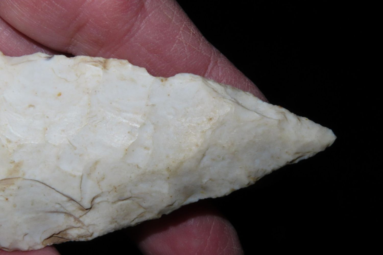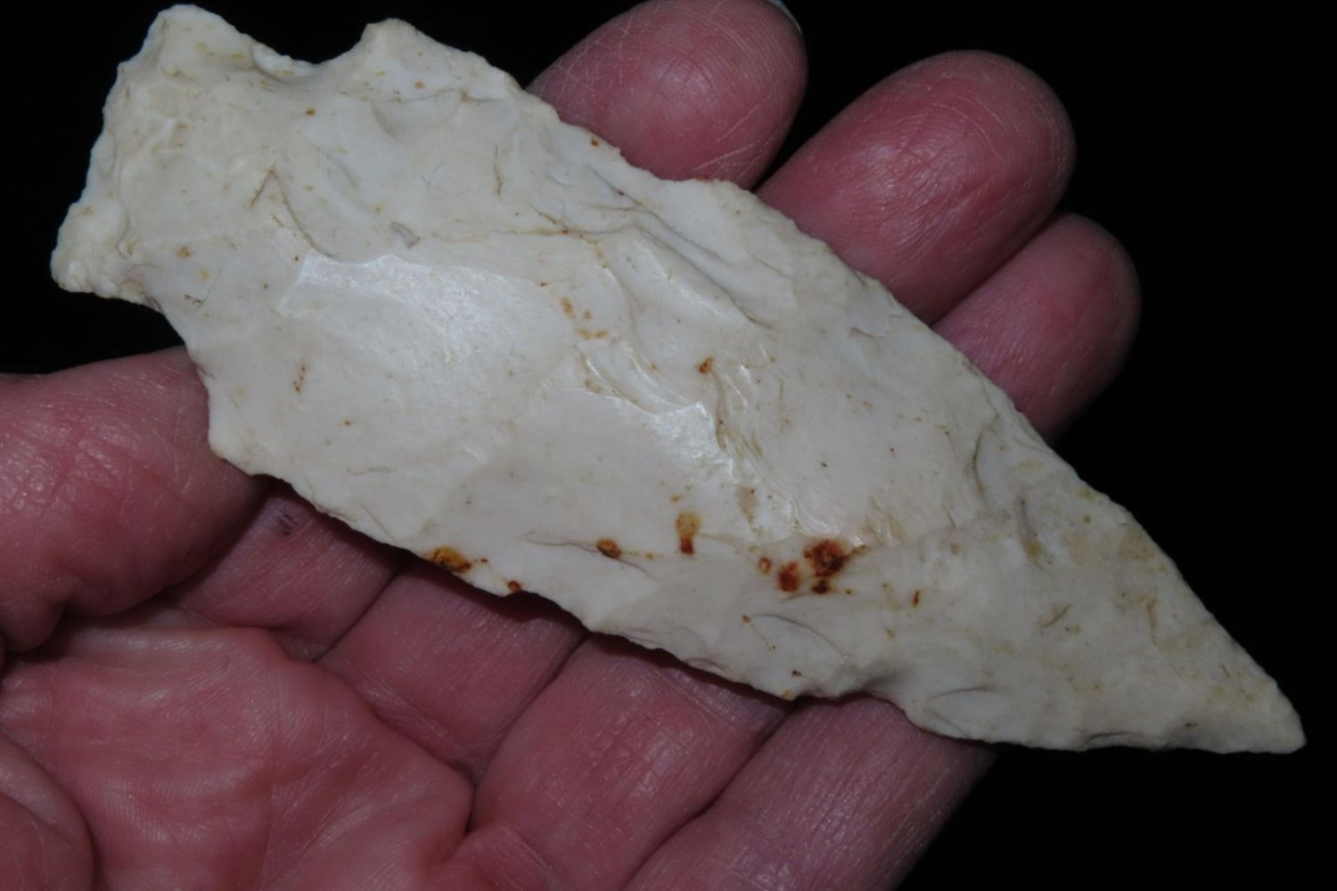 3 7/8" Etley. From the James and Joe George Collection. Joe George was an avid collector and finder of Native American artifacts in the greater St Louis Missouri area. Joe collected his entire life. Upon his passing he turned his collection over to his son James. James was also a very avid collector. He enjoyed walking various waterways and attending artifact shows. James is looking forward to passing down his collection to the relic community for caretaking.
