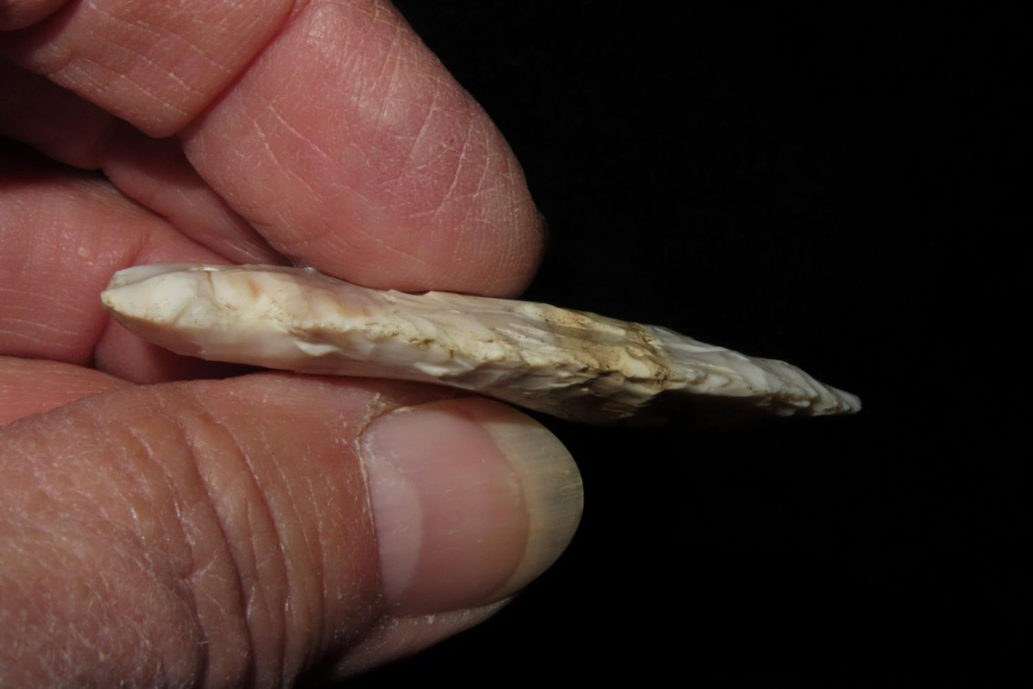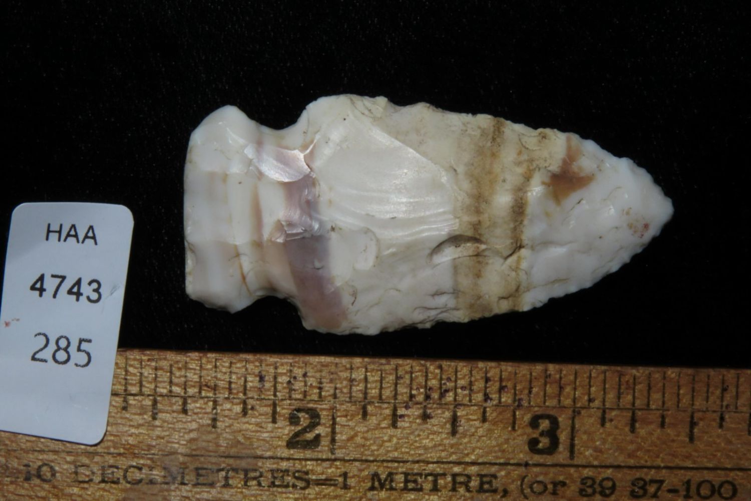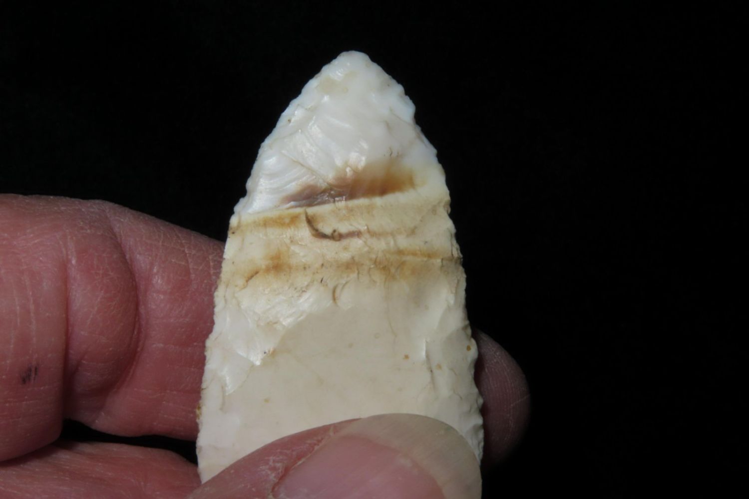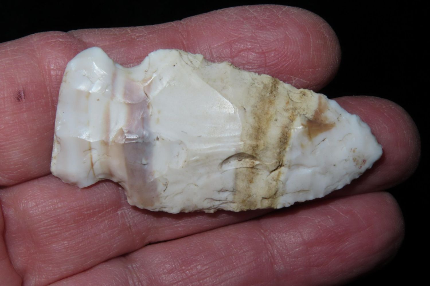2" Robinson. From the James and Joe George Collection. Joe George was an avid collector and finder of Native American artifacts in the greater St Louis Missouri area. Joe collected his entire life. Upon his passing he turned his collection over to his son James. James was also a very avid collector. He enjoyed walking various waterways and attending artifact shows. James is looking forward to passing down his collection to the relic community for caretaking.