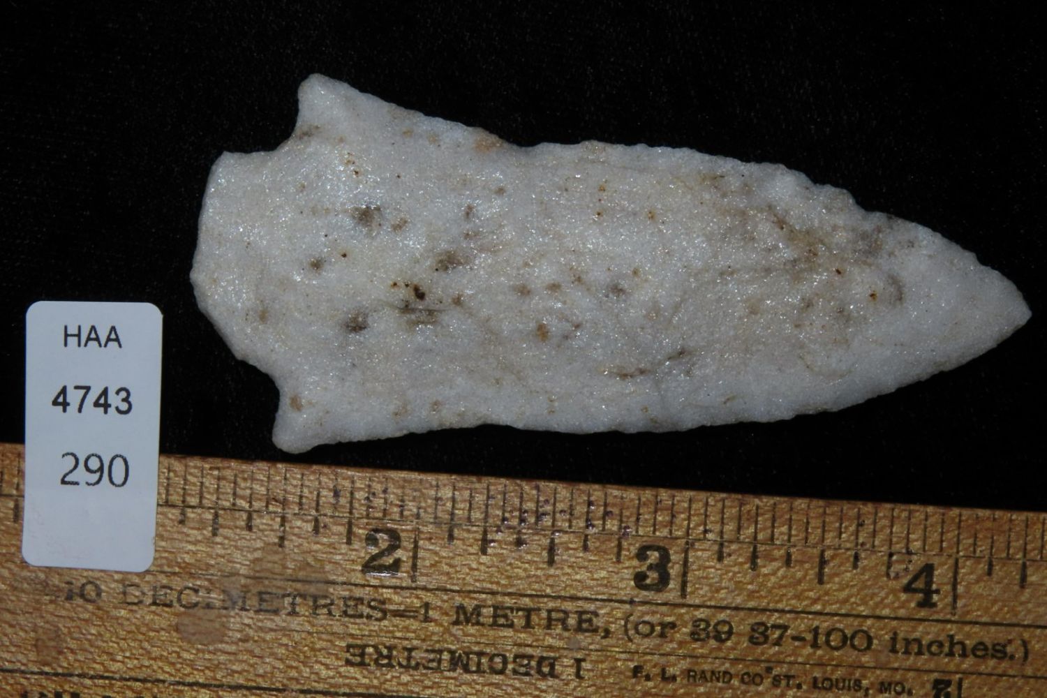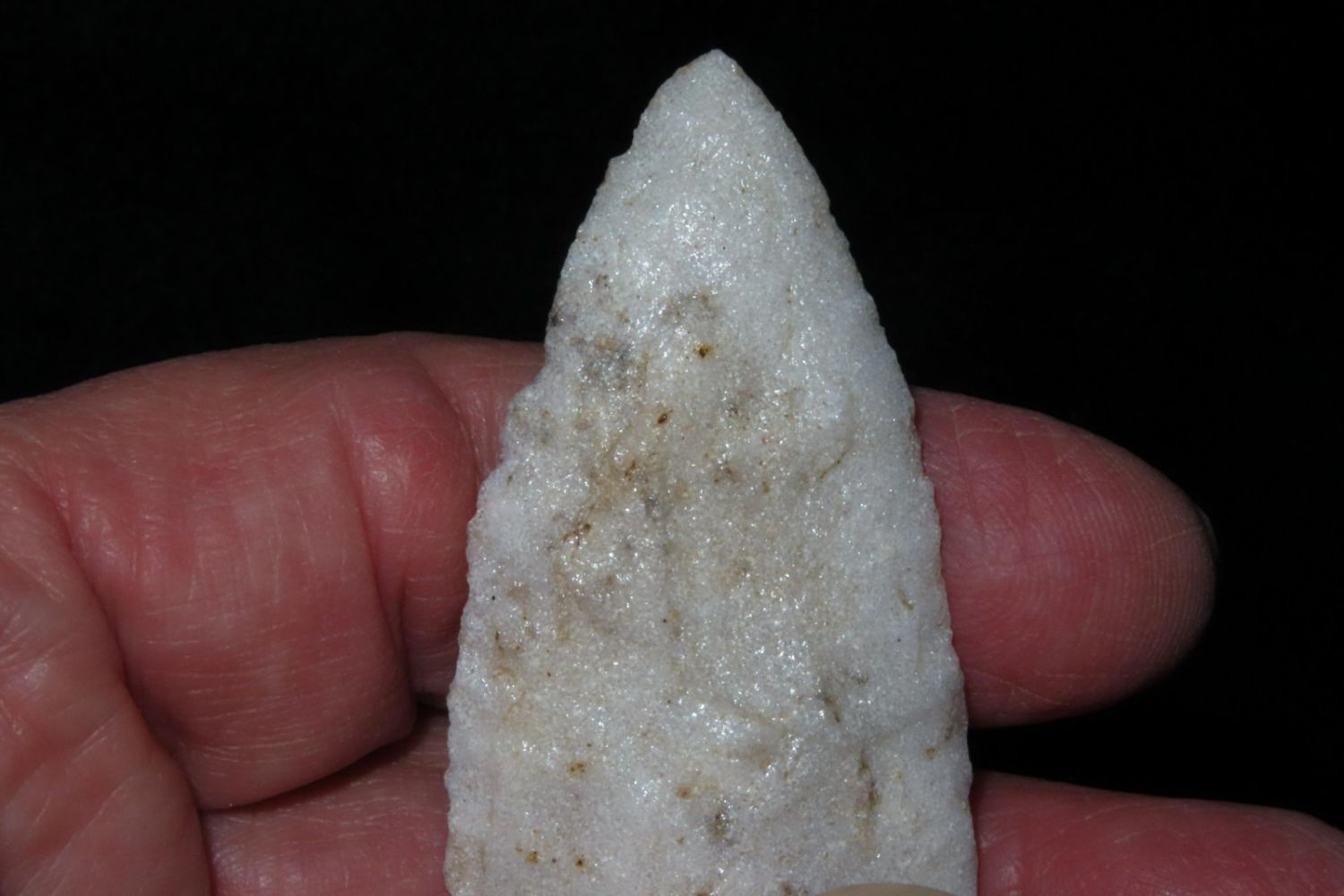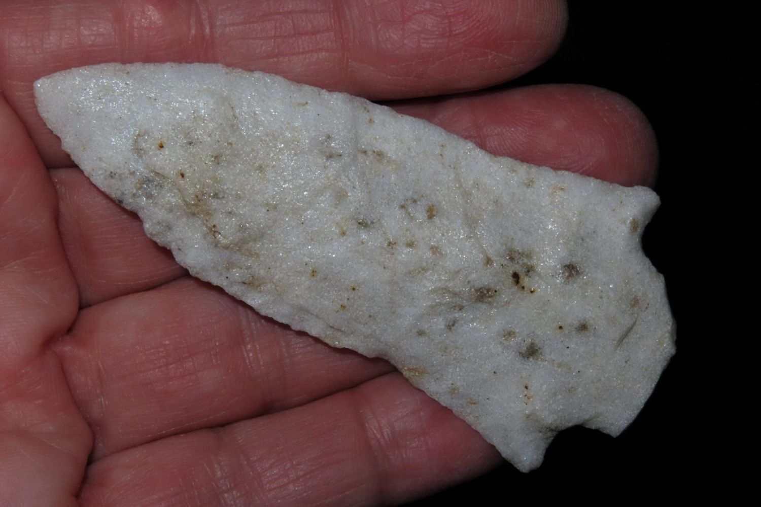 3" Etley. From the James and Joe George Collection. Joe George was an avid collector and finder of Native American artifacts in the greater St Louis Missouri area. Joe collected his entire life. Upon his passing he turned his collection over to his son James. James was also a very avid collector. He enjoyed walking various waterways and attending artifact shows. James is looking forward to passing down his collection to the relic community for caretaking.