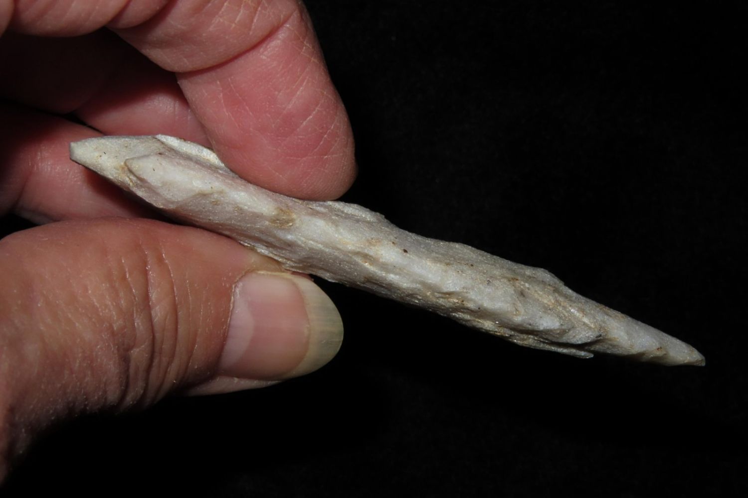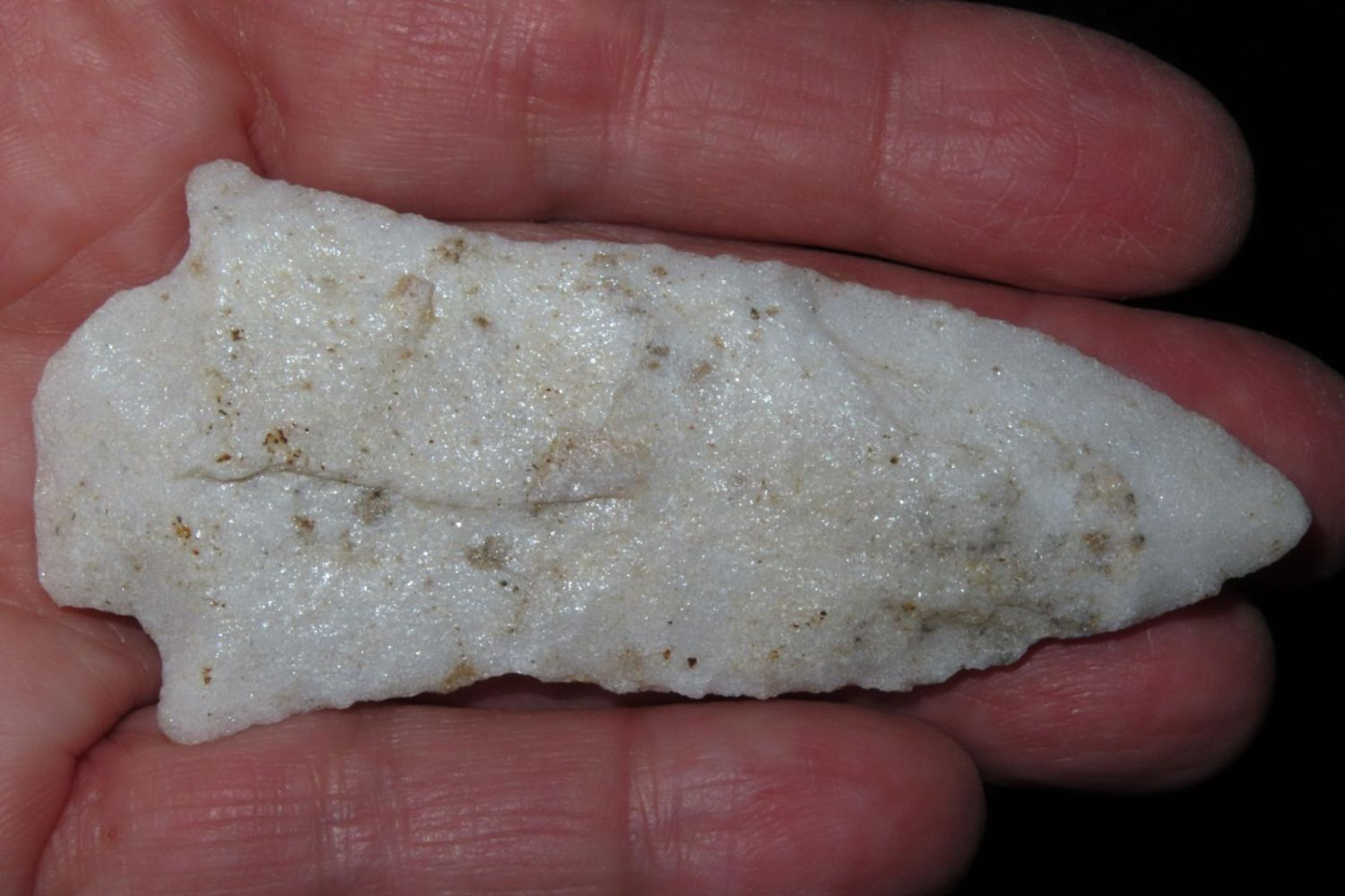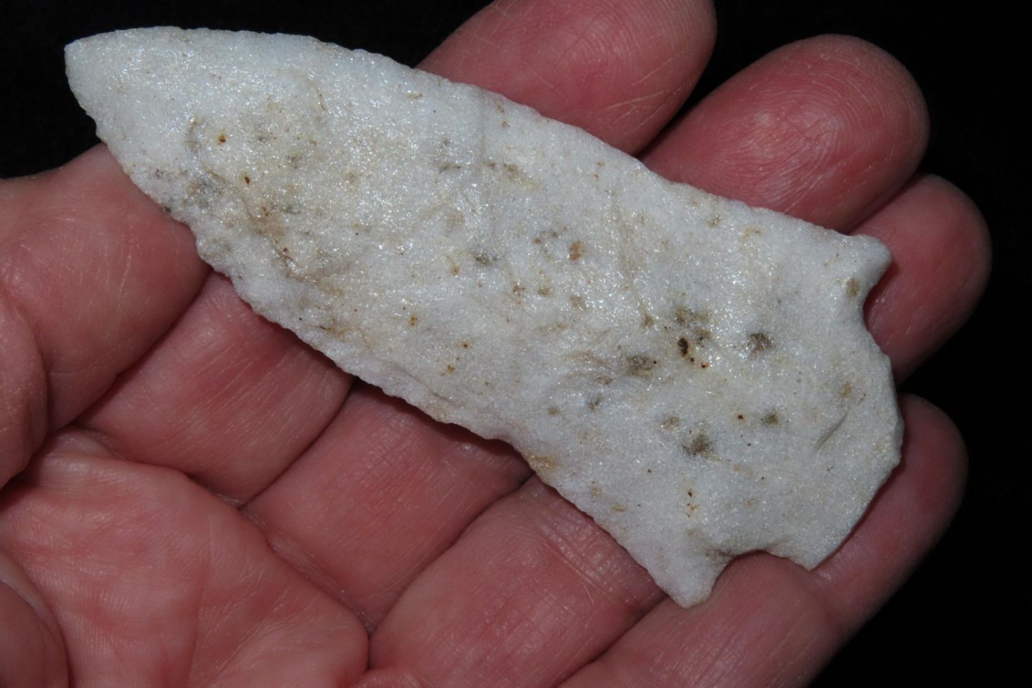 3" Etley. From the James and Joe George Collection. Joe George was an avid collector and finder of Native American artifacts in the greater St Louis Missouri area. Joe collected his entire life. Upon his passing he turned his collection over to his son James. James was also a very avid collector. He enjoyed walking various waterways and attending artifact shows. James is looking forward to passing down his collection to the relic community for caretaking.
