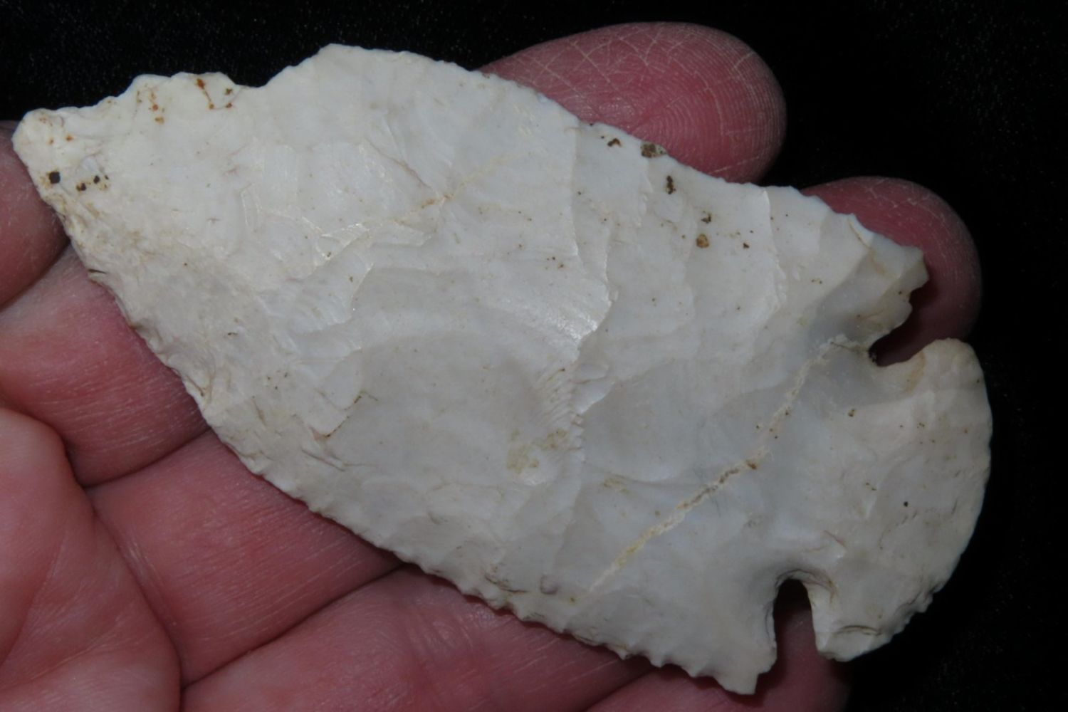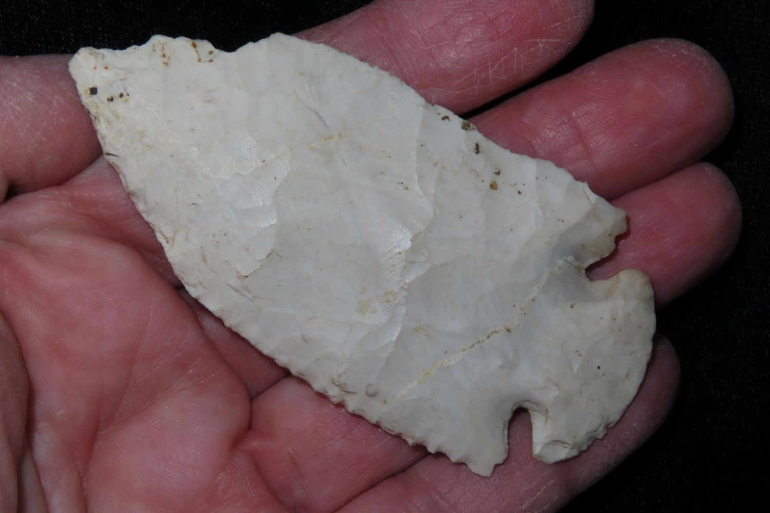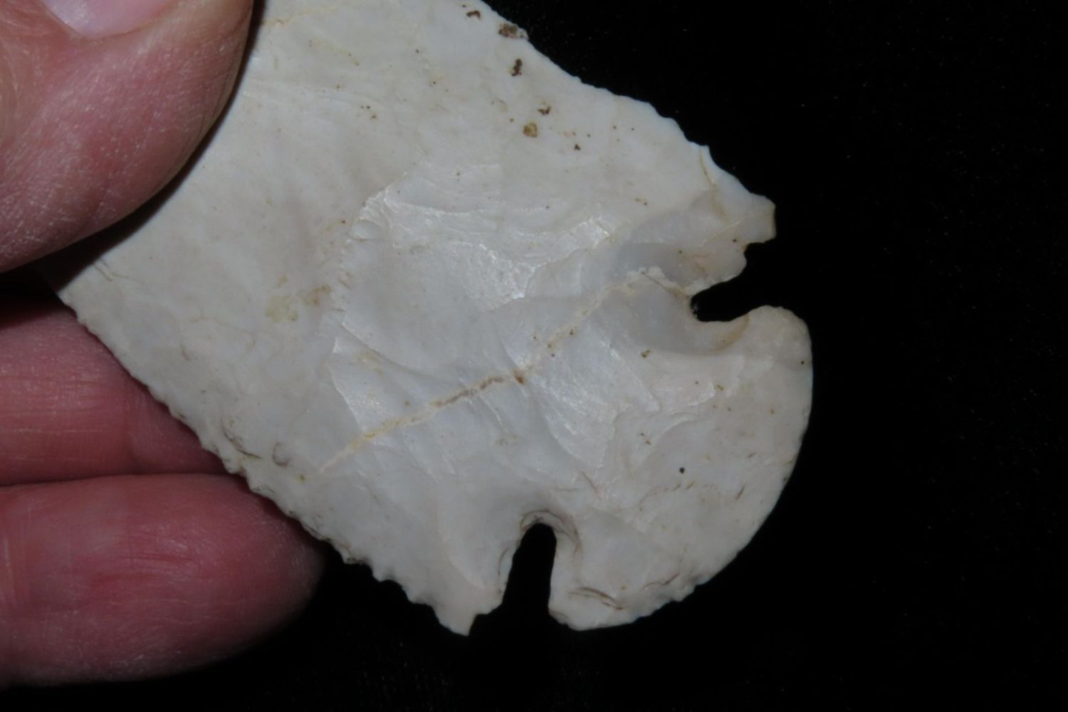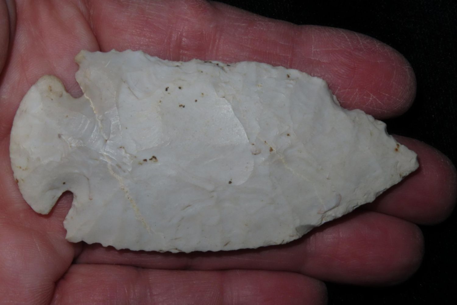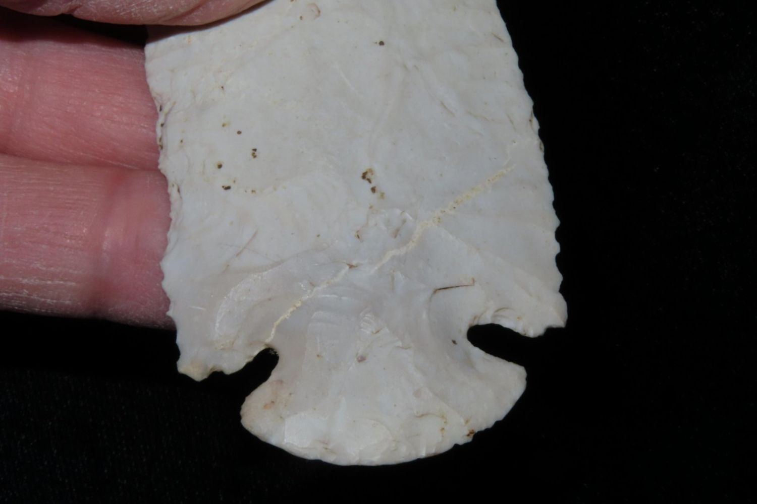 3" Dovetail. From the James and Joe George Collection. Joe George was an avid collector and finder of Native American artifacts in the greater St Louis Missouri area. Joe collected his entire life. Upon his passing he turned his collection over to his son James. James was also a very avid collector. He enjoyed walking various waterways and attending artifact shows. James is looking forward to passing down his collection to the relic community for caretaking.
