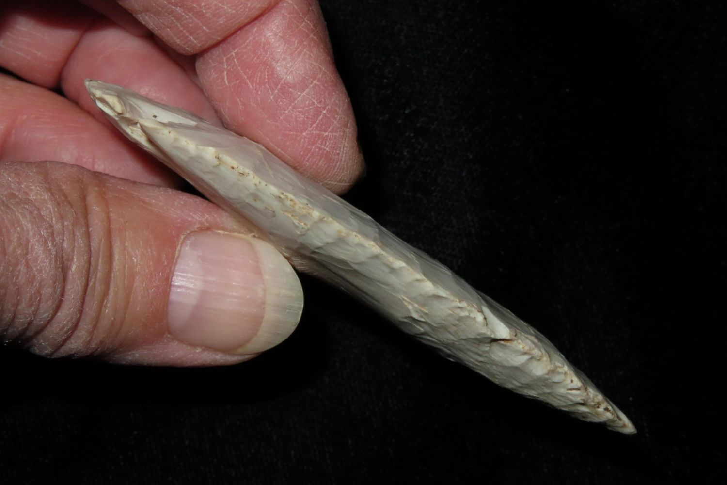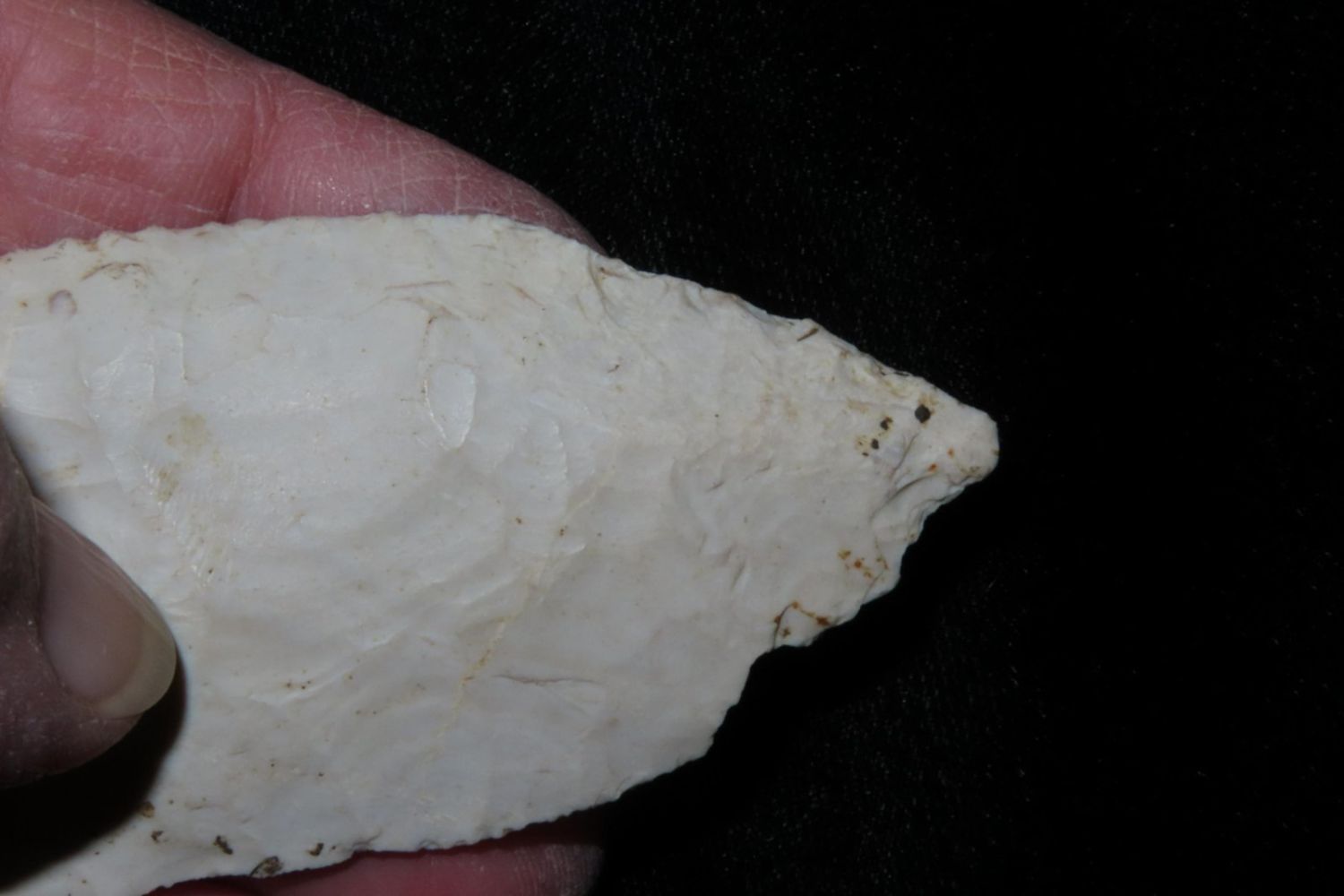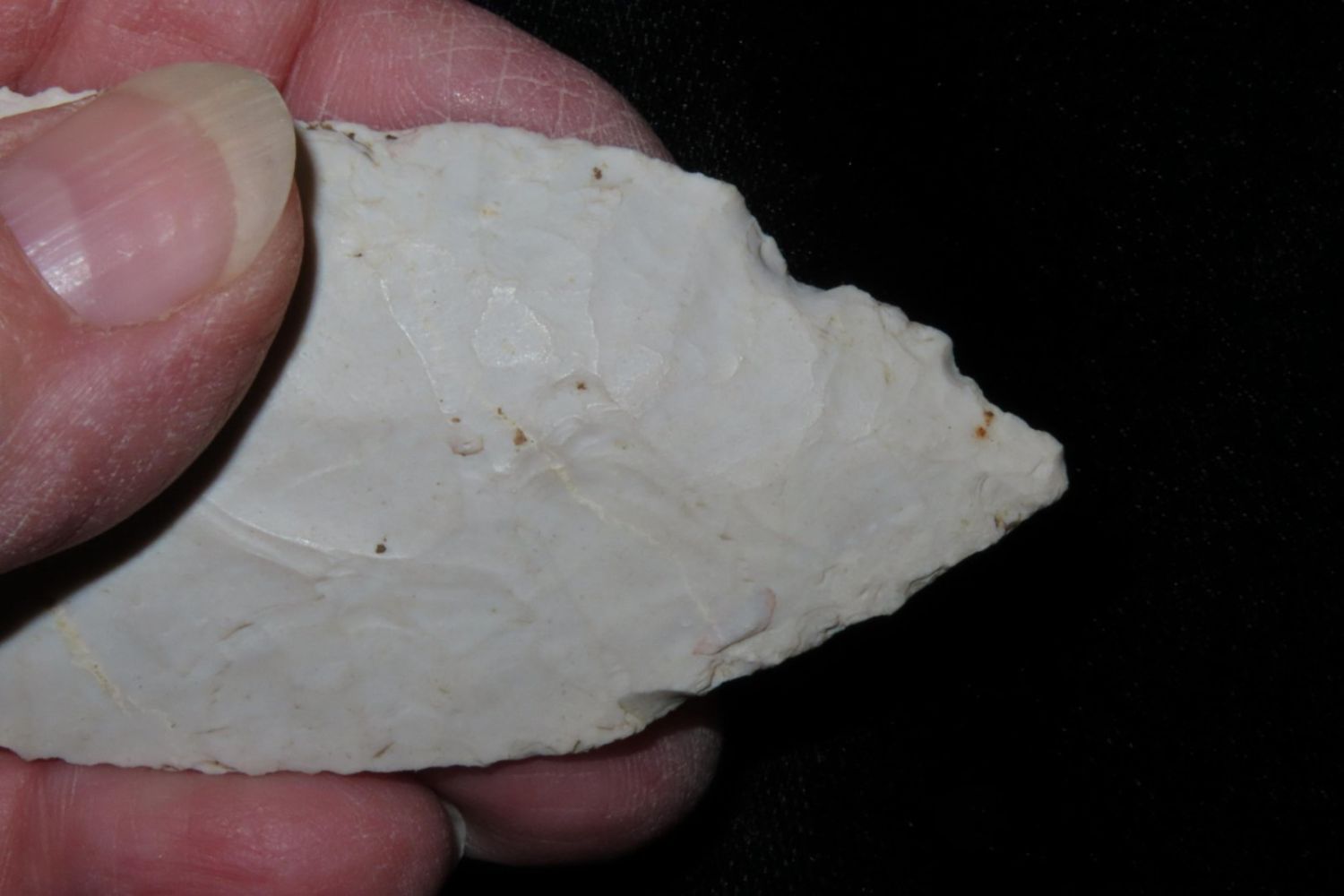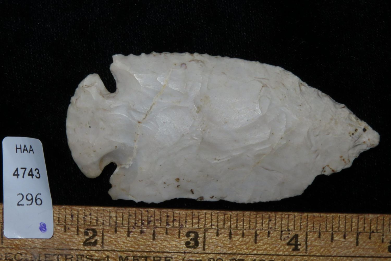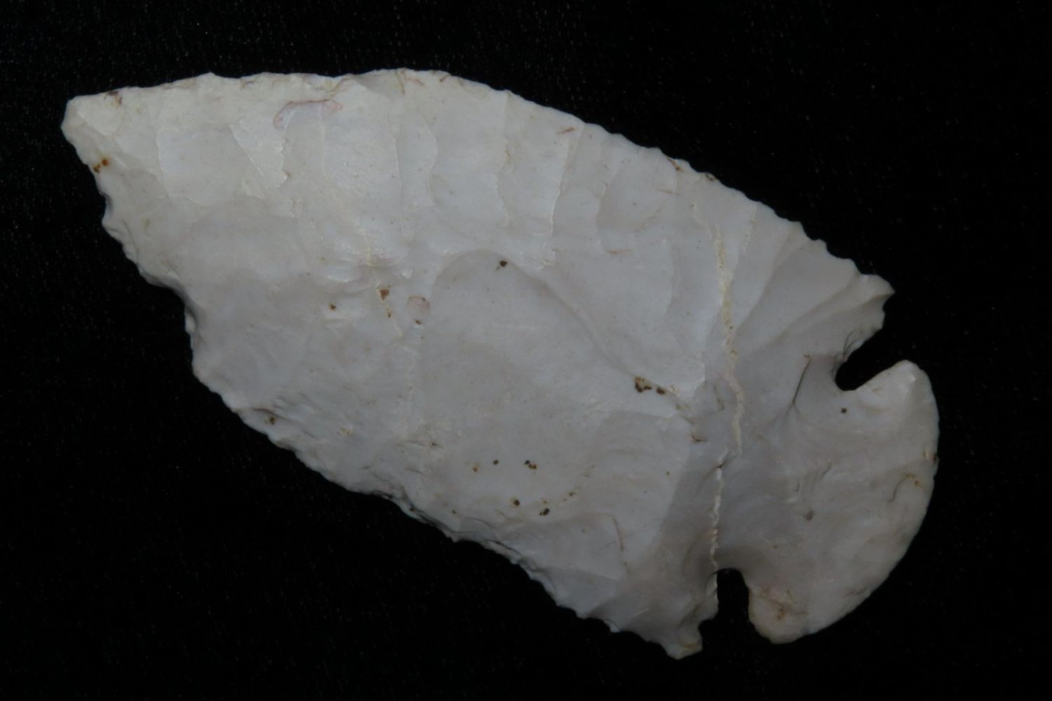 3" Dovetail. From the James and Joe George Collection. Joe George was an avid collector and finder of Native American artifacts in the greater St Louis Missouri area. Joe collected his entire life. Upon his passing he turned his collection over to his son James. James was also a very avid collector. He enjoyed walking various waterways and attending artifact shows. James is looking forward to passing down his collection to the relic community for caretaking.