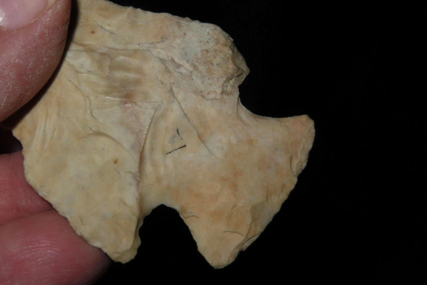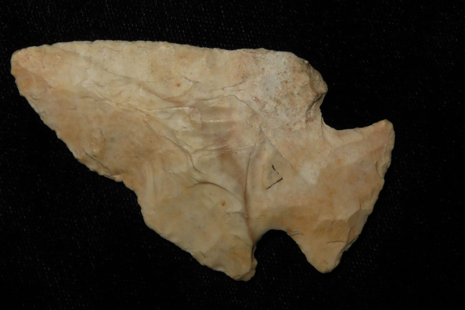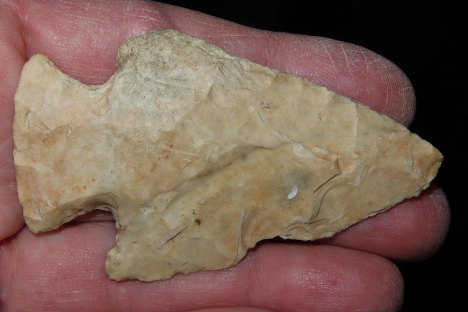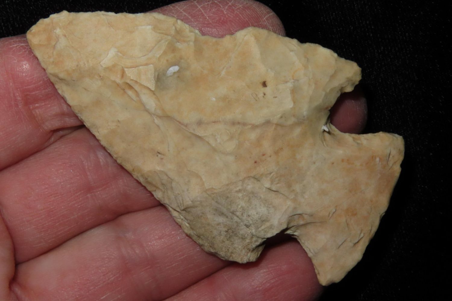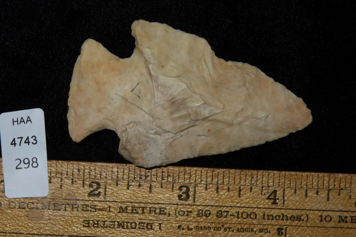 2 3/4" Snyders. From the James and Joe George Collection. Joe George was an avid collector and finder of Native American artifacts in the greater St Louis Missouri area. Joe collected his entire life. Upon his passing he turned his collection over to his son James. James was also a very avid collector. He enjoyed walking various waterways and attending artifact shows. James is looking forward to passing down his collection to the relic community for caretaking.