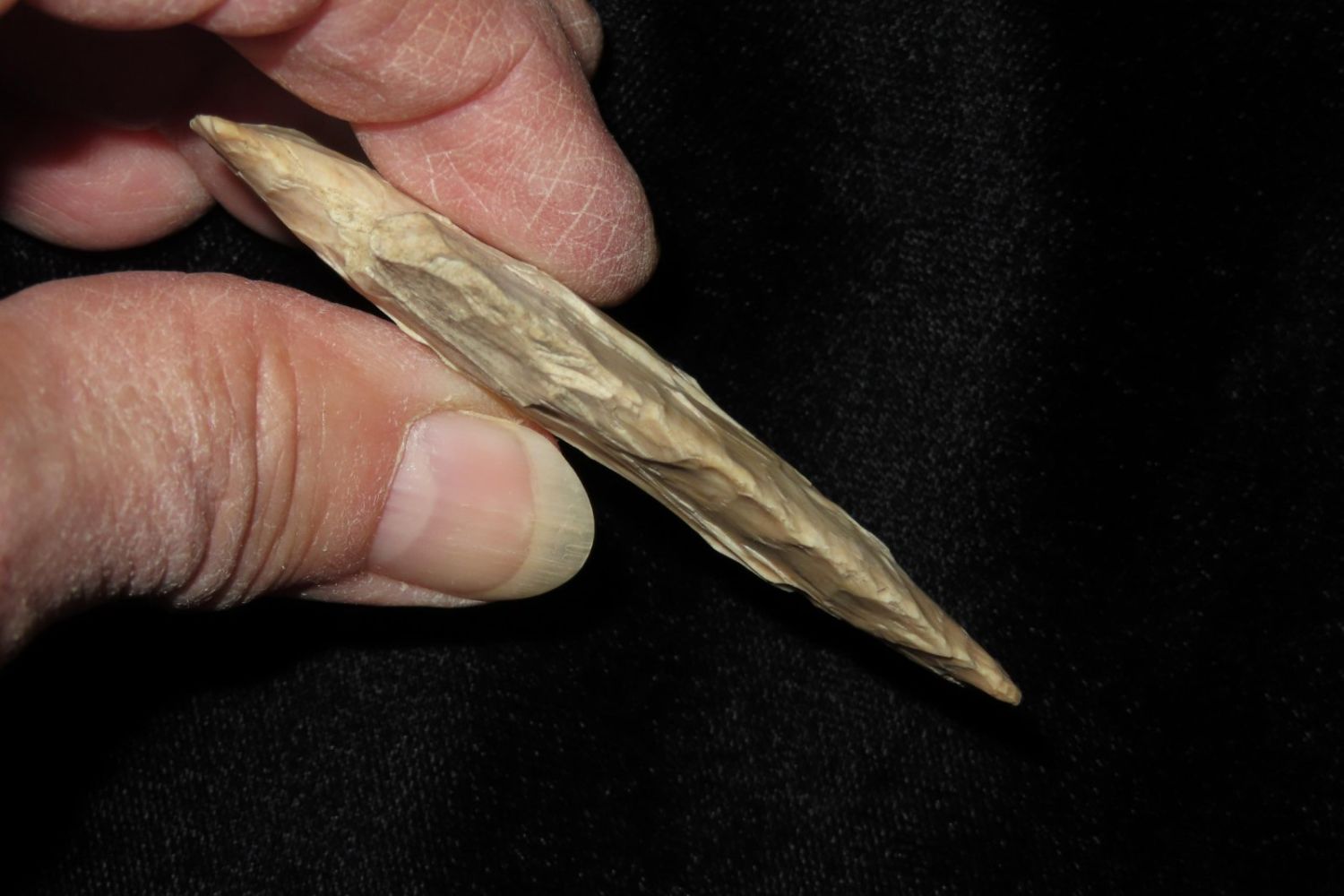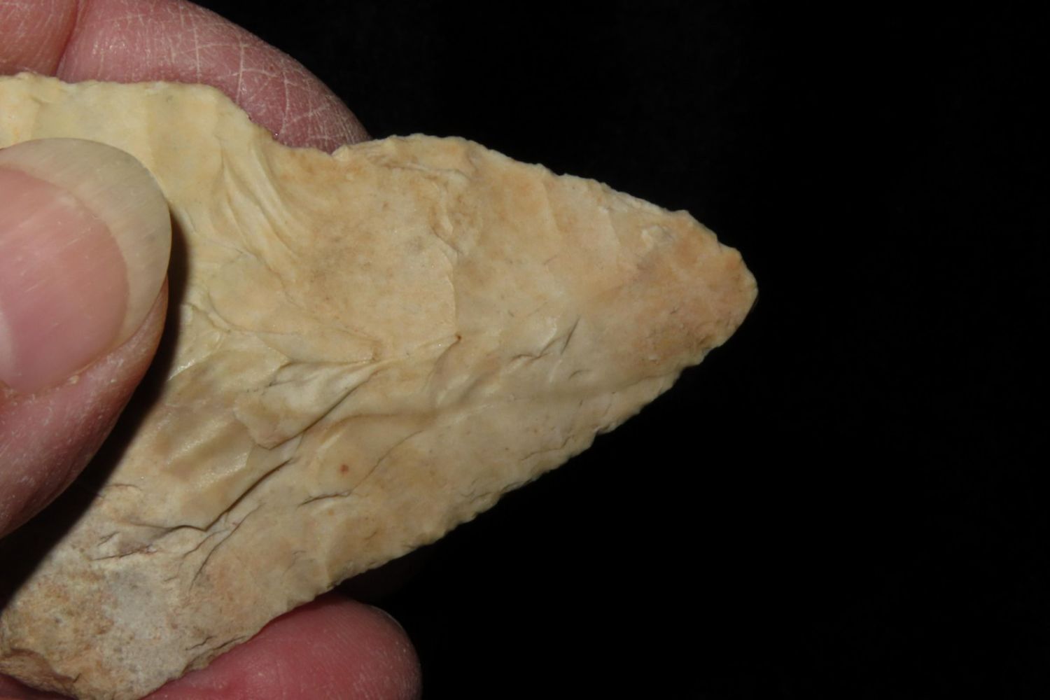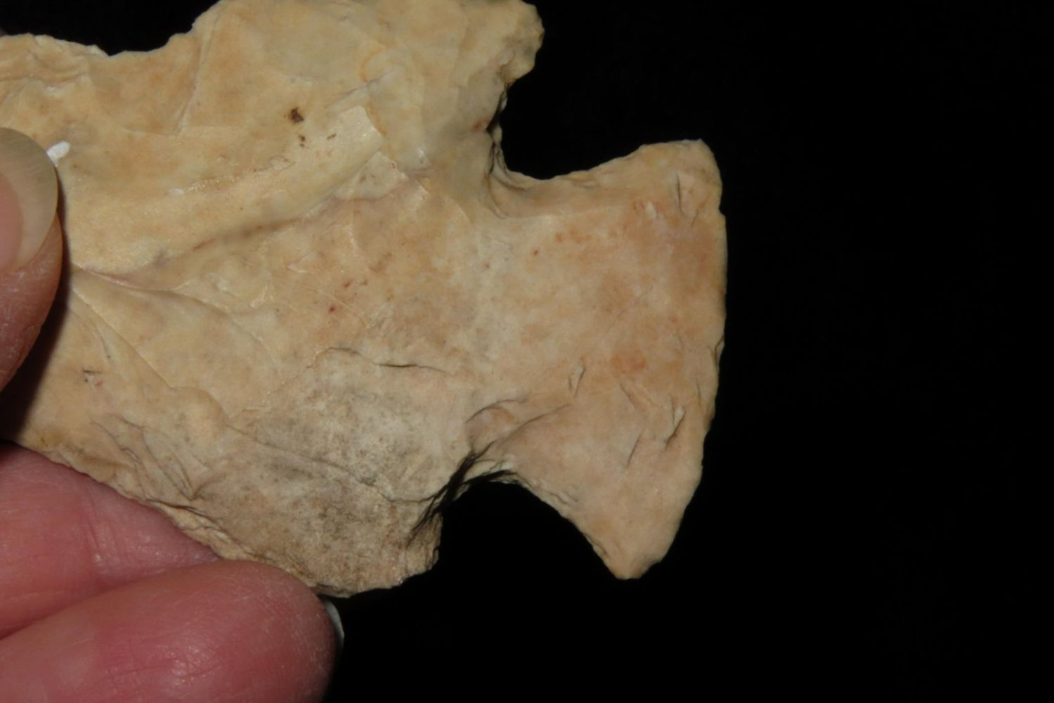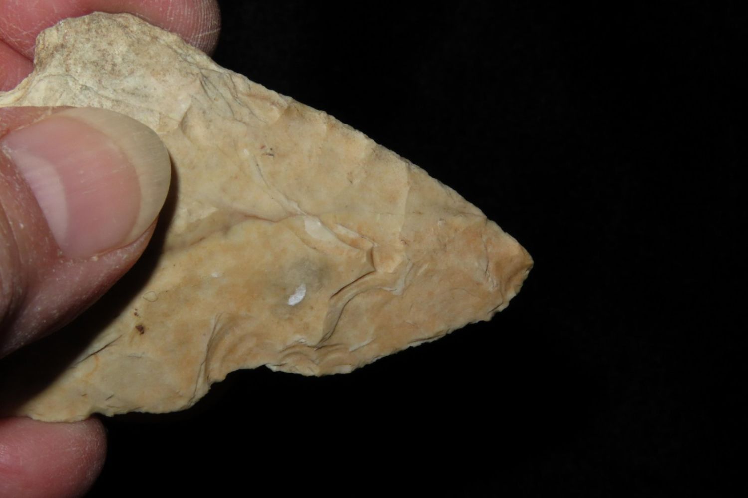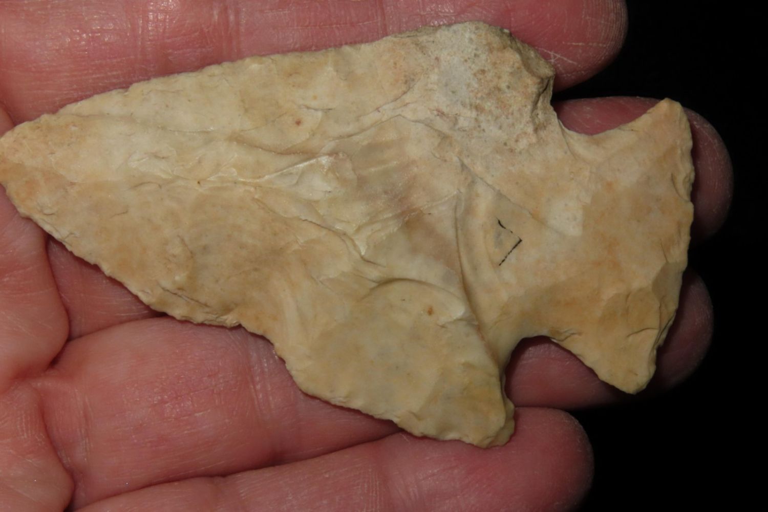 2 3/4" Snyders. From the James and Joe George Collection. Joe George was an avid collector and finder of Native American artifacts in the greater St Louis Missouri area. Joe collected his entire life. Upon his passing he turned his collection over to his son James. James was also a very avid collector. He enjoyed walking various waterways and attending artifact shows. James is looking forward to passing down his collection to the relic community for caretaking.