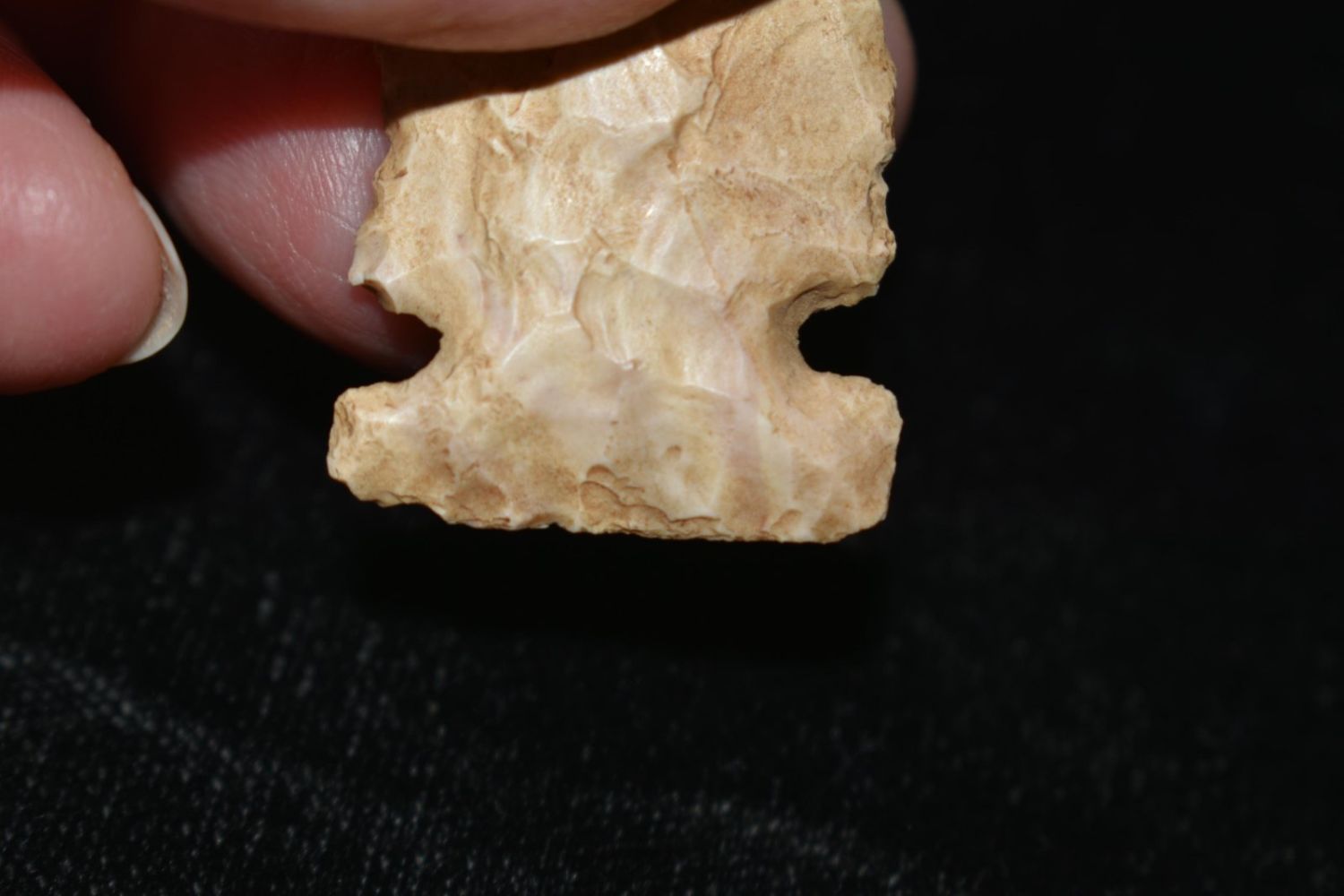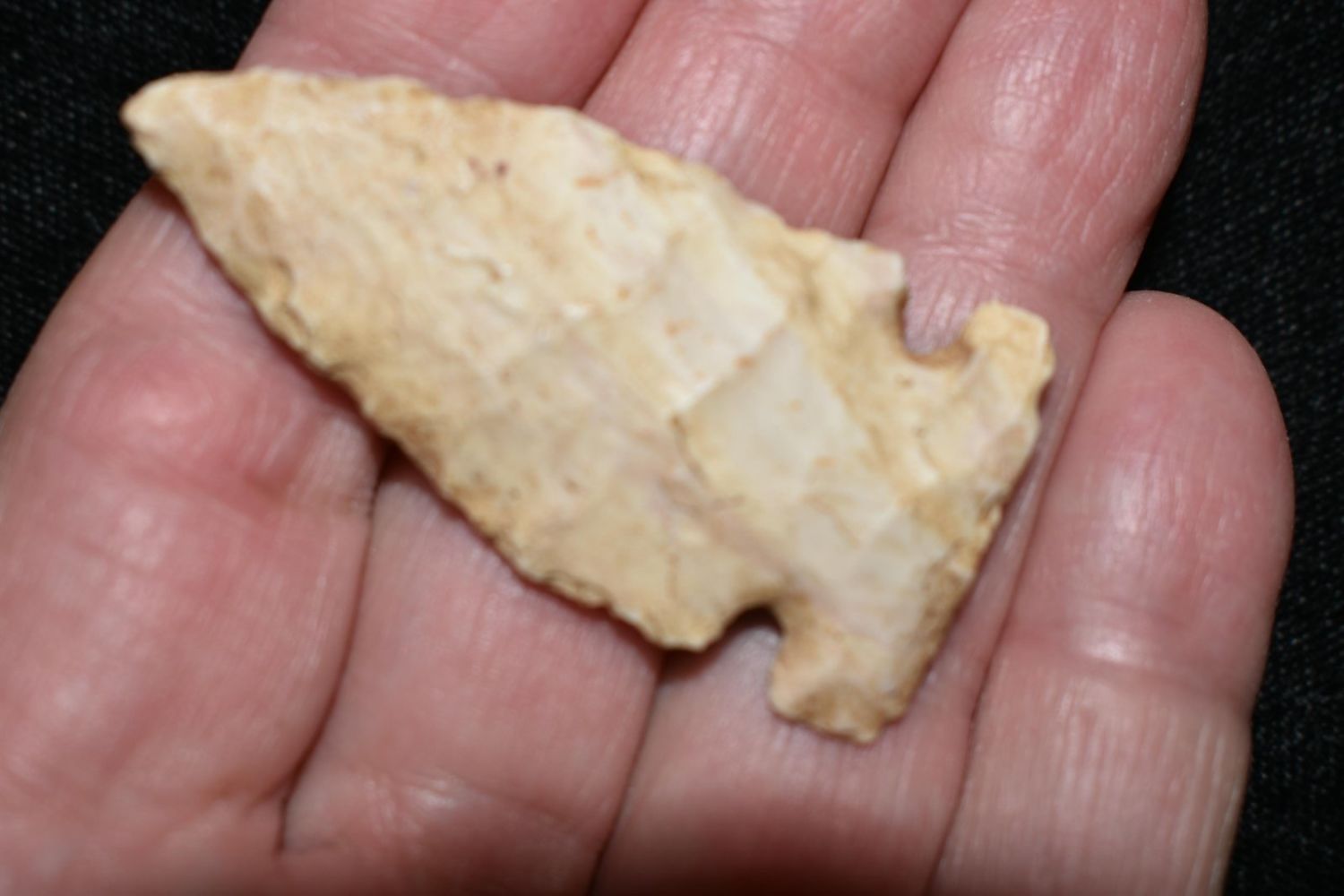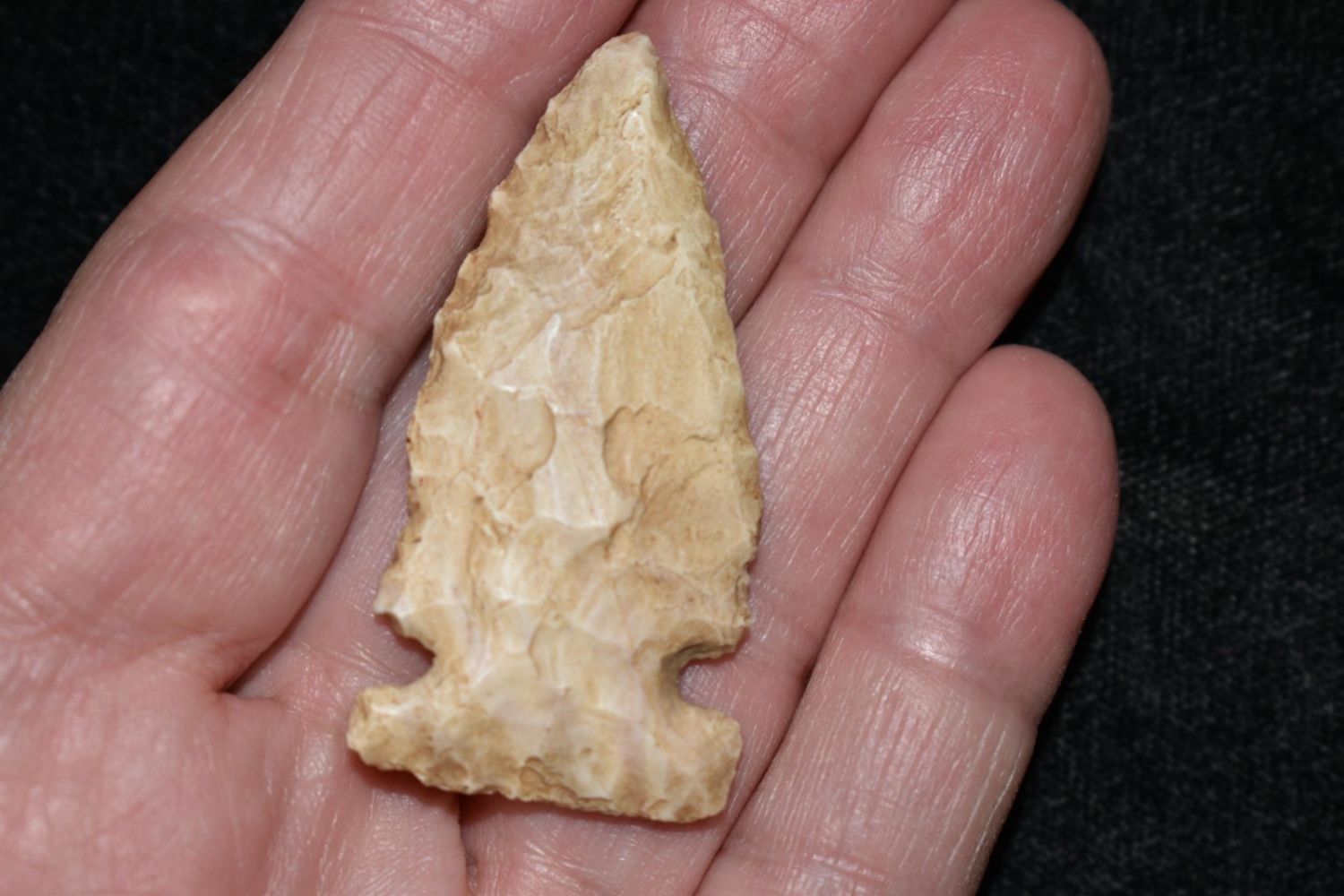 1 7/8" Cache River. From the James and Joe George Collection. Joe George was an avid collector and finder of Native American artifacts in the greater St Louis Missouri area. Joe collected his entire life. Upon his passing he turned his collection over to his son James. James was also a very avid collector. He enjoyed walking various waterways and attending artifact shows. James is looking forward to passing down his collection to the relic community for caretaking.