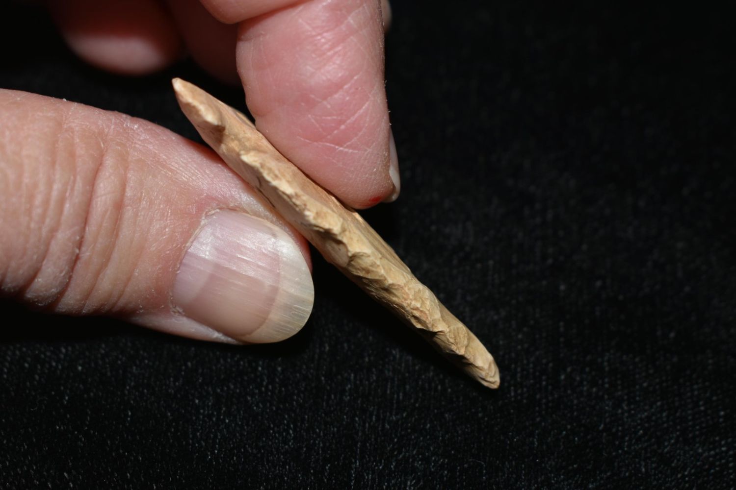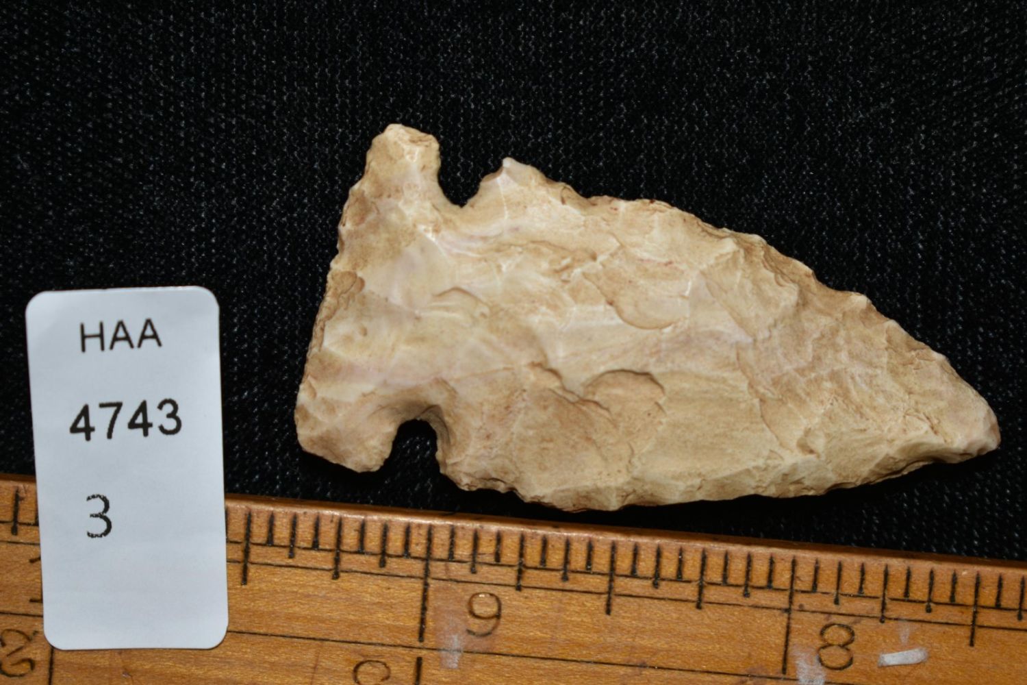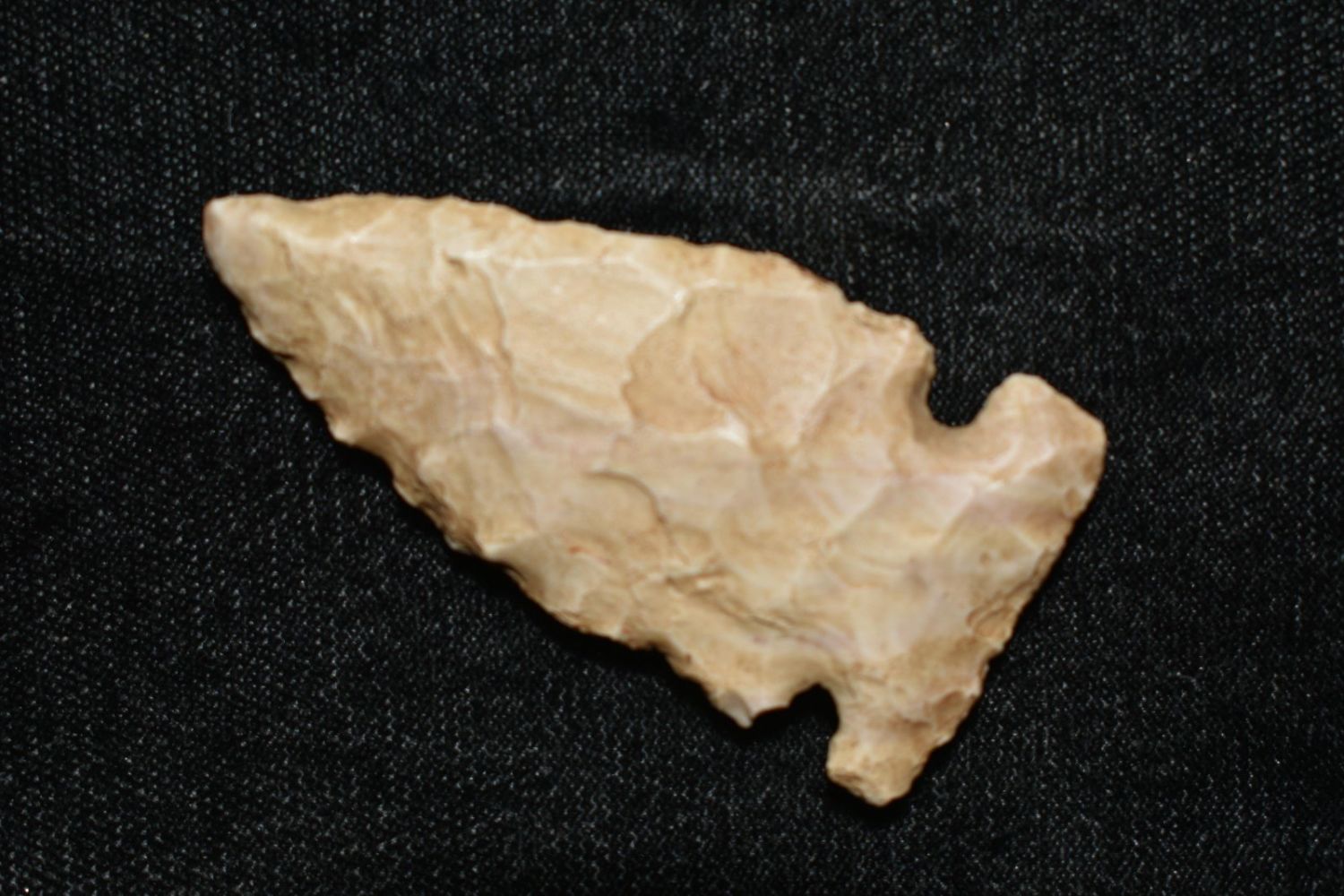 1 7/8" Cache River. From the James and Joe George Collection. Joe George was an avid collector and finder of Native American artifacts in the greater St Louis Missouri area. Joe collected his entire life. Upon his passing he turned his collection over to his son James. James was also a very avid collector. He enjoyed walking various waterways and attending artifact shows. James is looking forward to passing down his collection to the relic community for caretaking.