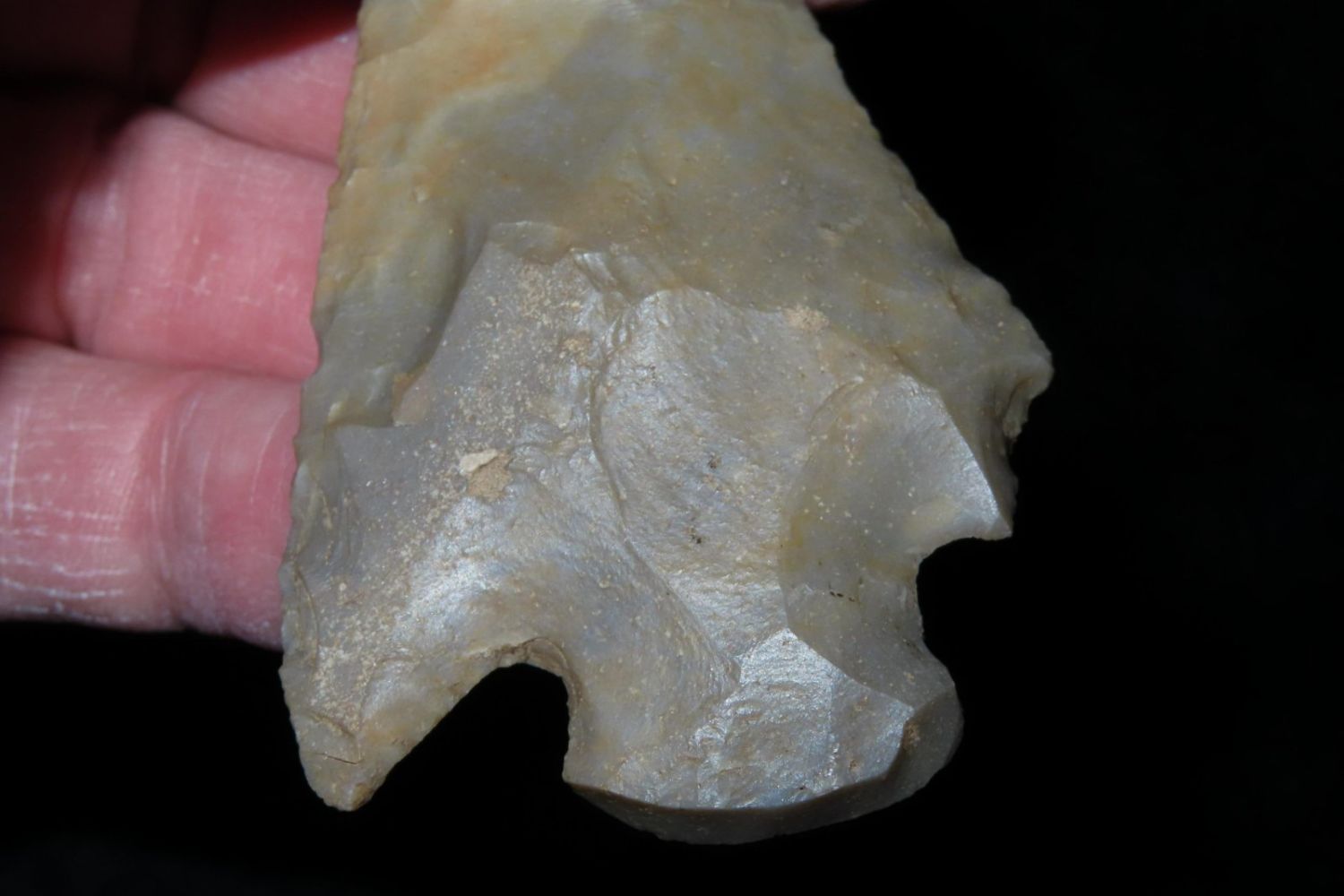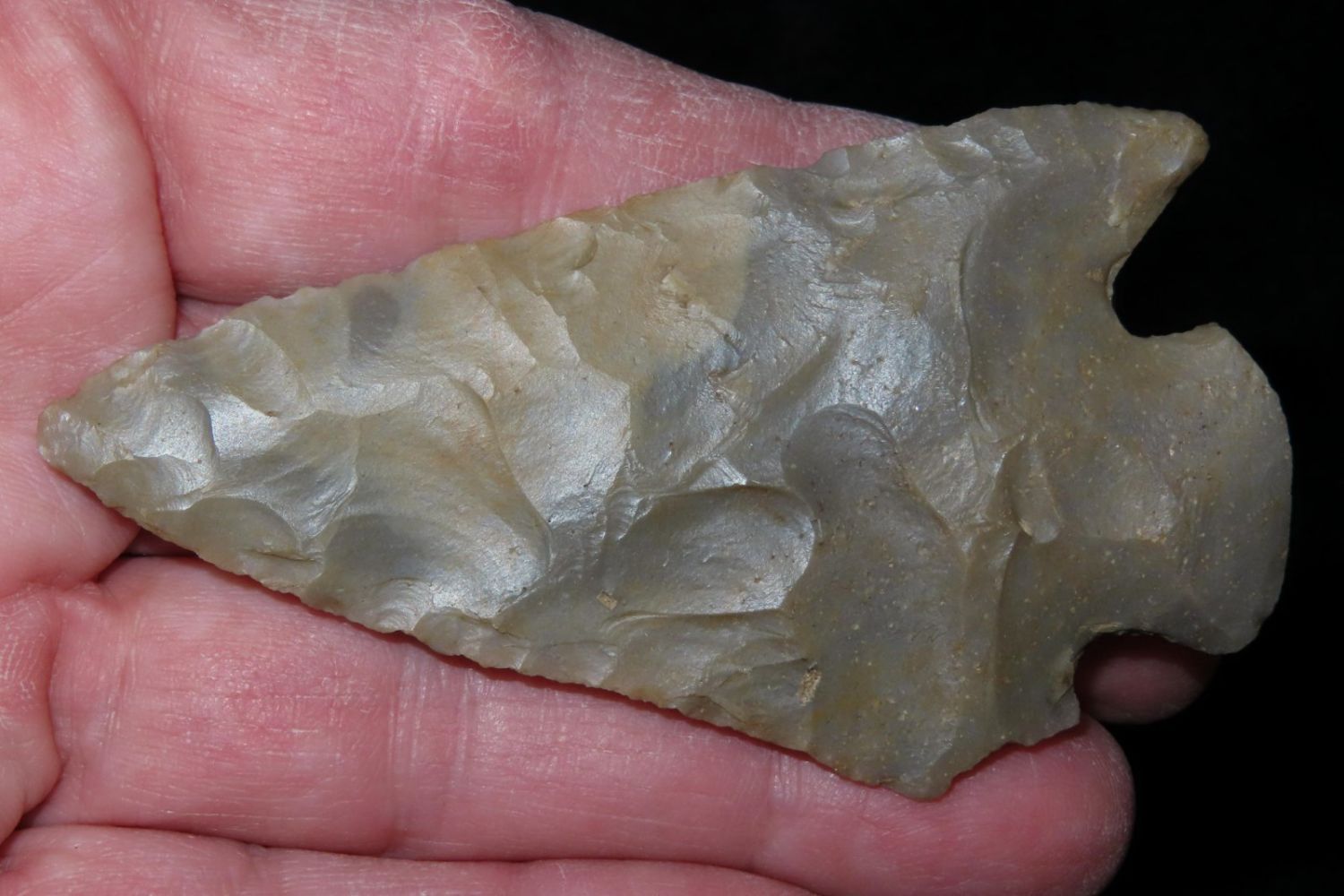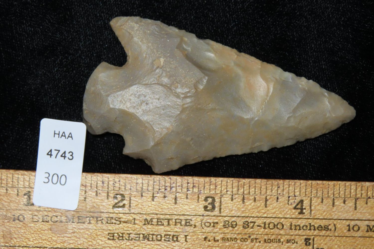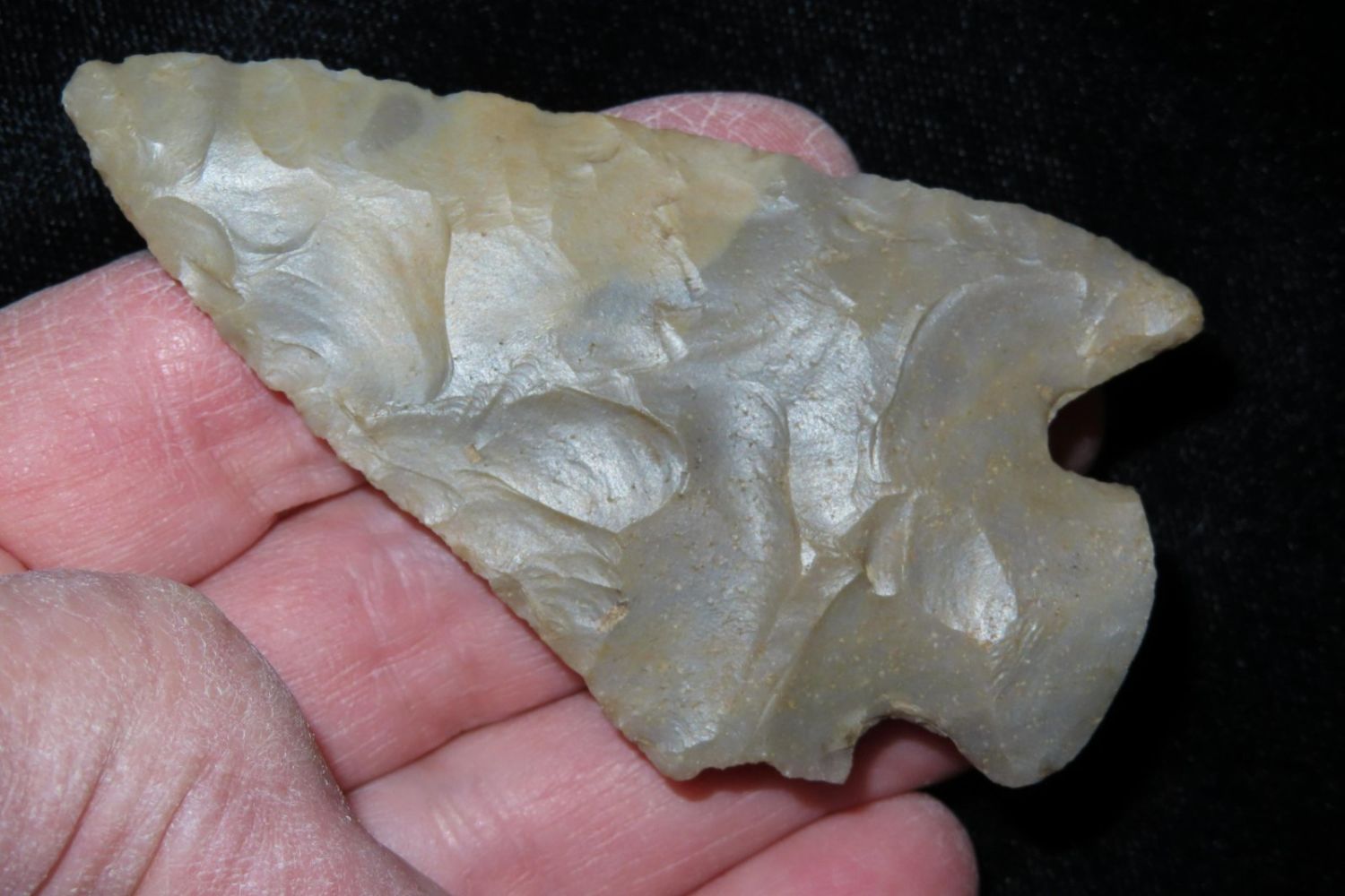 3" Snyders. From the James and Joe George Collection. Joe George was an avid collector and finder of Native American artifacts in the greater St Louis Missouri area. Joe collected his entire life. Upon his passing he turned his collection over to his son James. James was also a very avid collector. He enjoyed walking various waterways and attending artifact shows. James is looking forward to passing down his collection to the relic community for caretaking.