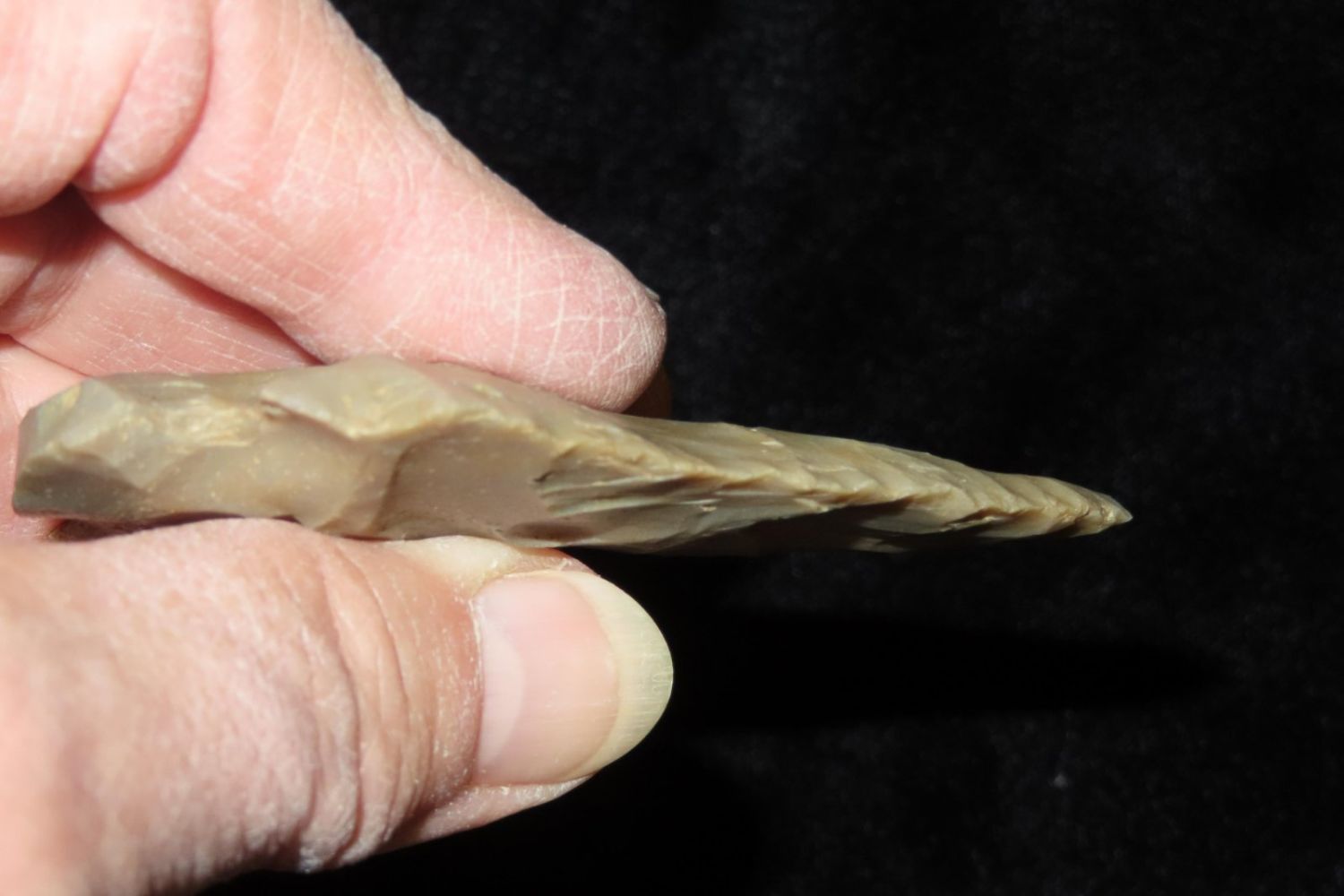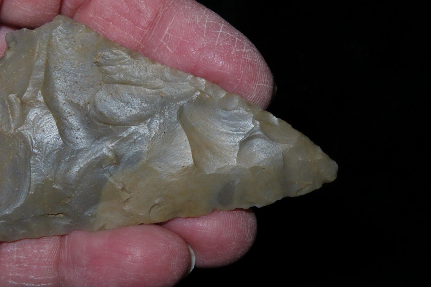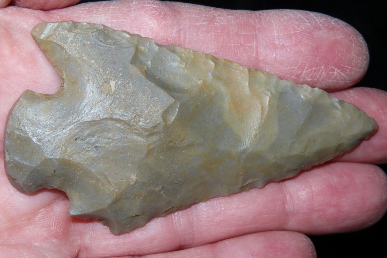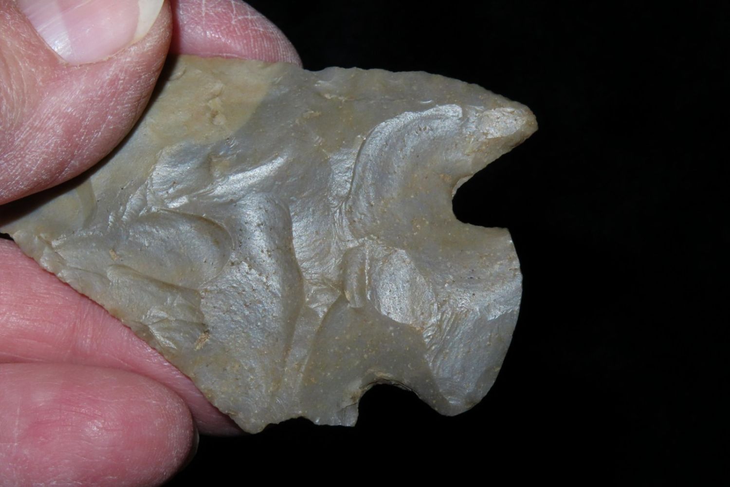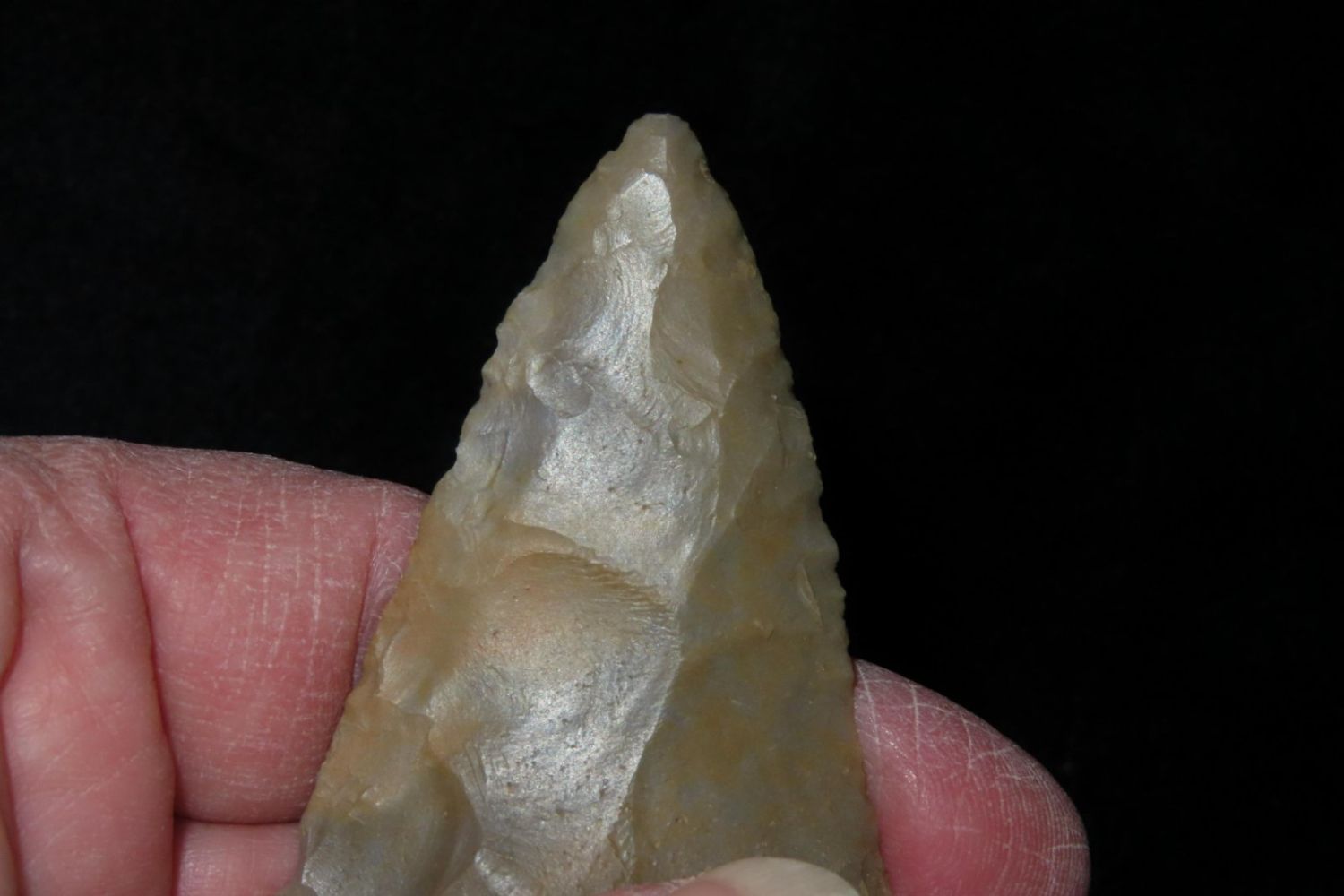 3" Snyders. From the James and Joe George Collection. Joe George was an avid collector and finder of Native American artifacts in the greater St Louis Missouri area. Joe collected his entire life. Upon his passing he turned his collection over to his son James. James was also a very avid collector. He enjoyed walking various waterways and attending artifact shows. James is looking forward to passing down his collection to the relic community for caretaking.
