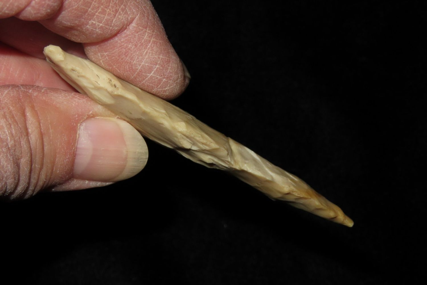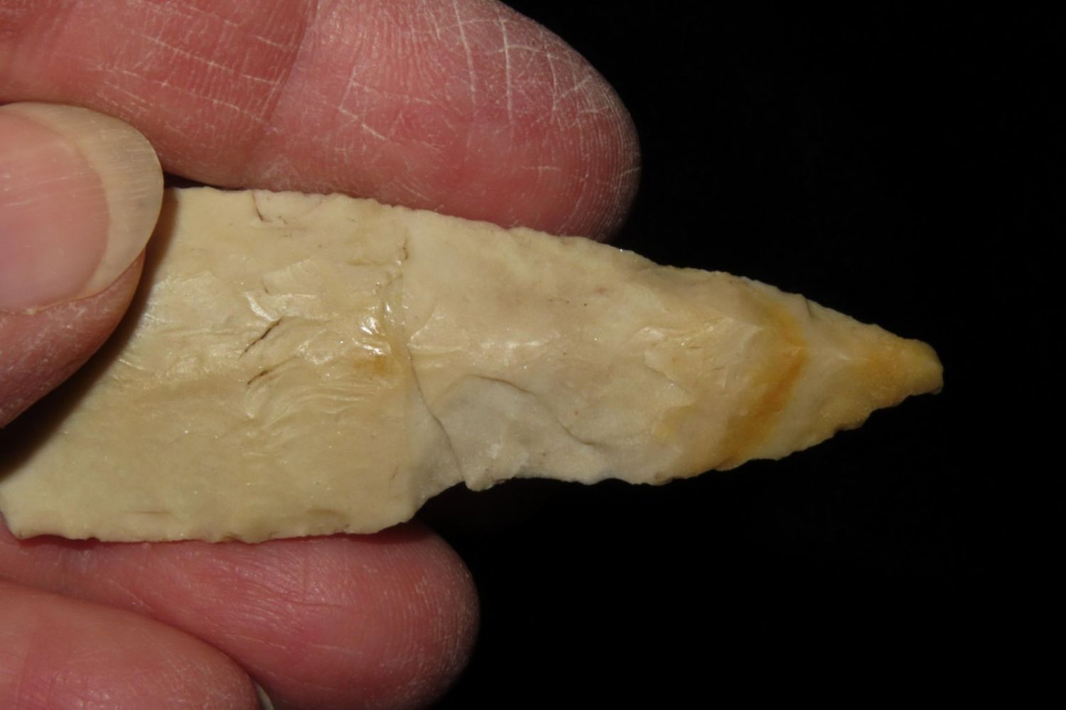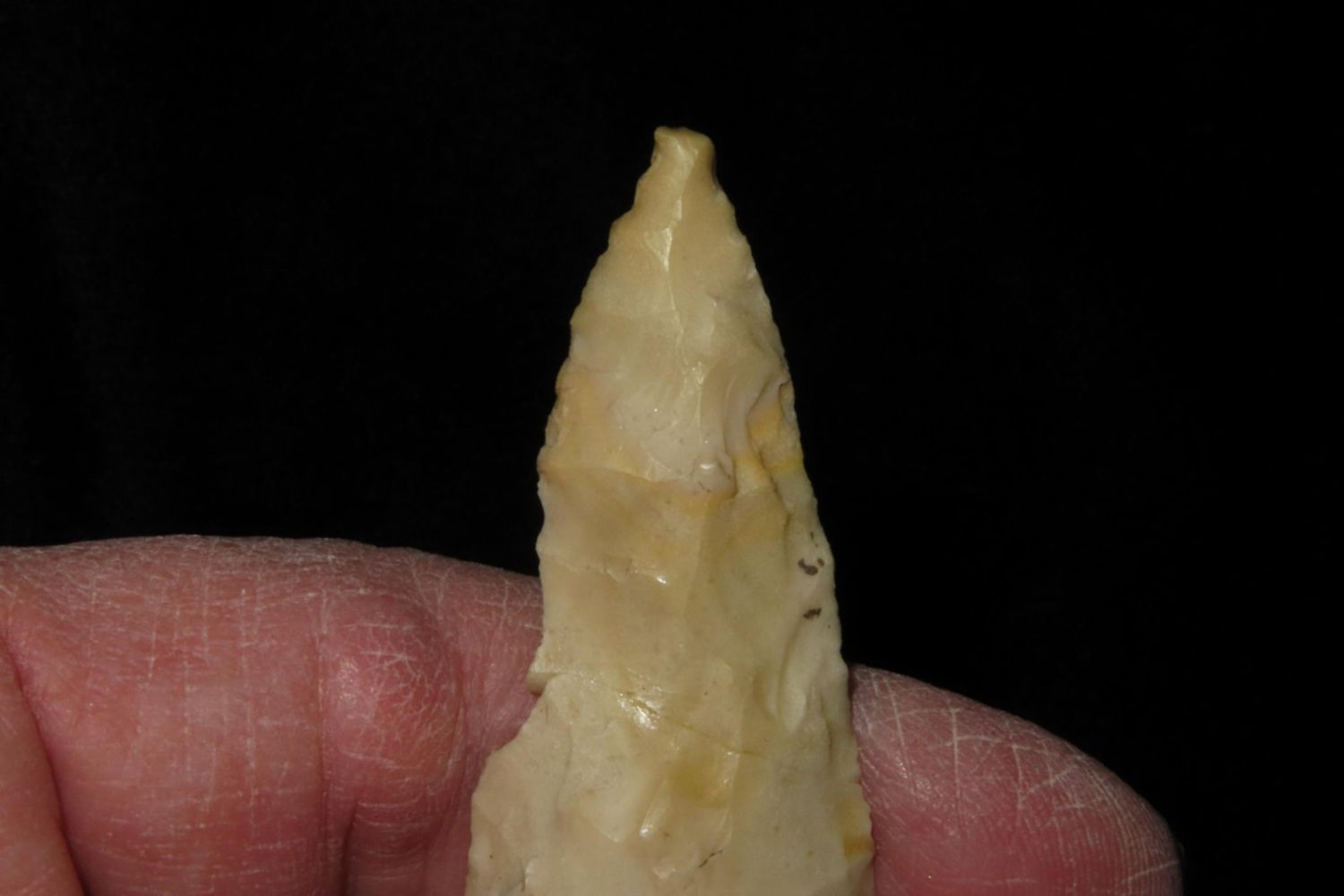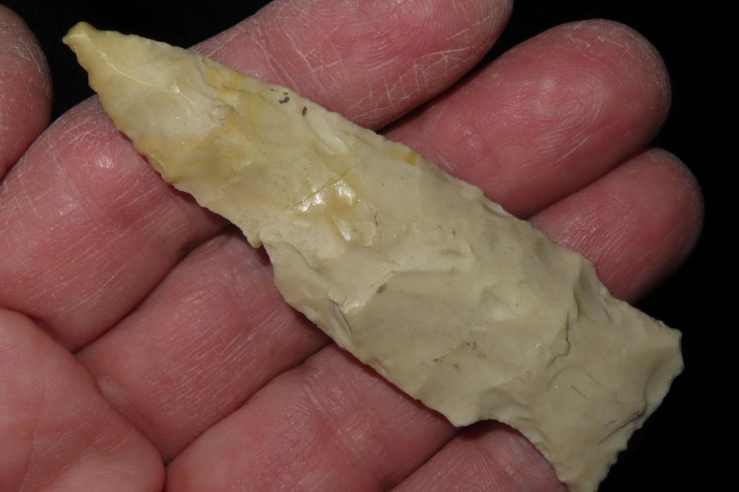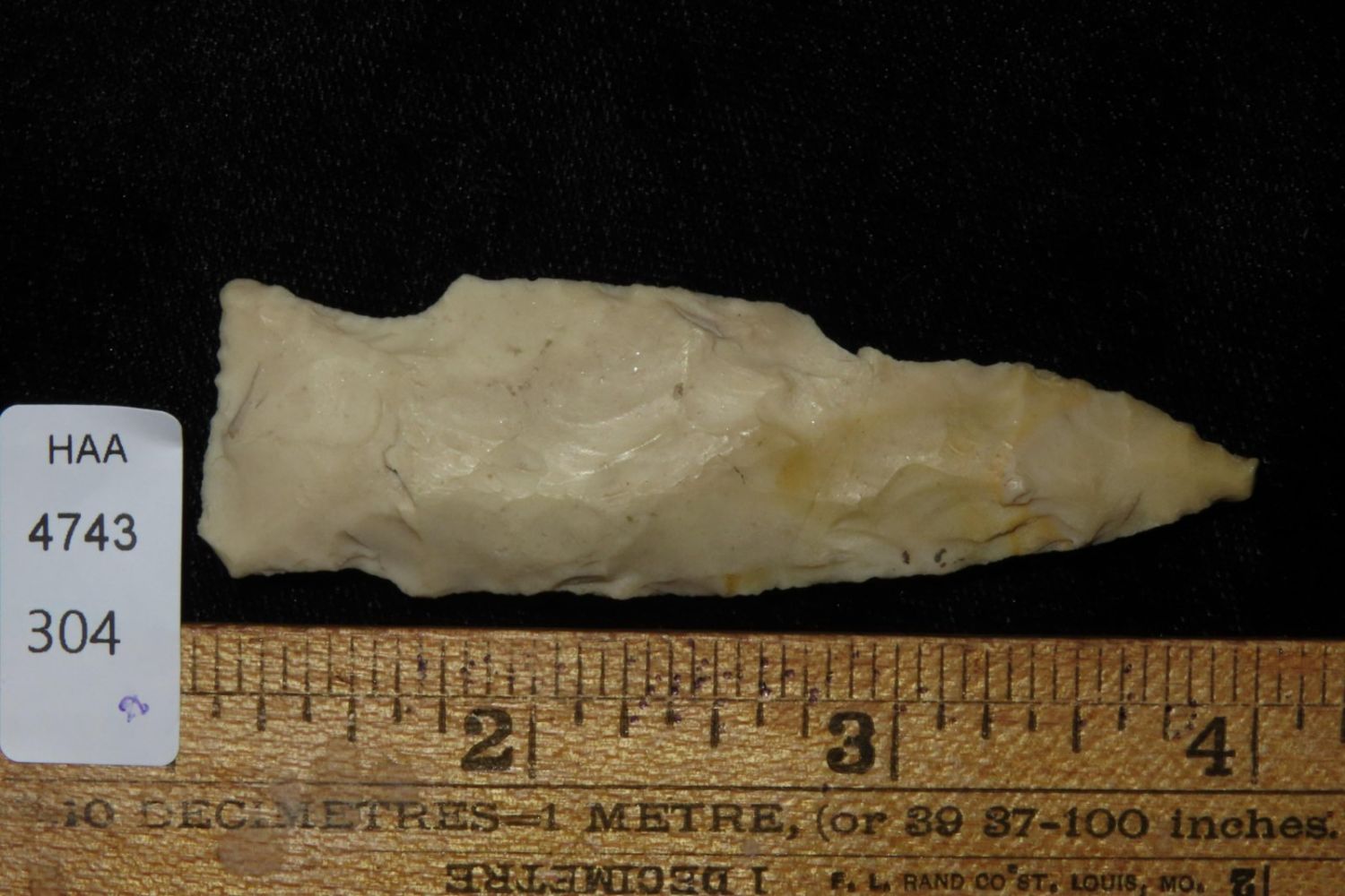 2 7/8" Steuben. From the James and Joe George Collection. Joe George was an avid collector and finder of Native American artifacts in the greater St Louis Missouri area. Joe collected his entire life. Upon his passing he turned his collection over to his son James. James was also a very avid collector. He enjoyed walking various waterways and attending artifact shows. James is looking forward to passing down his collection to the relic community for caretaking.