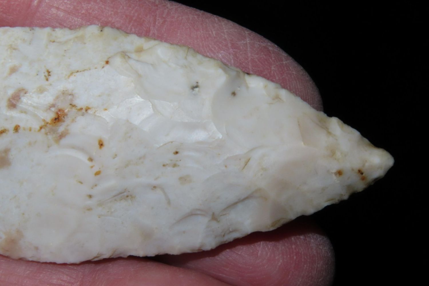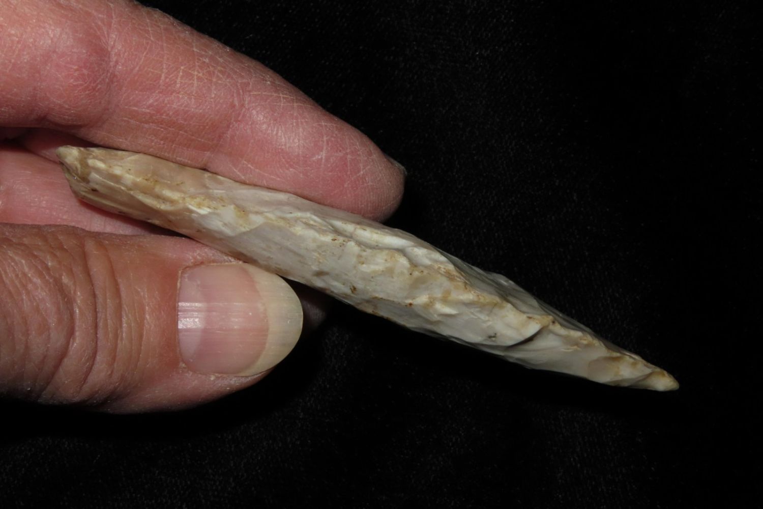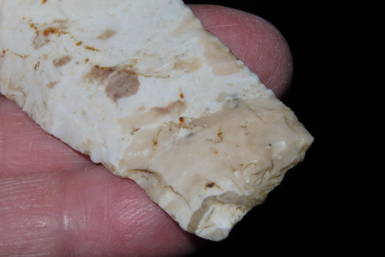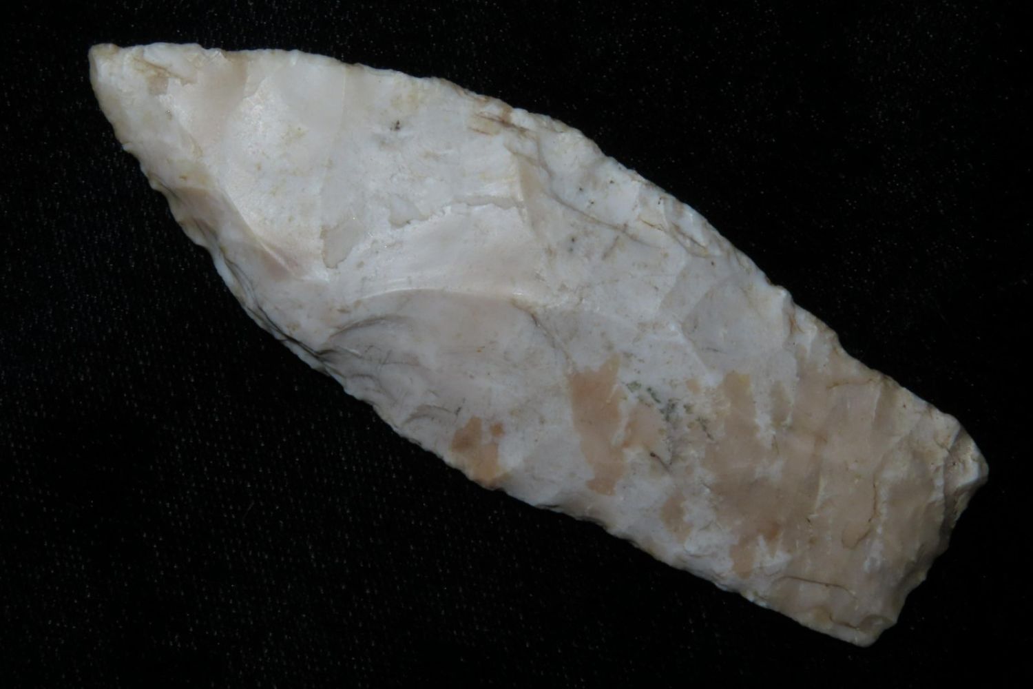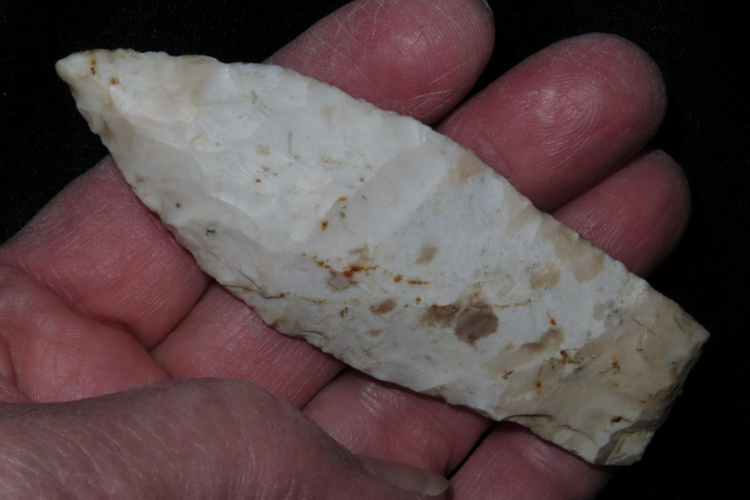 3 1/4" Sedalia. From the James and Joe George Collection. Joe George was an avid collector and finder of Native American artifacts in the greater St Louis Missouri area. Joe collected his entire life. Upon his passing he turned his collection over to his son James. James was also a very avid collector. He enjoyed walking various waterways and attending artifact shows. James is looking forward to passing down his collection to the relic community for caretaking.