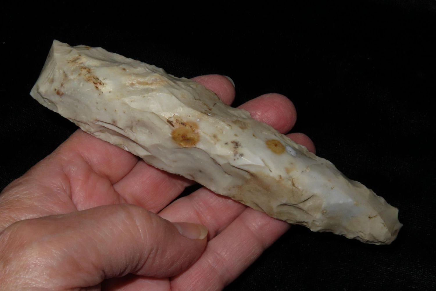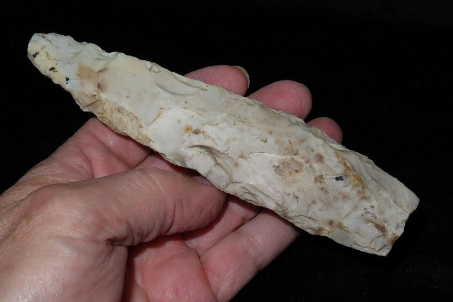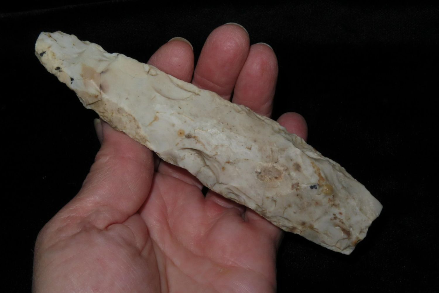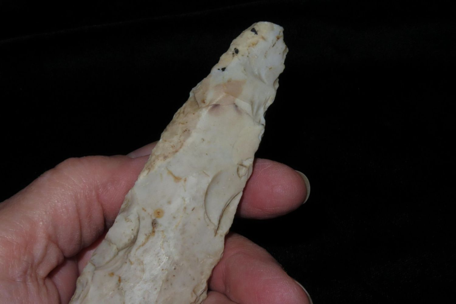5.1/2" Flint Pick, From the James and Joe George Collection. Joe George was an avid collector and finder of Native American artifacts in the greater St Louis Missouri area. Joe collected his entire life. Upon his passing he turned his collection over to his son James. James was also a very avid collector. He enjoyed walking various waterways and attending artifact shows. James is looking forward to passing down his collection to the relic community for caretaking.