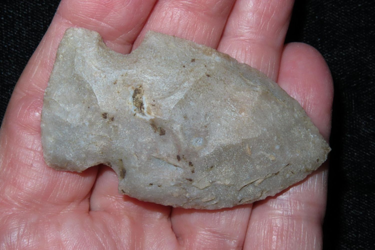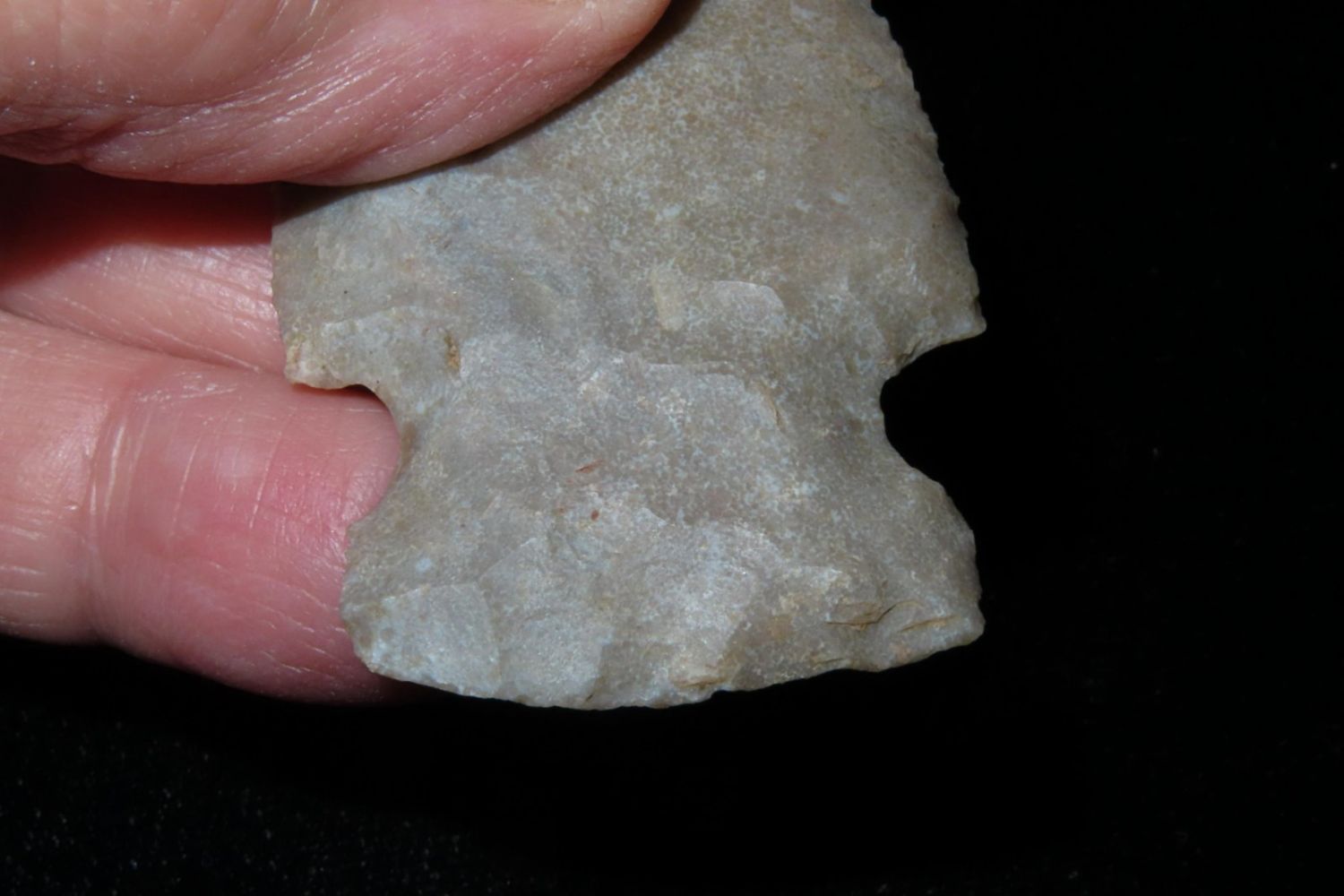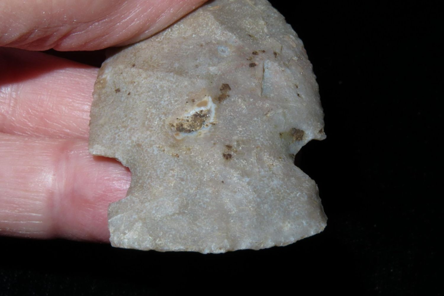 2 1/4" Godar. From the James and Joe George Collection. Joe George was an avid collector and finder of Native American artifacts in the greater St Louis Missouri area. Joe collected his entire life. Upon his passing he turned his collection over to his son James. James was also a very avid collector. He enjoyed walking various waterways and attending artifact shows. James is looking forward to passing down his collection to the relic community for caretaking.