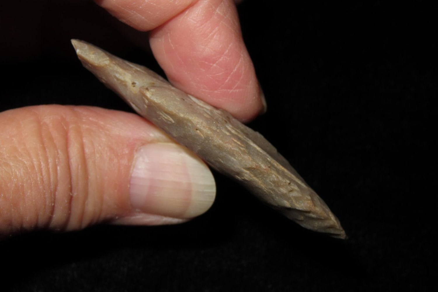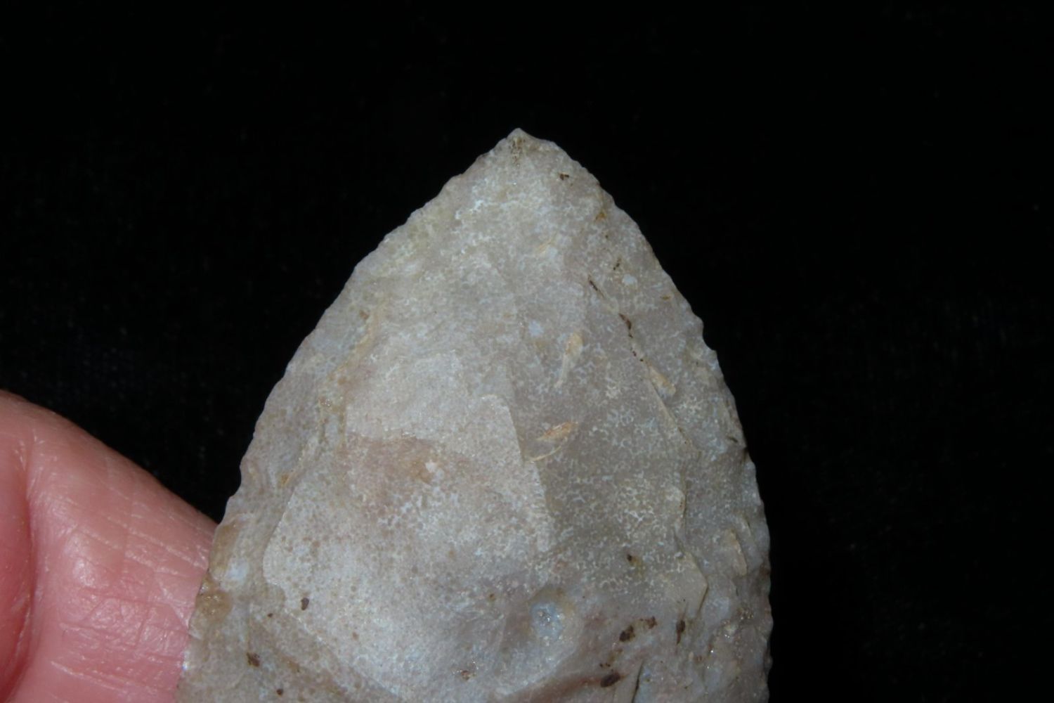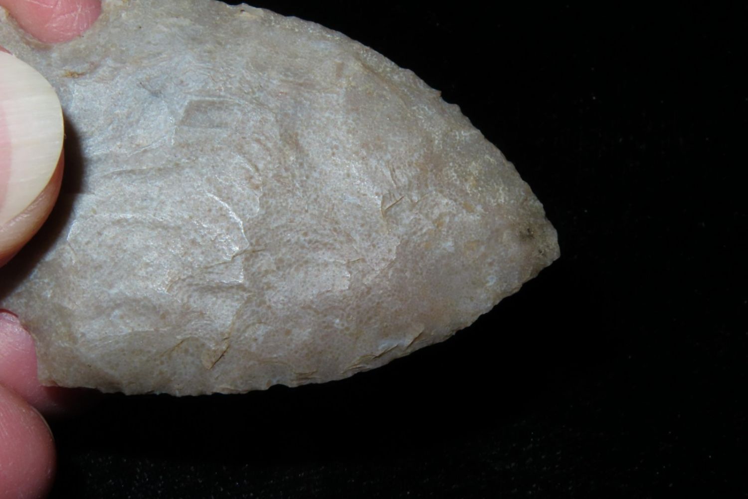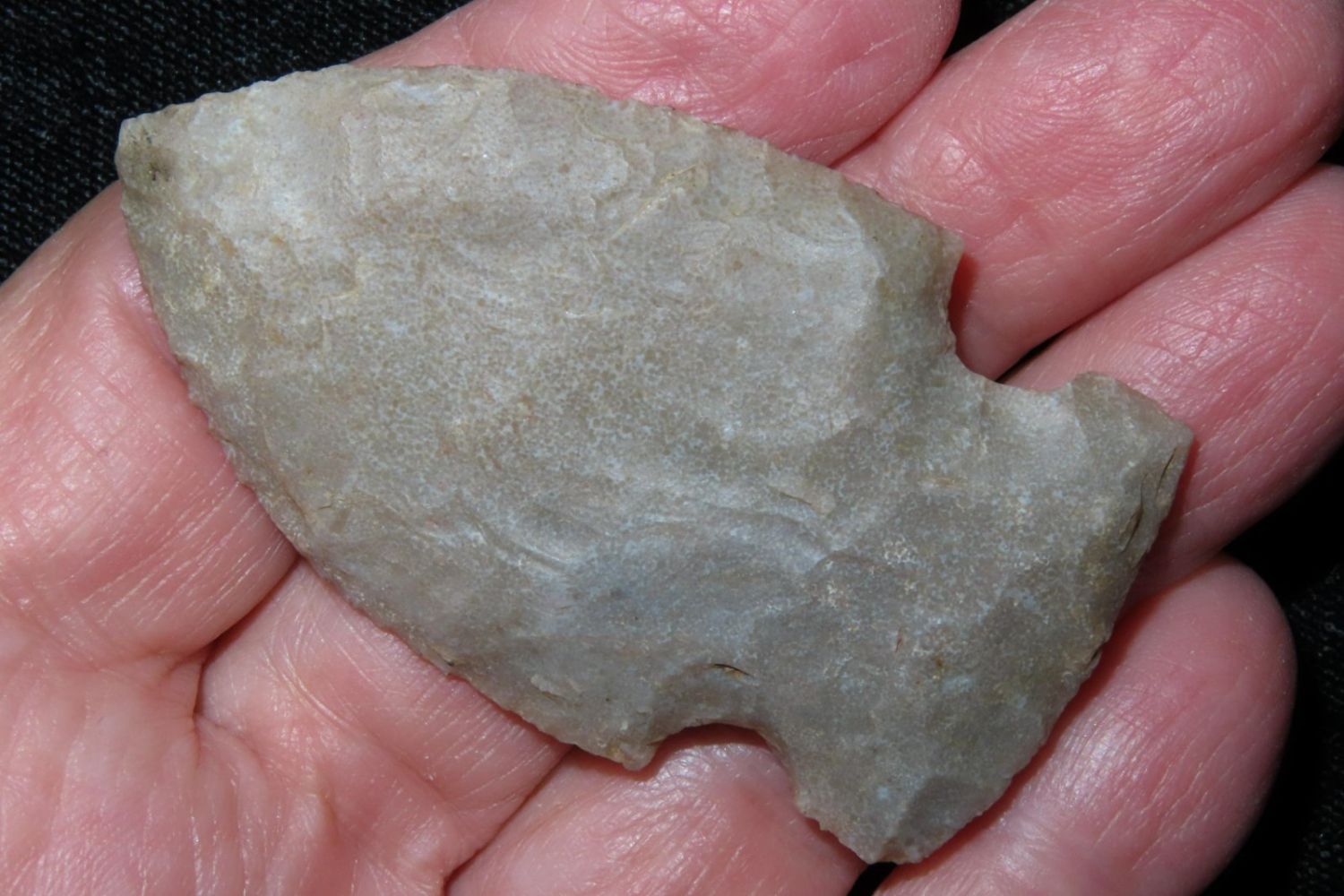 2 1/4" Godar. From the James and Joe George Collection. Joe George was an avid collector and finder of Native American artifacts in the greater St Louis Missouri area. Joe collected his entire life. Upon his passing he turned his collection over to his son James. James was also a very avid collector. He enjoyed walking various waterways and attending artifact shows. James is looking forward to passing down his collection to the relic community for caretaking.