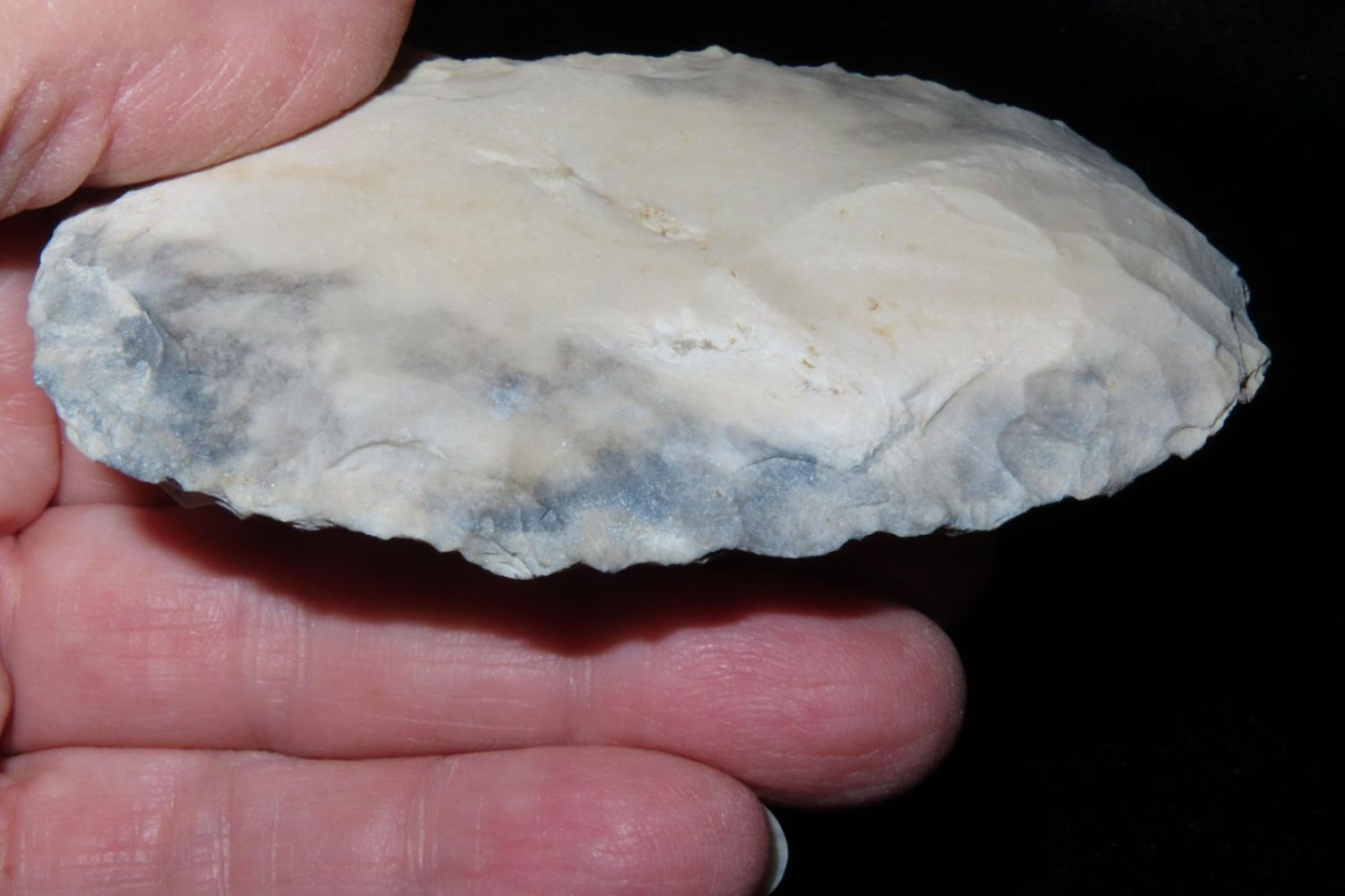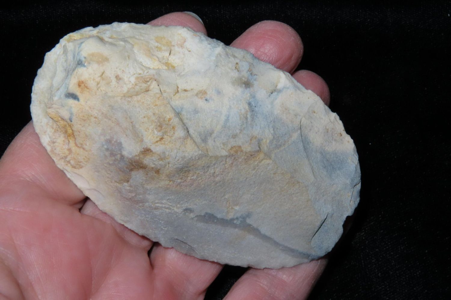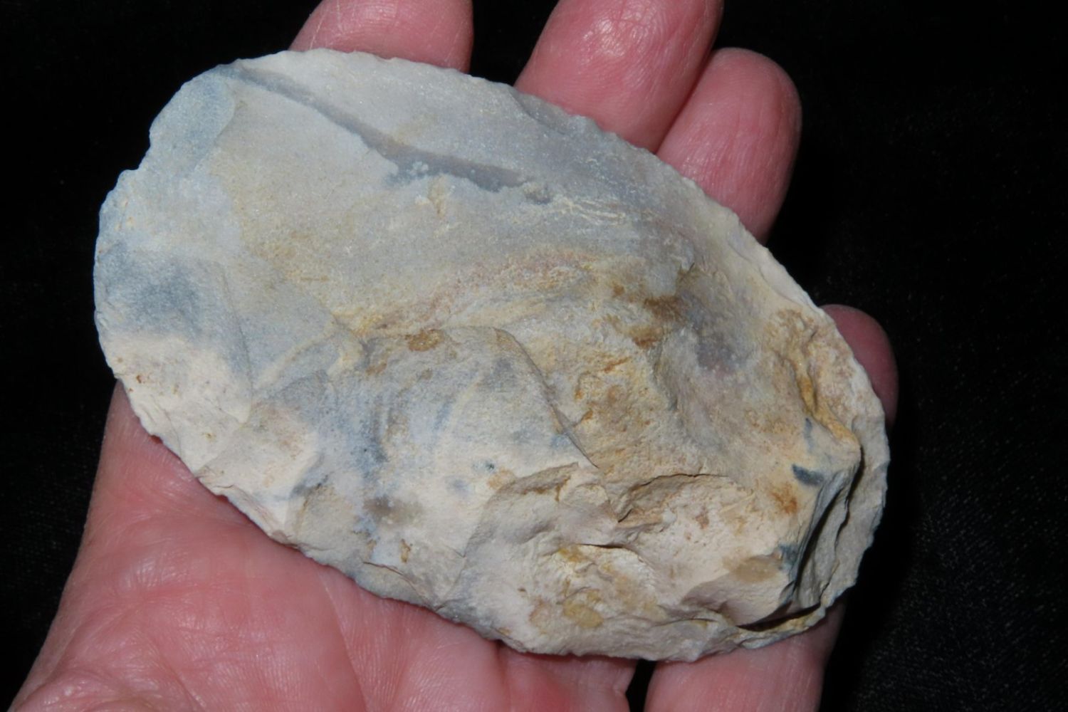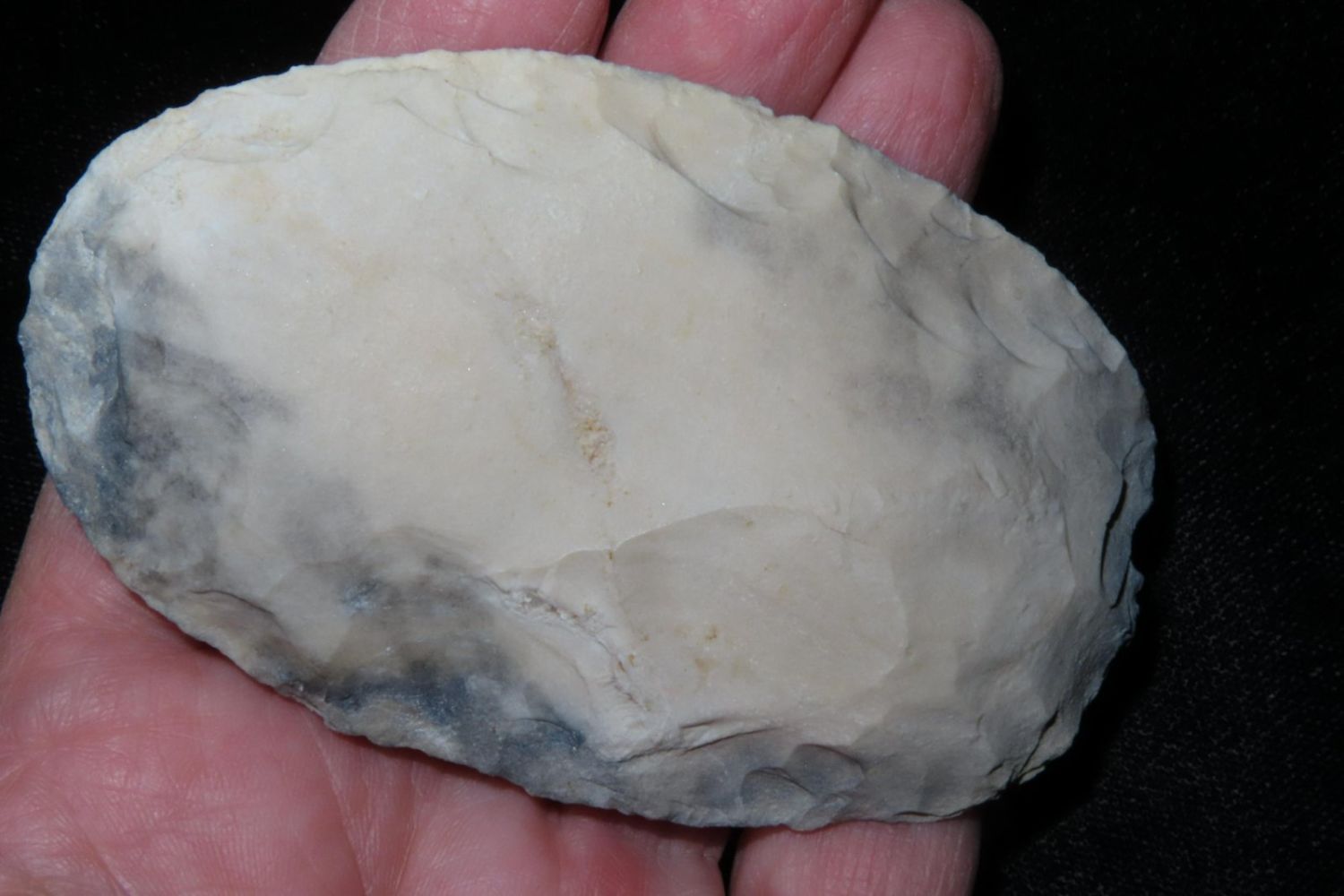 3.3/8" Ovoid Knife, From the James and Joe George Collection. Joe George was an avid collector and finder of Native American artifacts in the greater St Louis Missouri area. Joe collected his entire life. Upon his passing he turned his collection over to his son James. James was also a very avid collector. He enjoyed walking various waterways and attending artifact shows. James is looking forward to passing down his collection to the relic community for caretaking.
