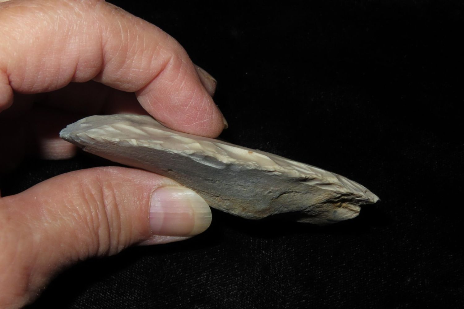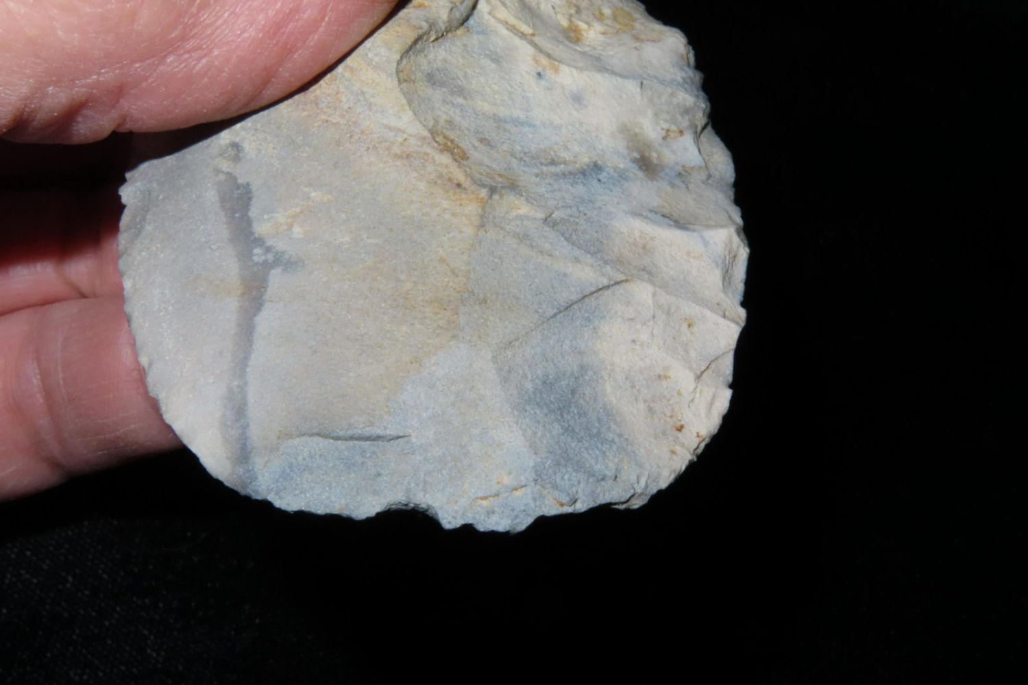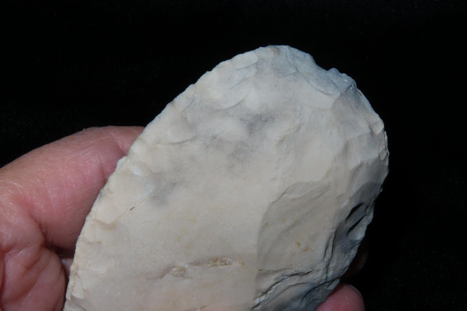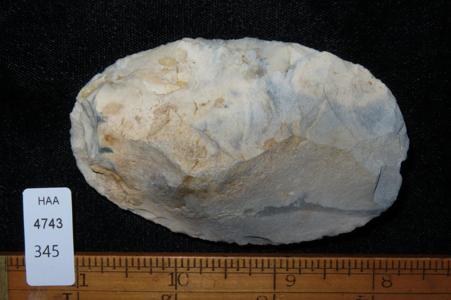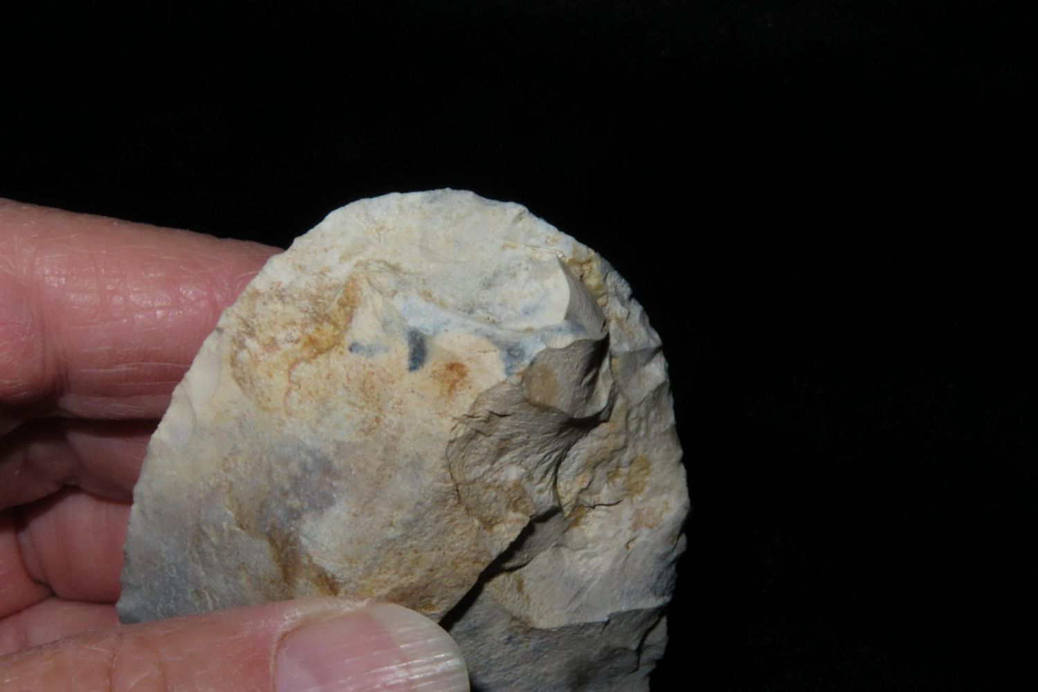 3.3/8" Ovoid Knife, From the James and Joe George Collection. Joe George was an avid collector and finder of Native American artifacts in the greater St Louis Missouri area. Joe collected his entire life. Upon his passing he turned his collection over to his son James. James was also a very avid collector. He enjoyed walking various waterways and attending artifact shows. James is looking forward to passing down his collection to the relic community for caretaking.