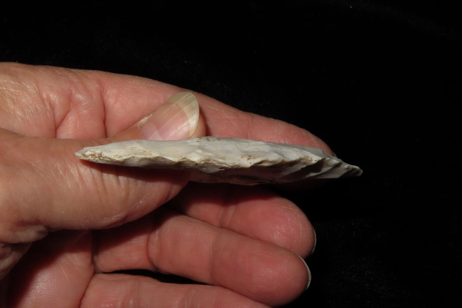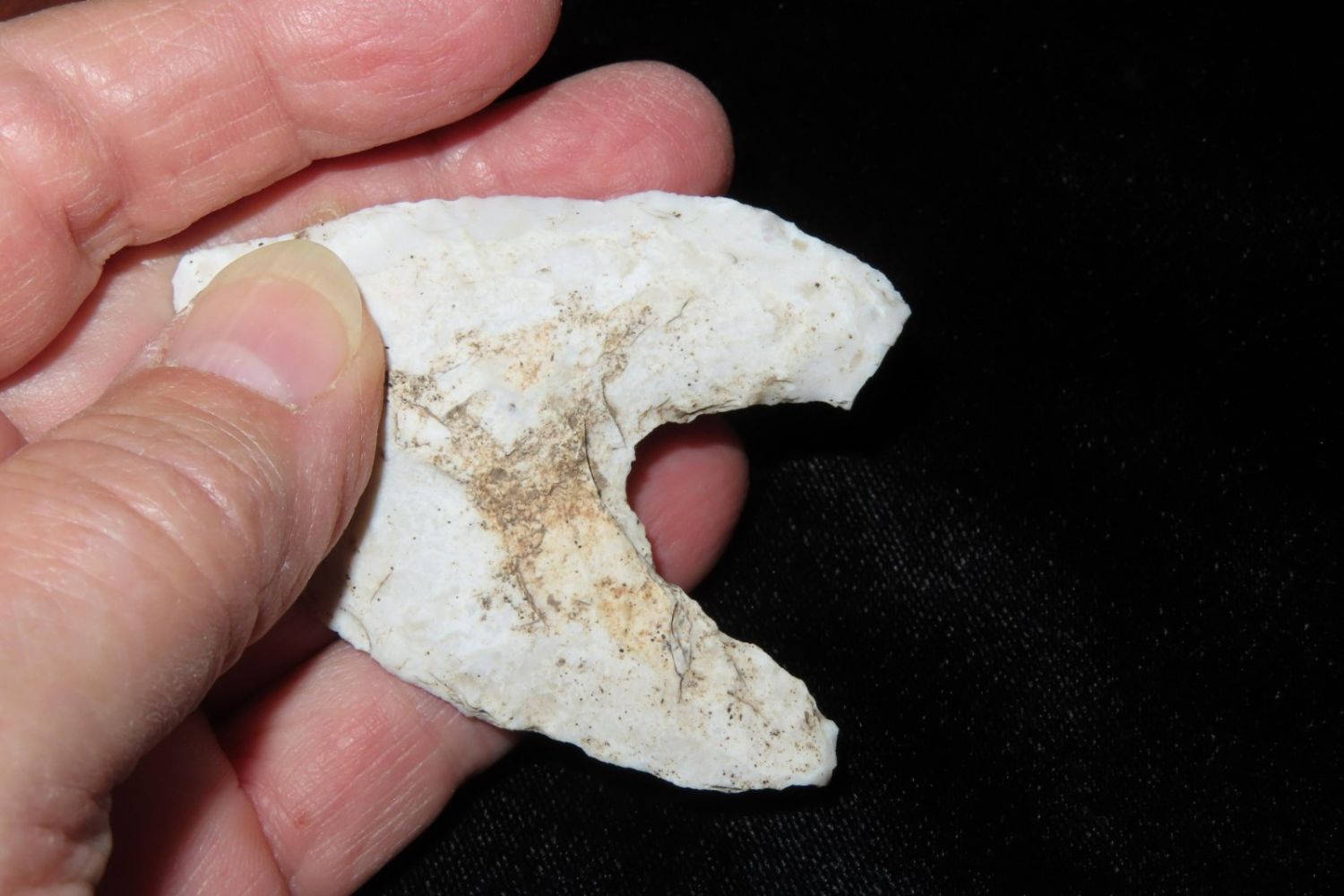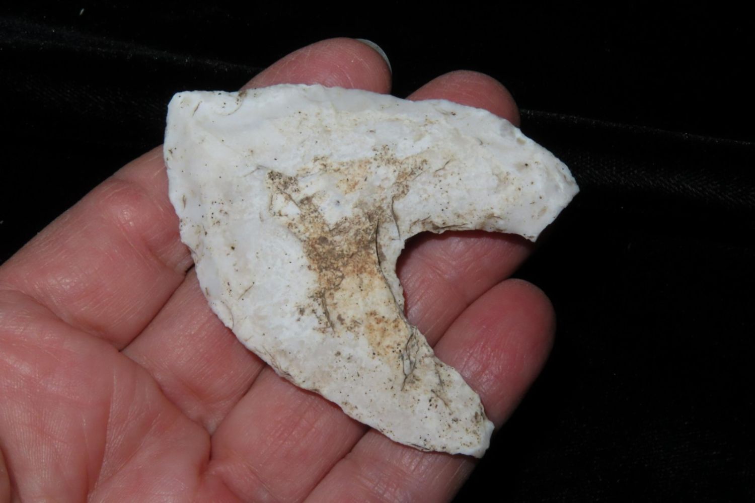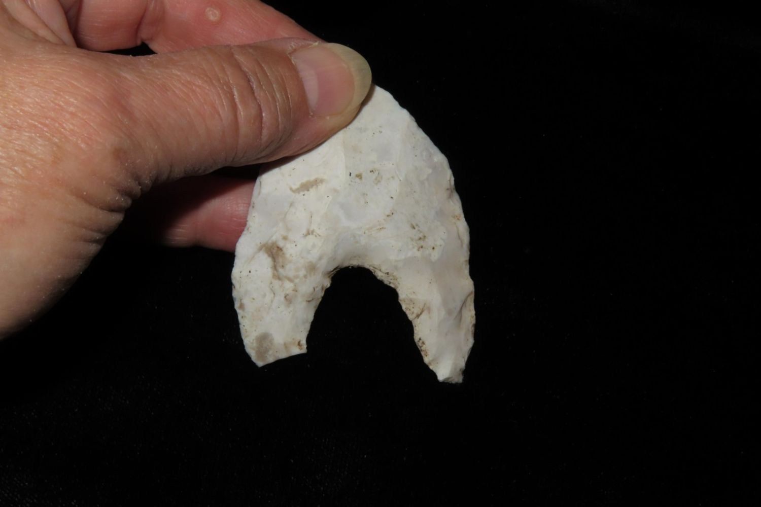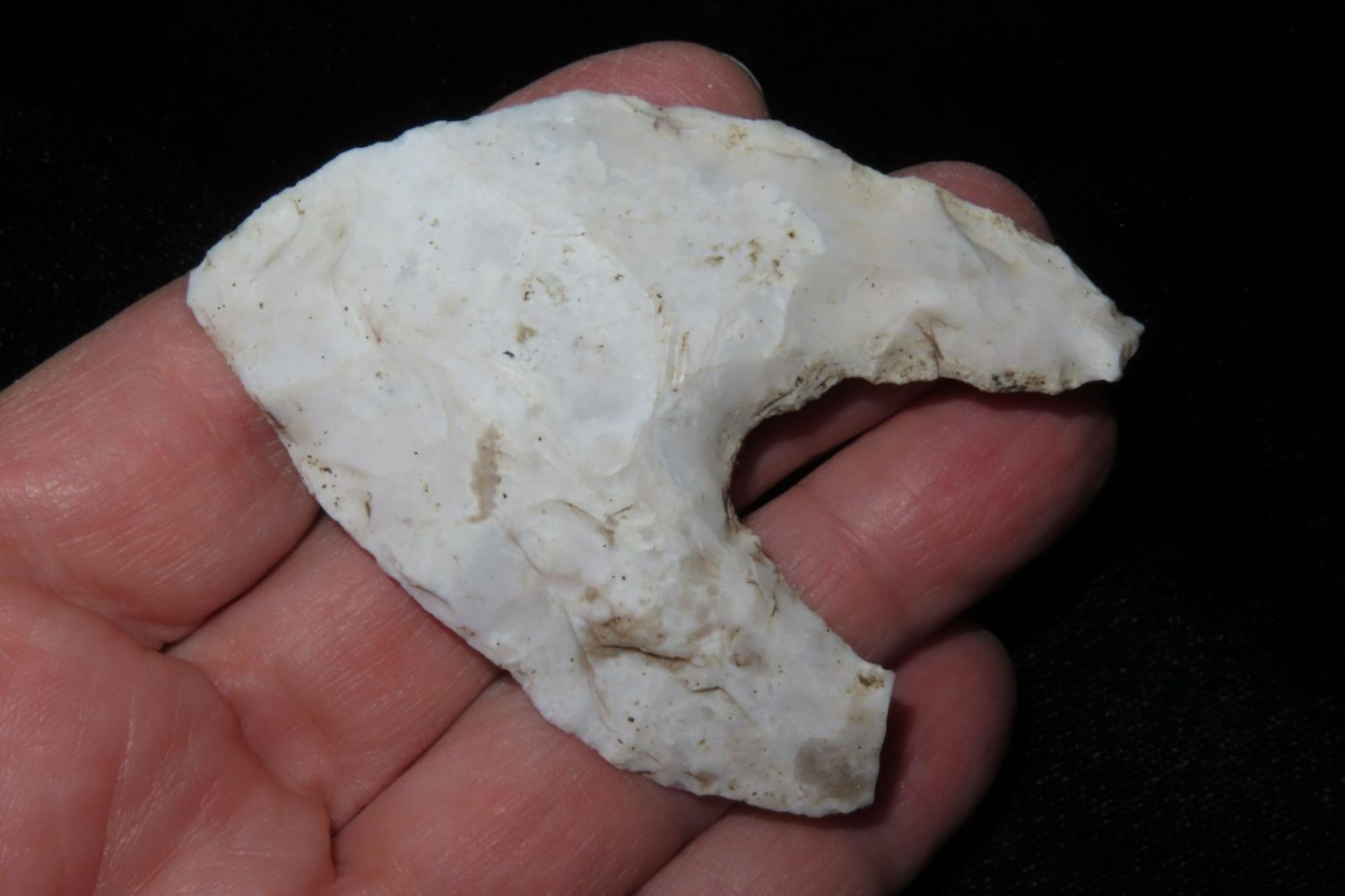 2.3/4" Eccentric, From the James and Joe George Collection. Joe George was an avid collector and finder of Native American artifacts in the greater St Louis Missouri area. Joe collected his entire life. Upon his passing he turned his collection over to his son James. James was also a very avid collector. He enjoyed walking various waterways and attending artifact shows. James is looking forward to passing down his collection to the relic community for caretaking.