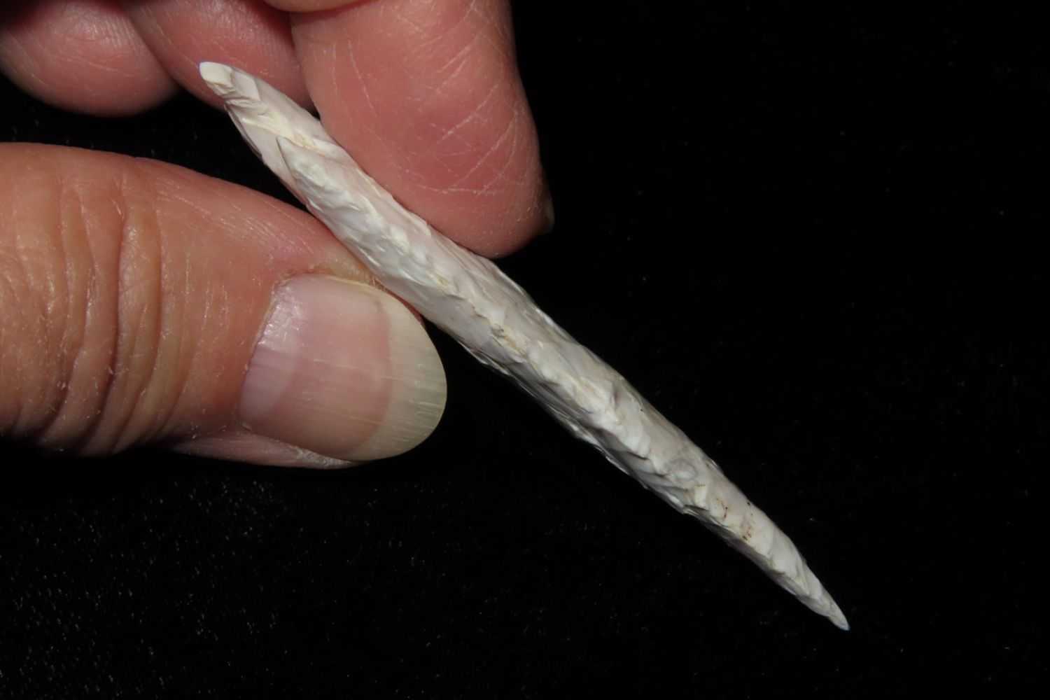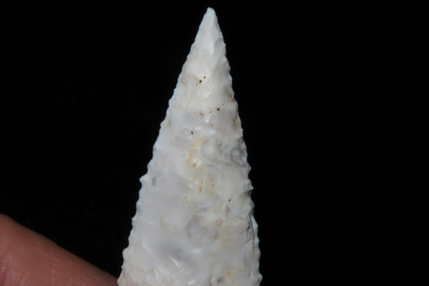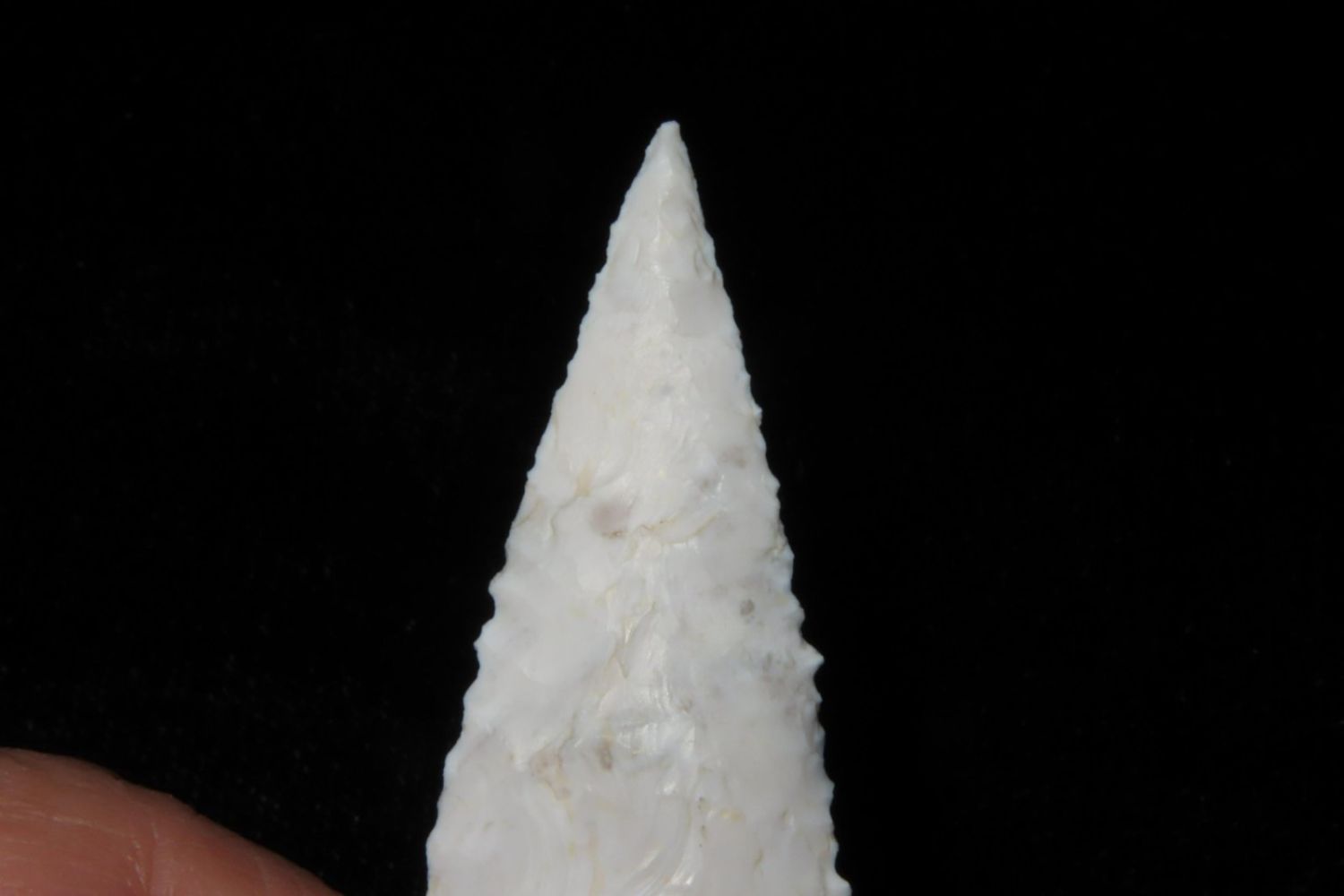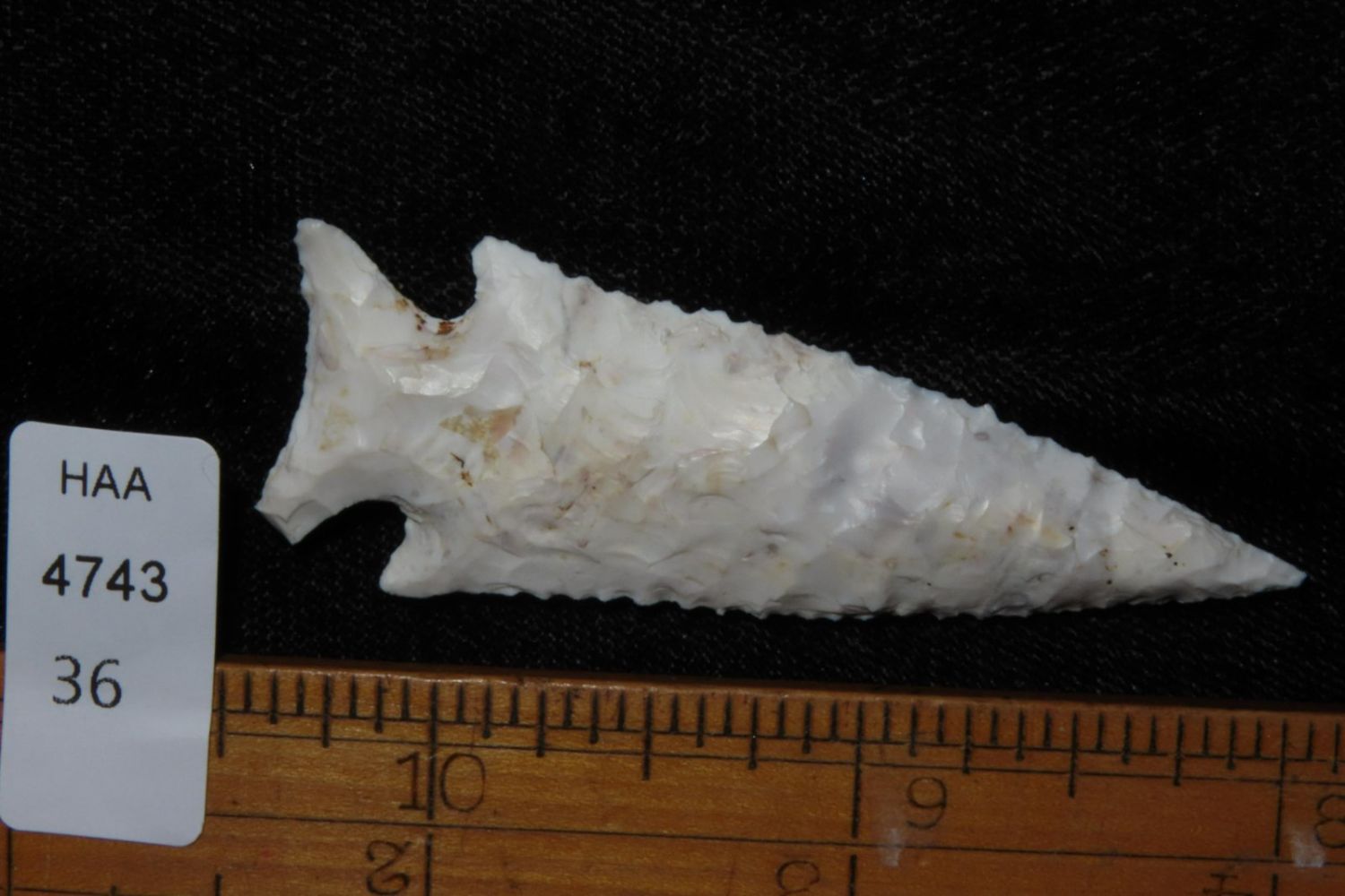 2 1/2" Kings Corner Notch. Serrated and extremely well made, nice rare example. From the James and Joe George Collection. Joe George was an avid collector and finder of Native American artifacts in the greater St Louis Missouri area. Joe collected his entire life. Upon his passing he turned his collection over to his son James. James was also a very avid collector. He enjoyed walking various waterways and attending artifact shows. James is looking forward to passing down his collection to the relic community for caretaking.