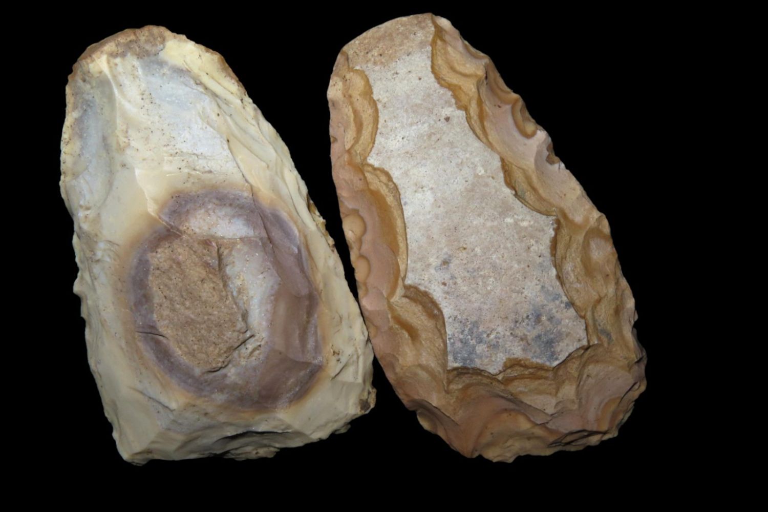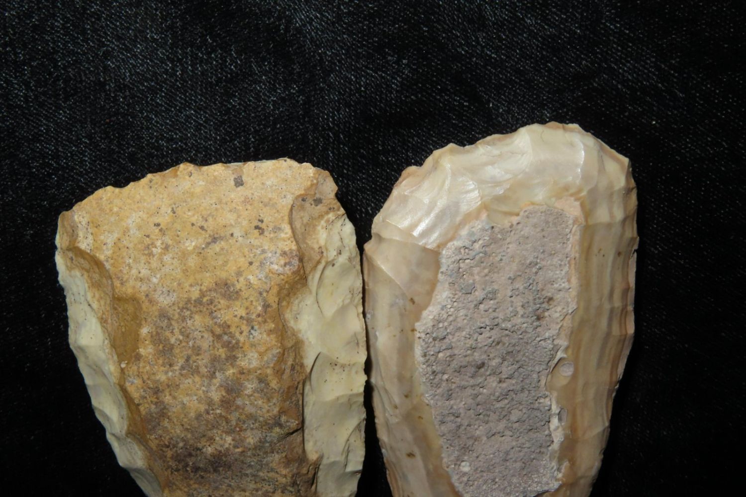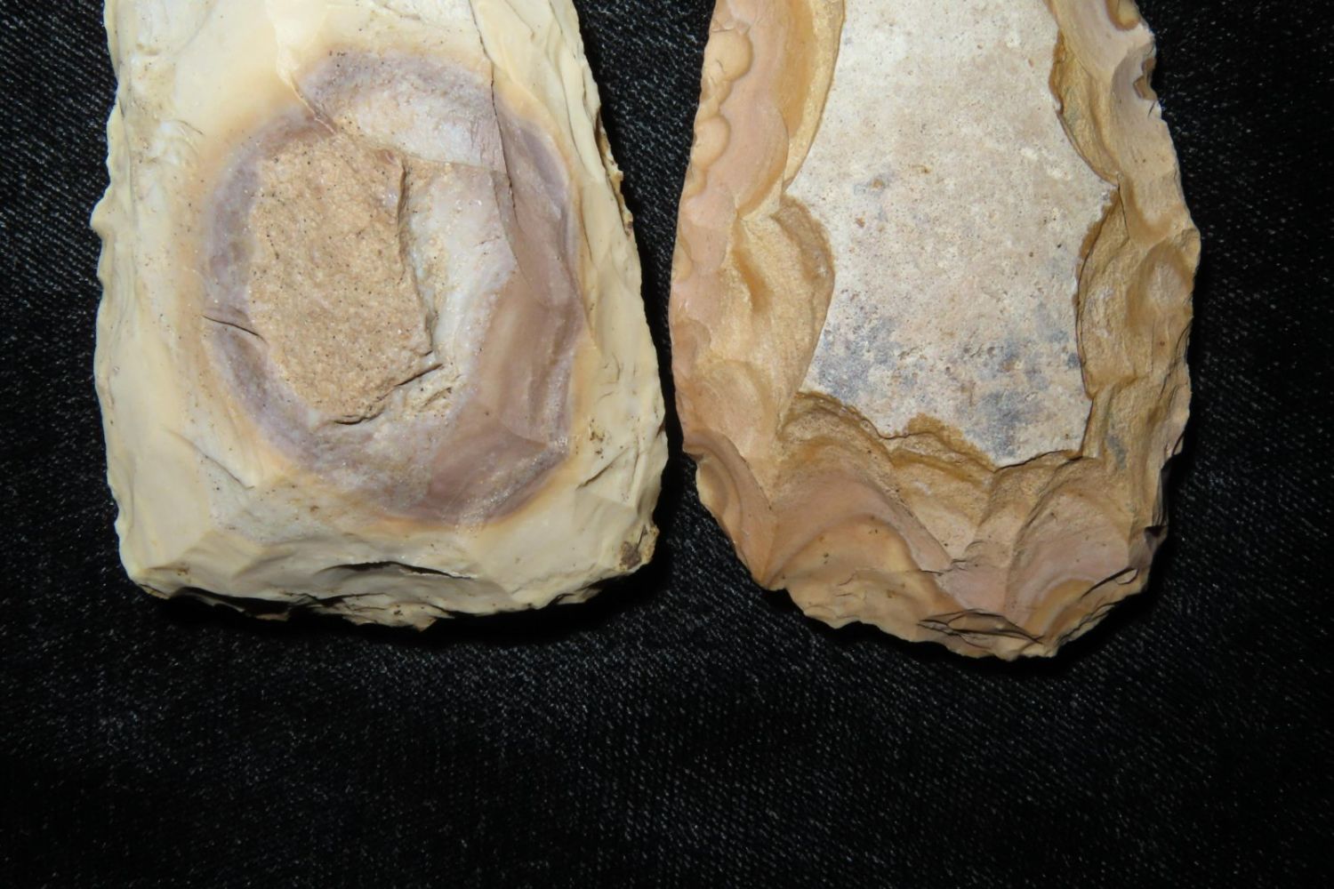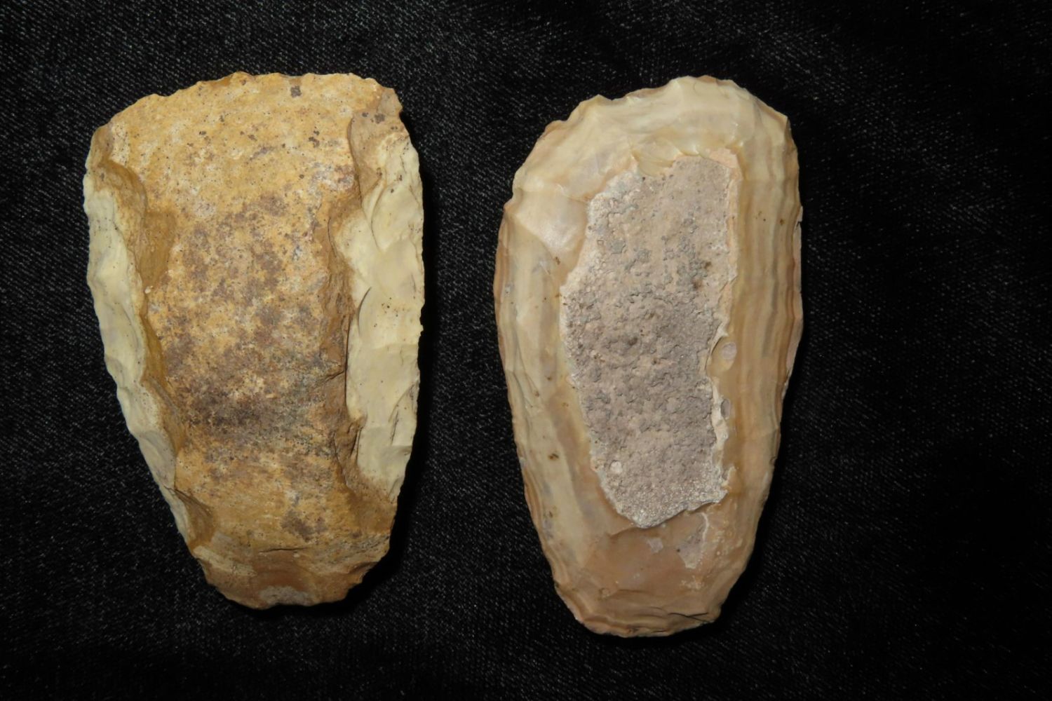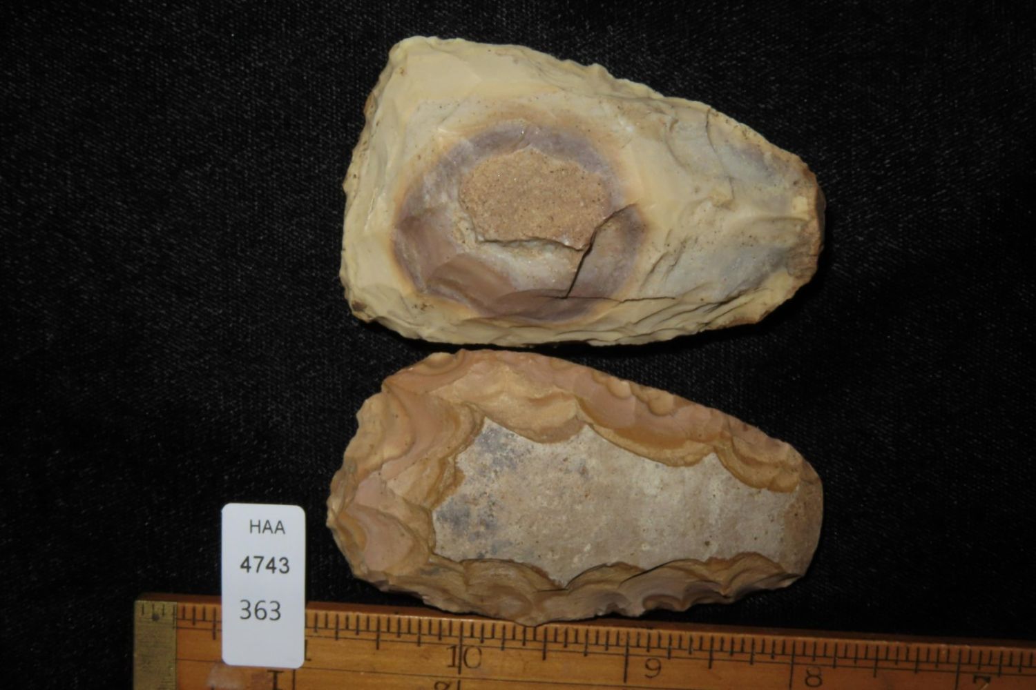 2 colorful tools, From the James and Joe George Collection. Joe George was an avid collector and finder of Native American artifacts in the greater St Louis Missouri area. Joe collected his entire life. Upon his passing he turned his collection over to his son James. James was also a very avid collector. He enjoyed walking various waterways and attending artifact shows. James is looking forward to passing down his collection to the relic community for caretaking.