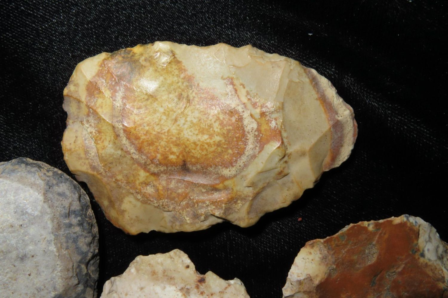 Grouping of arrowheads, From the James and Joe George Collection. Joe George was an avid collector and finder of Native American artifacts in the greater St Louis Missouri area. Joe collected his entire life. Upon his passing he turned his collection over to his son James. James was also a very avid collector. He enjoyed walking various waterways and attending artifact shows. James is looking forward to passing down his collection to the relic community for caretaking.
