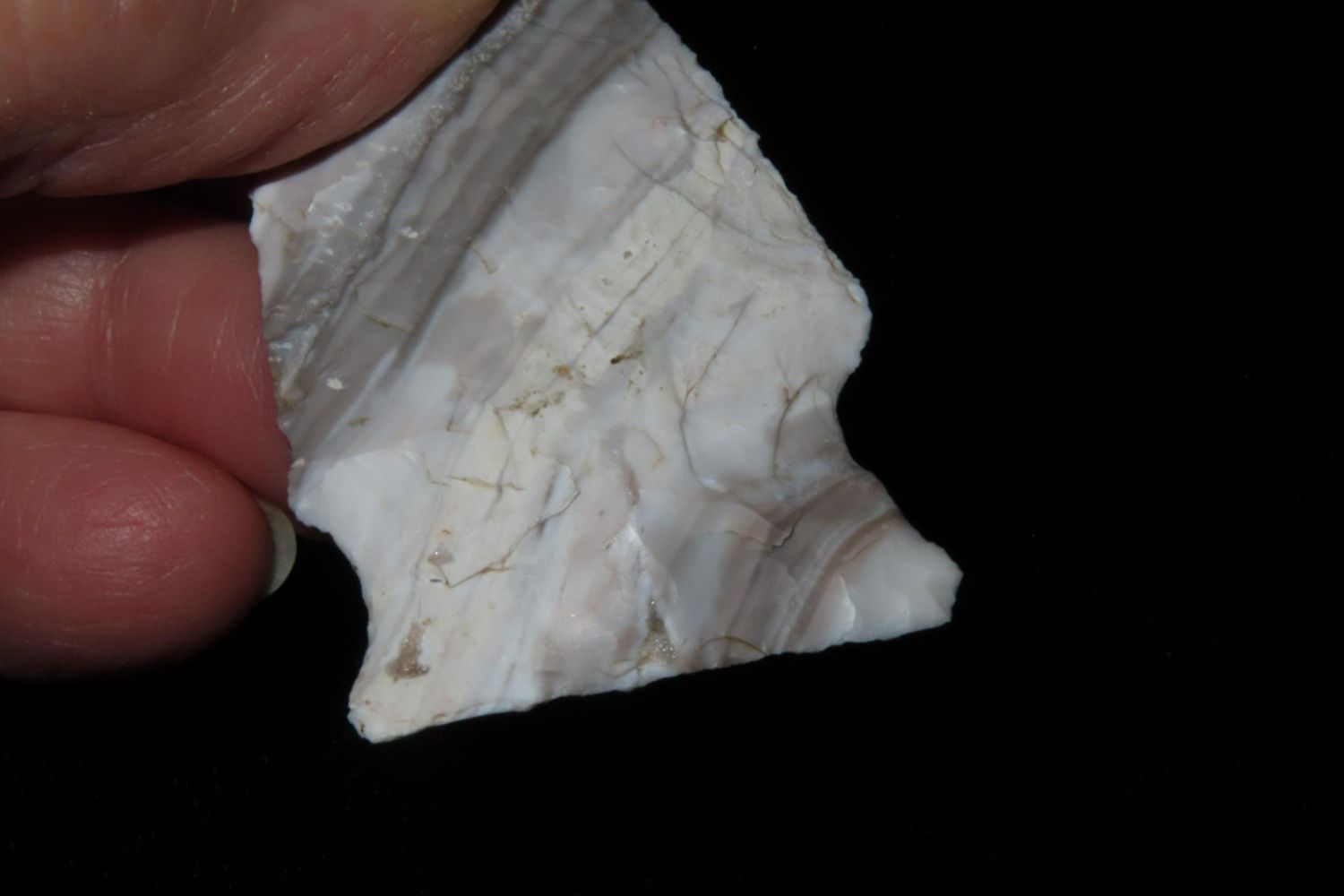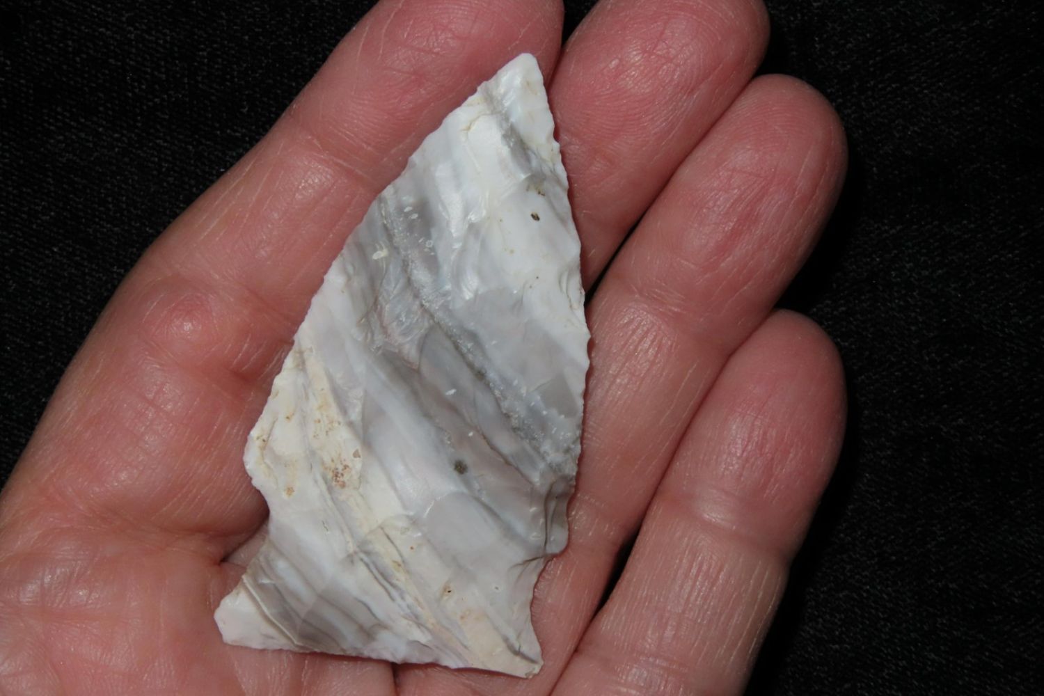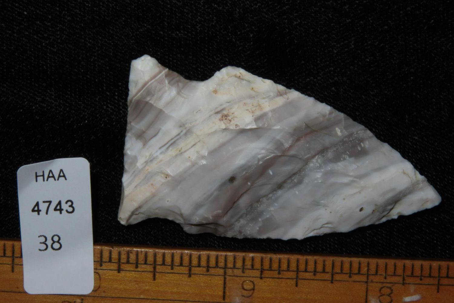 2 3/8" Mozarkite Steuben. From the James and Joe George Collection. Joe George was an avid collector and finder of Native American artifacts in the greater St Louis Missouri area. Joe collected his entire life. Upon his passing he turned his collection over to his son James. James was also a very avid collector. He enjoyed walking various waterways and attending artifact shows. James is looking forward to passing down his collection to the relic community for caretaking.