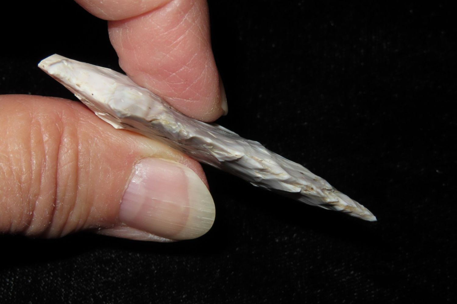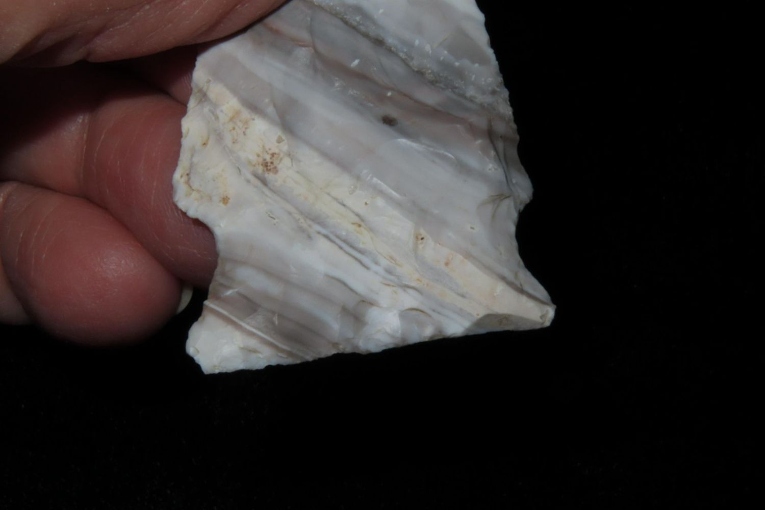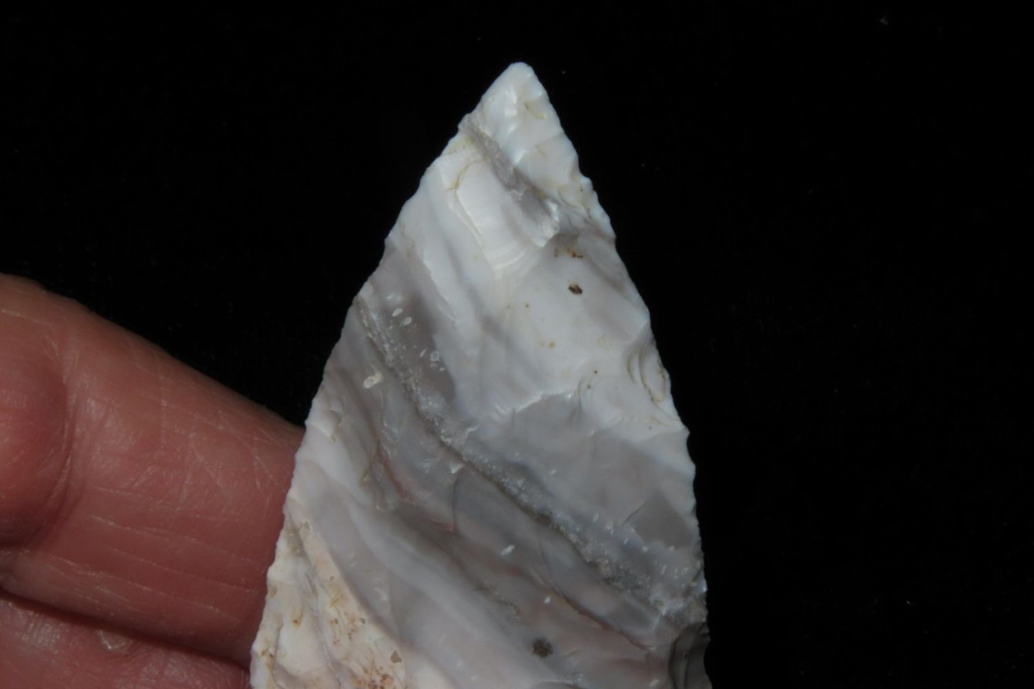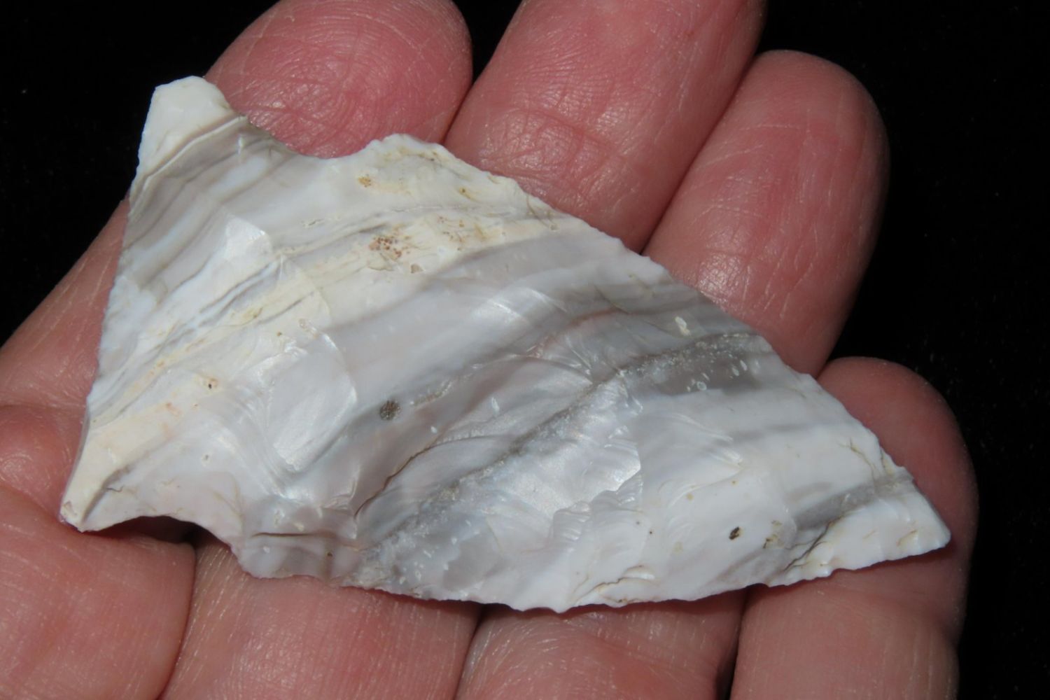 2 3/8" Mozarkite Steuben. From the James and Joe George Collection. Joe George was an avid collector and finder of Native American artifacts in the greater St Louis Missouri area. Joe collected his entire life. Upon his passing he turned his collection over to his son James. James was also a very avid collector. He enjoyed walking various waterways and attending artifact shows. James is looking forward to passing down his collection to the relic community for caretaking.