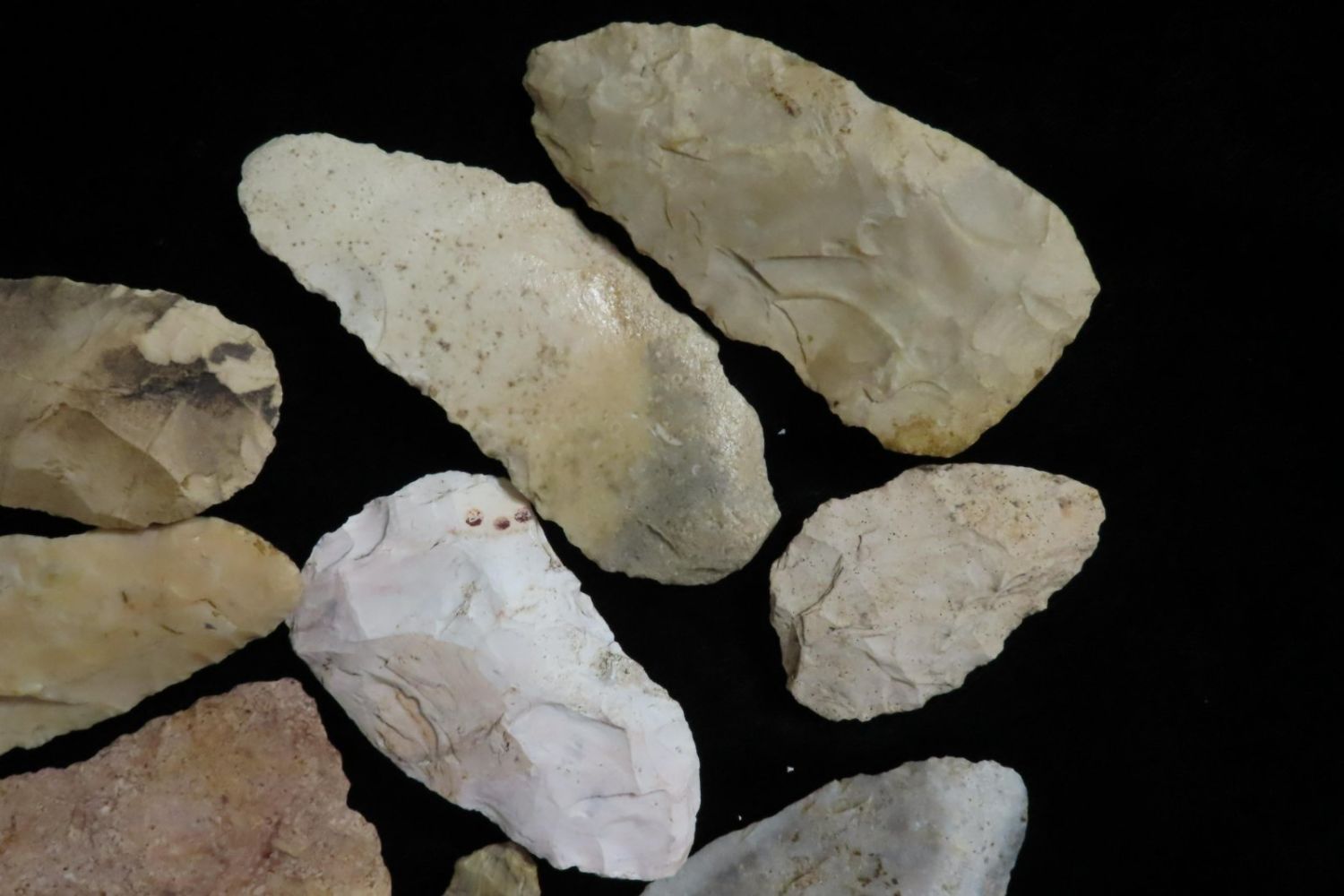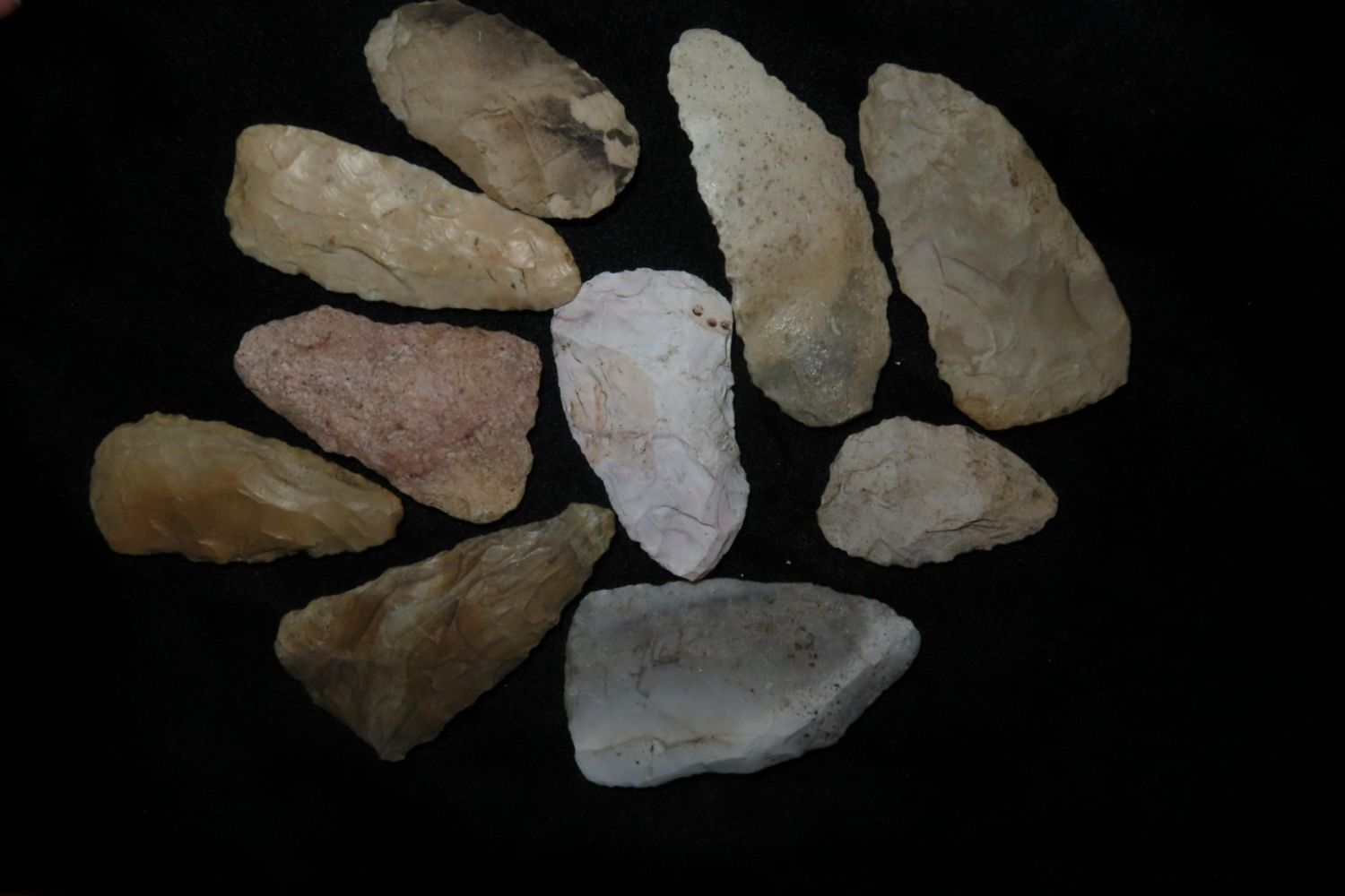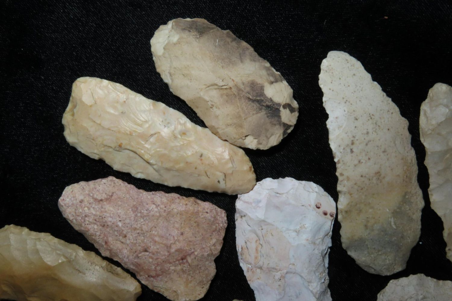 Grouping of tools and knives, From the James and Joe George Collection. Joe George was an avid collector and finder of Native American artifacts in the greater St Louis Missouri area. Joe collected his entire life. Upon his passing he turned his collection over to his son James. James was also a very avid collector. He enjoyed walking various waterways and attending artifact shows. James is looking forward to passing down his collection to the relic community for caretaking.