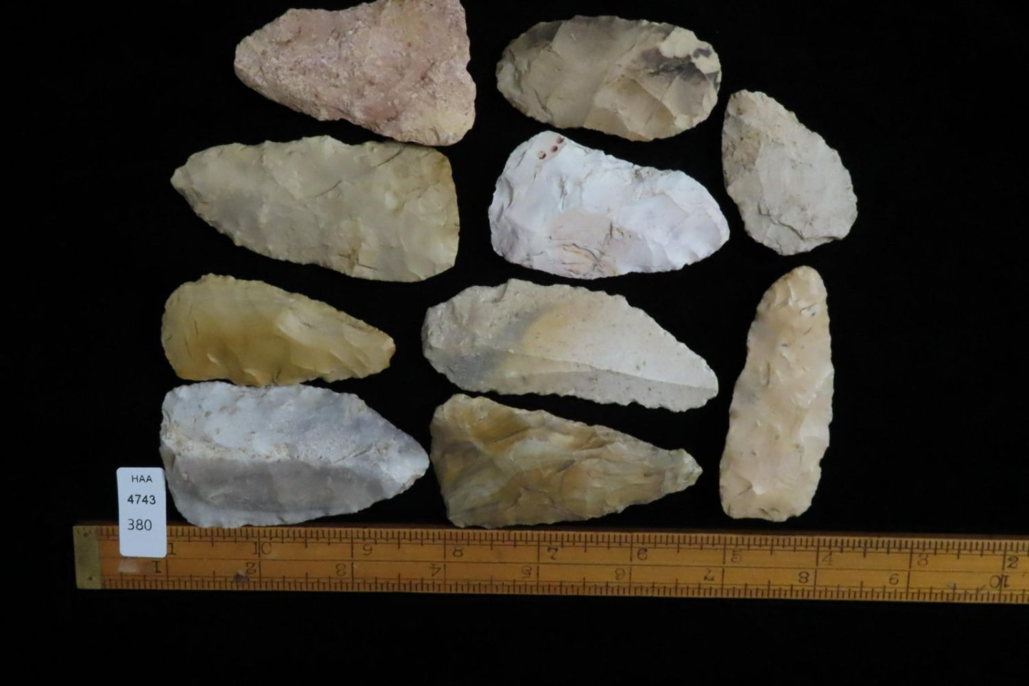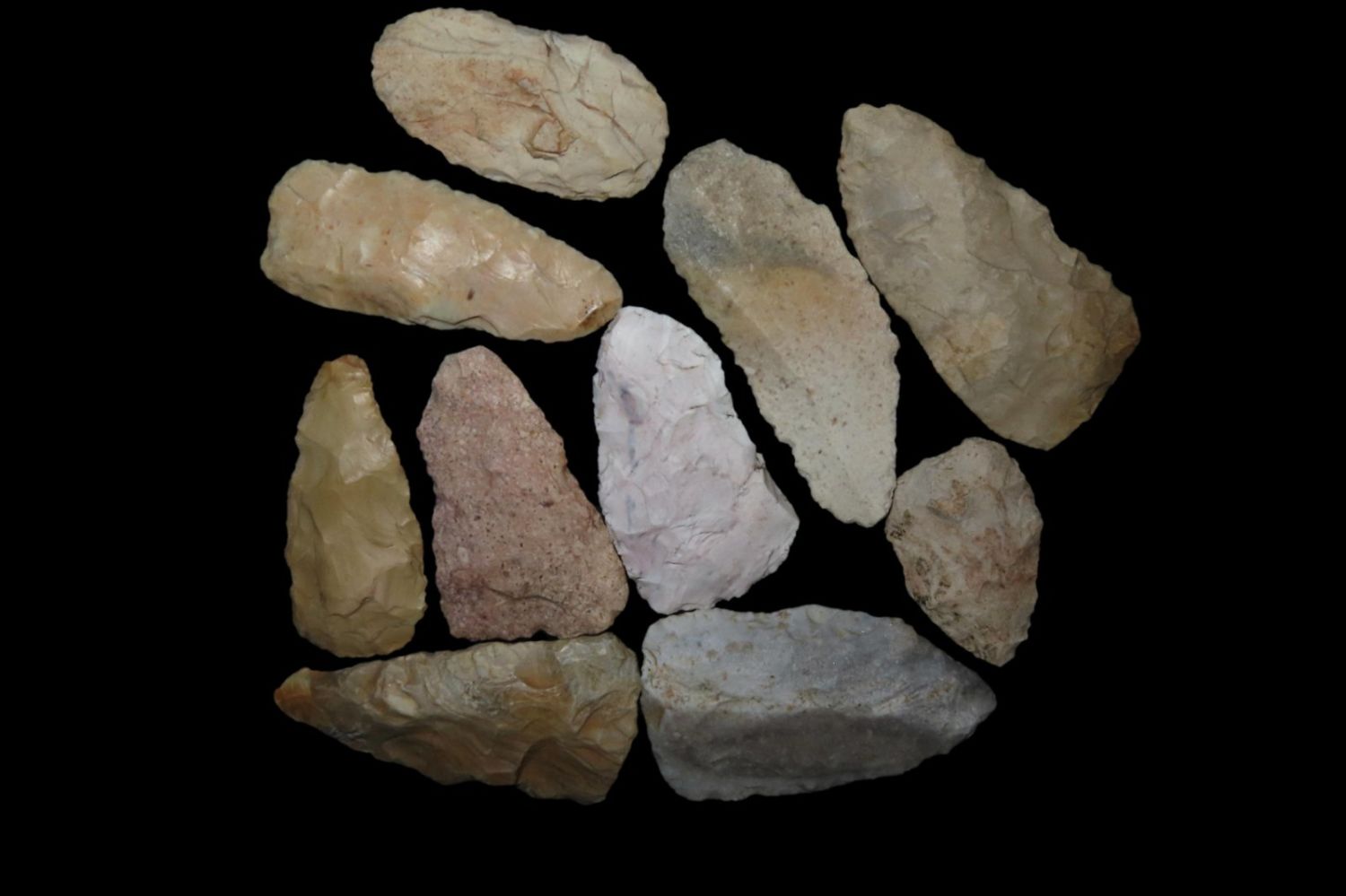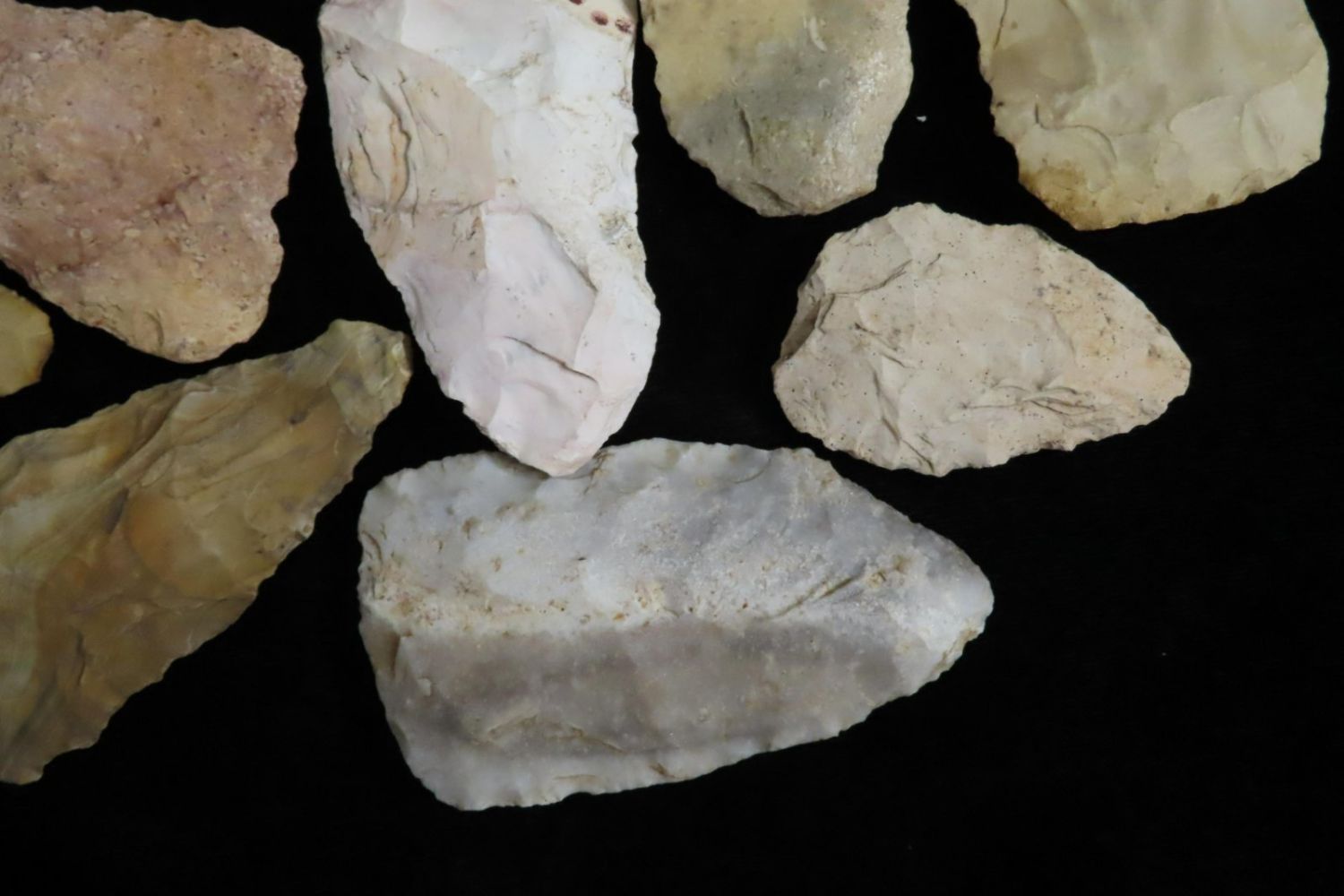Grouping of tools and knives, From the James and Joe George Collection. Joe George was an avid collector and finder of Native American artifacts in the greater St Louis Missouri area. Joe collected his entire life. Upon his passing he turned his collection over to his son James. James was also a very avid collector. He enjoyed walking various waterways and attending artifact shows. James is looking forward to passing down his collection to the relic community for caretaking.