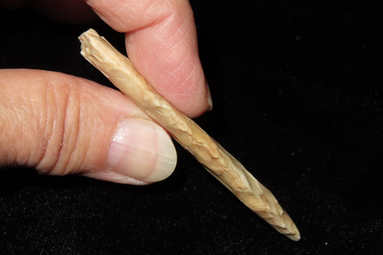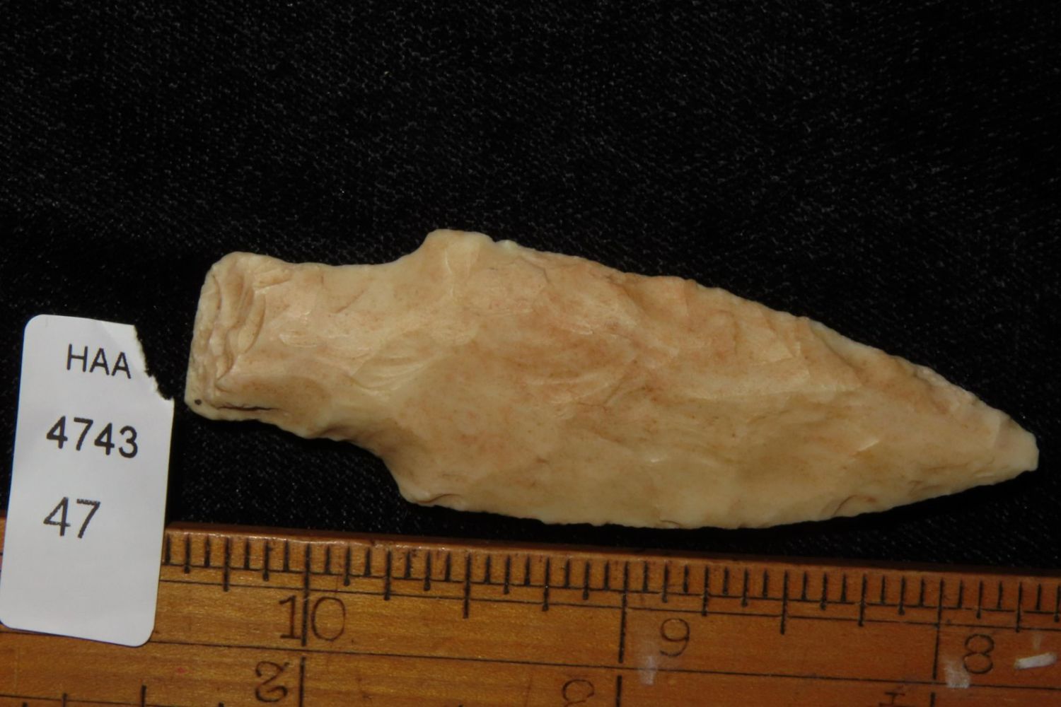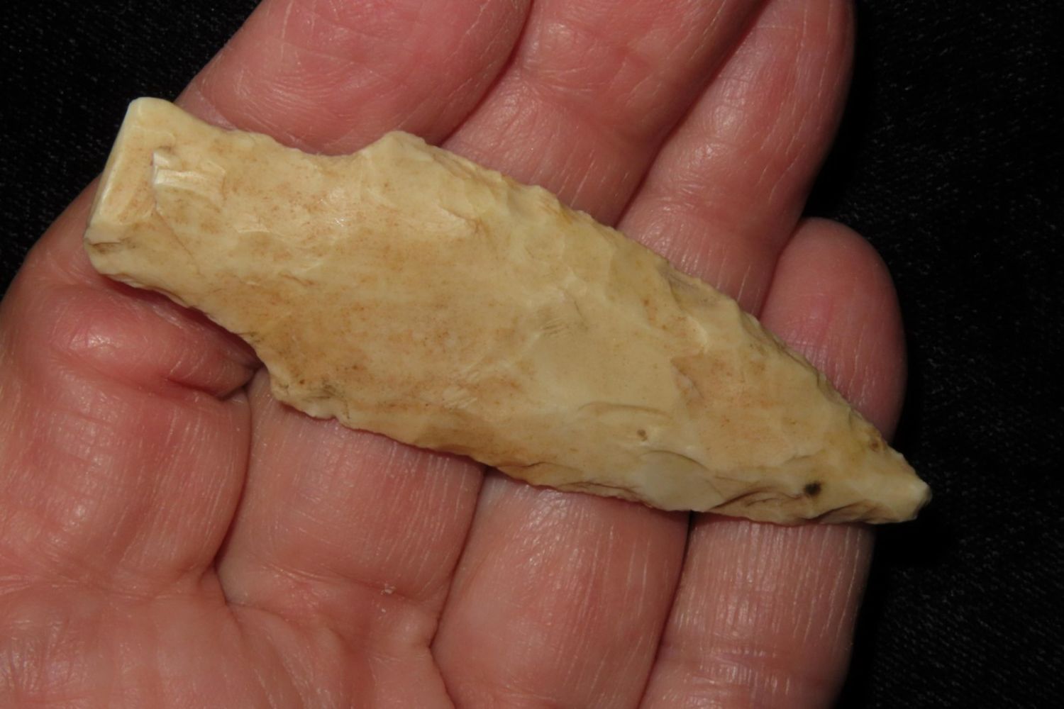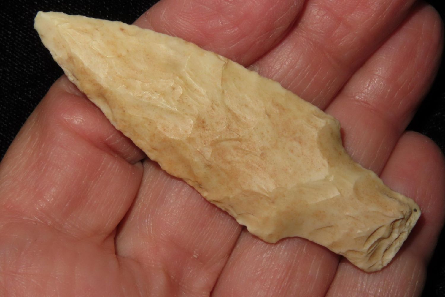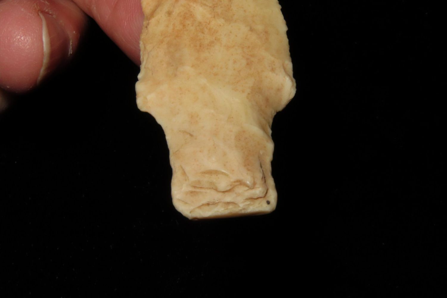 2 5/8" Kramer. From the James and Joe George Collection. Joe George was an avid collector and finder of Native American artifacts in the greater St Louis Missouri area. Joe collected his entire life. Upon his passing he turned his collection over to his son James. James was also a very avid collector. He enjoyed walking various waterways and attending artifact shows. James is looking forward to passing down his collection to the relic community for caretaking.
